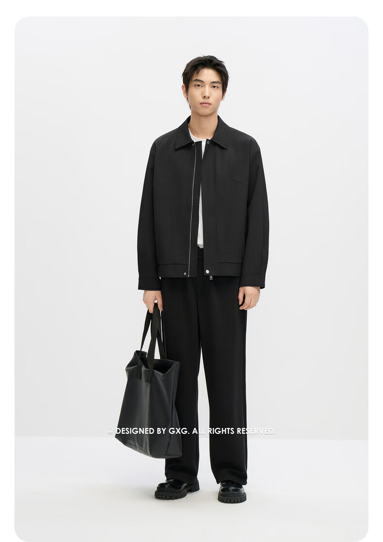 GXG Men's 2024 Autumn Casual Loose Coat Jacket Men Black 175/L