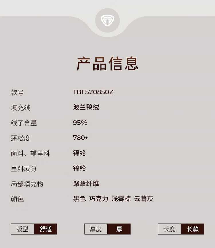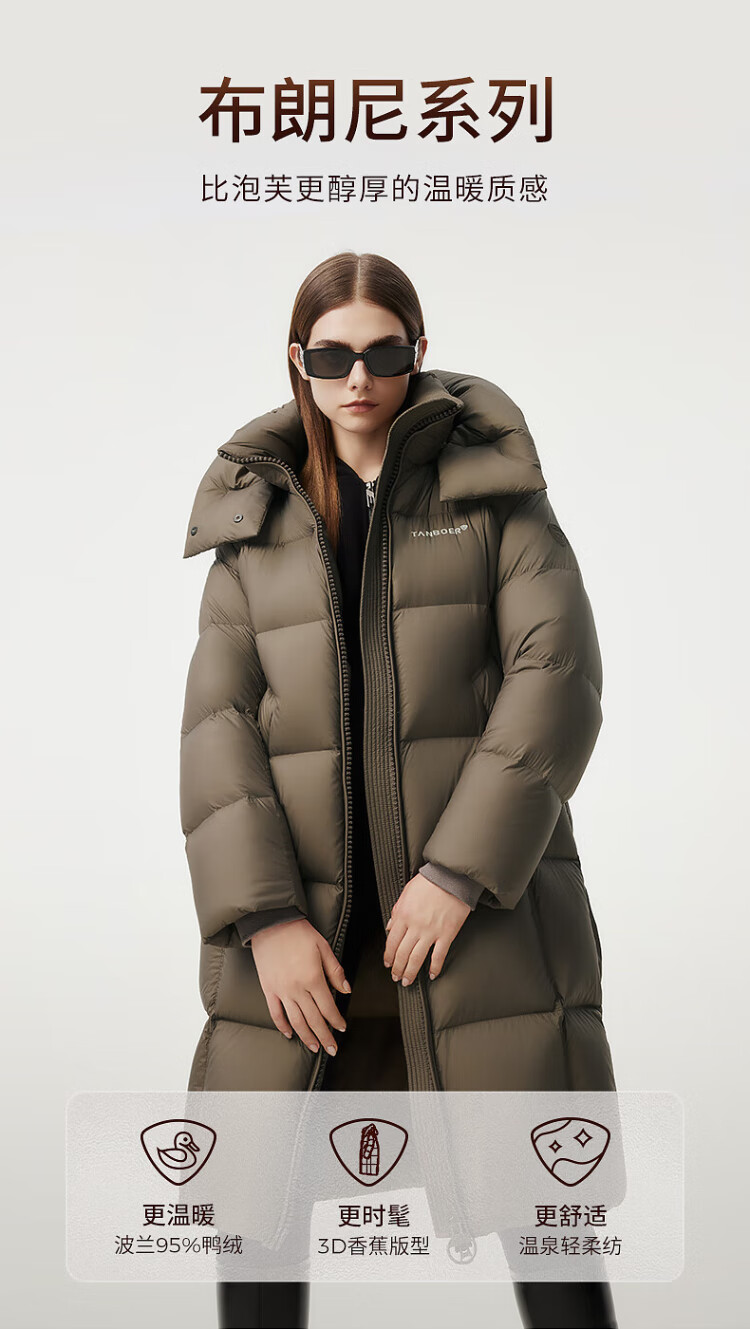 坦博尔羽绒服女中长款冬季羽绒服加厚旷野美拉德520850Z 巧克力 165