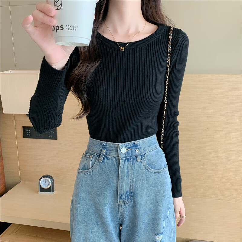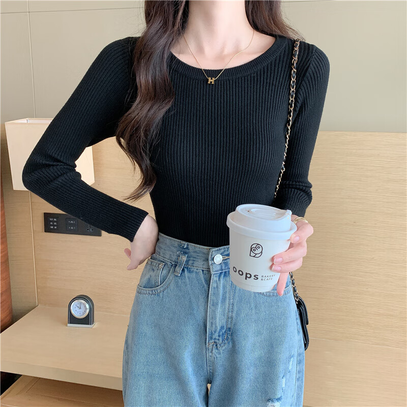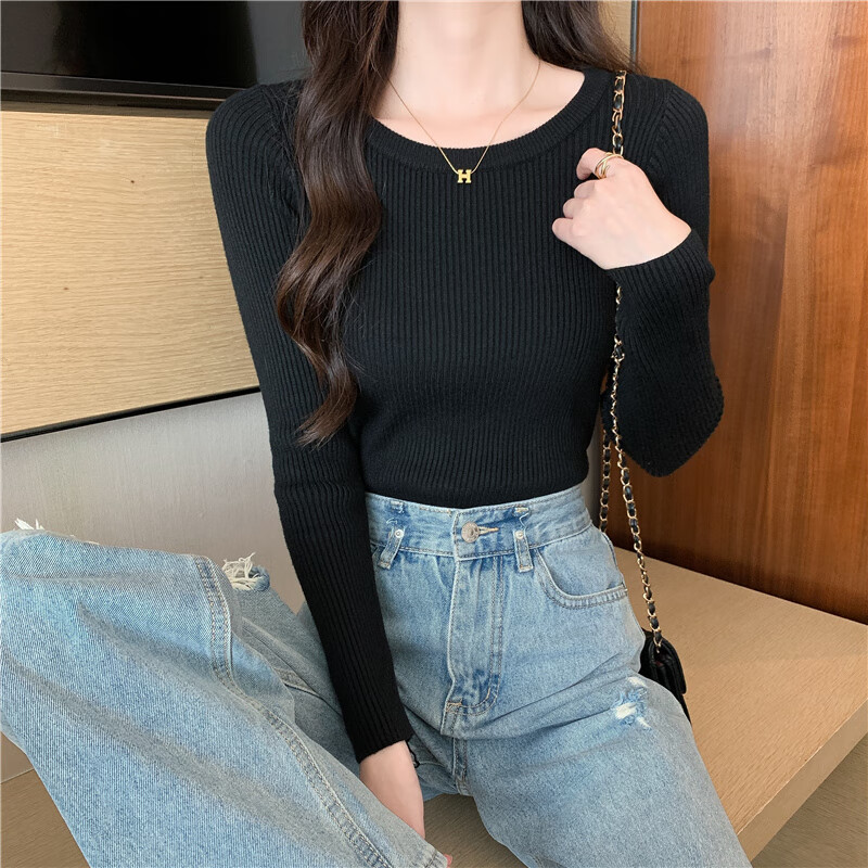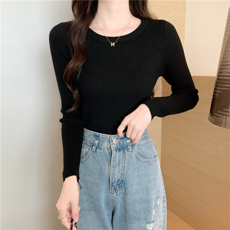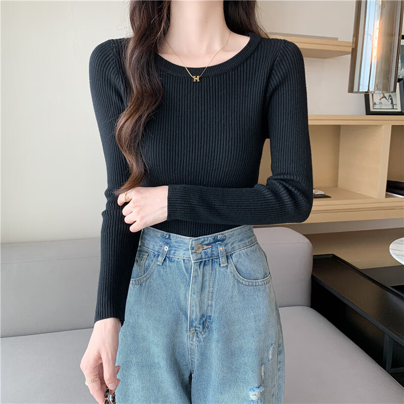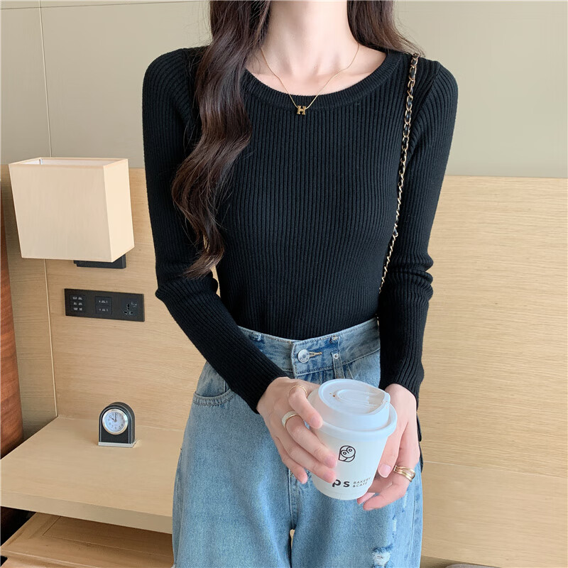 Yu Zhaolin (YUZHAOLIN) round neck bottoming shirt for women, autumn and winter warm inner layer, slim knitted threaded long-sleeved T-shirt basic top