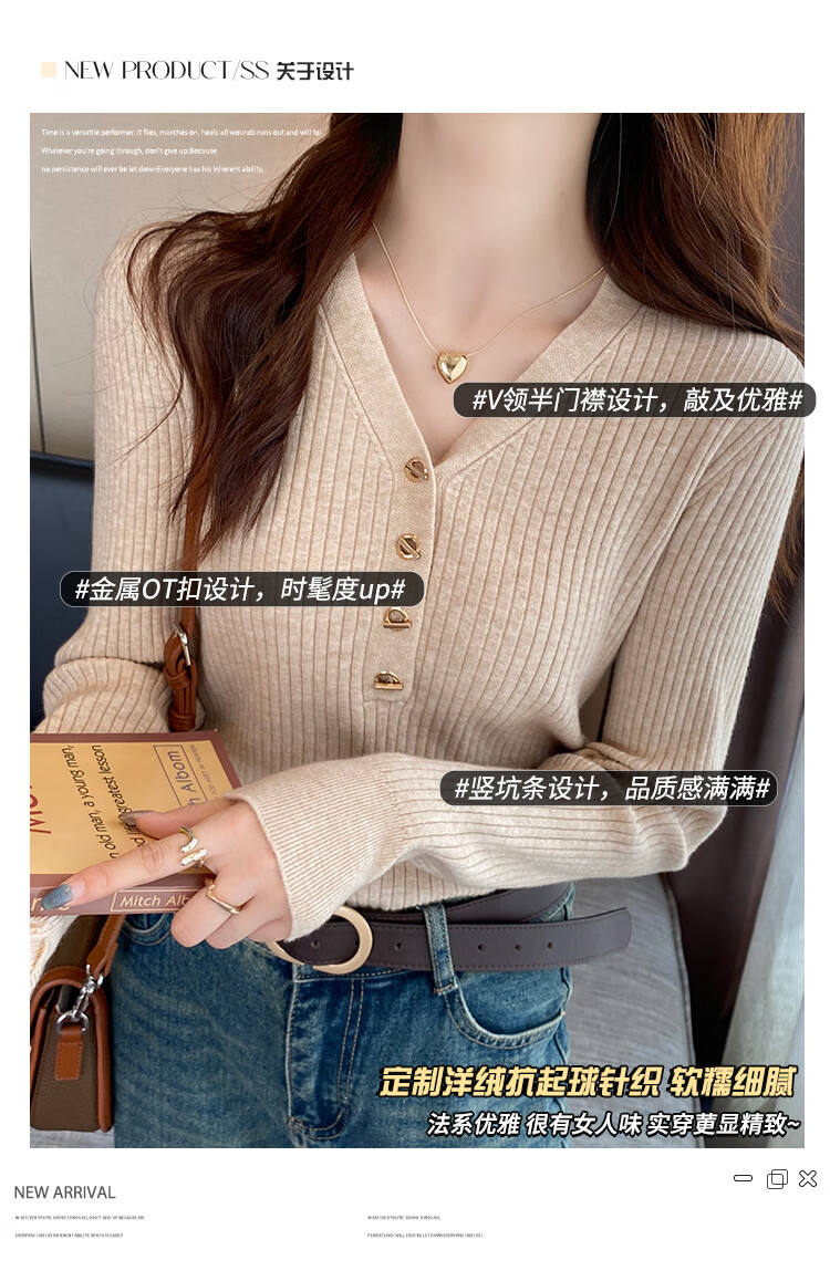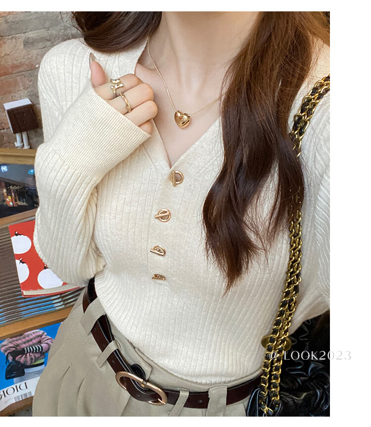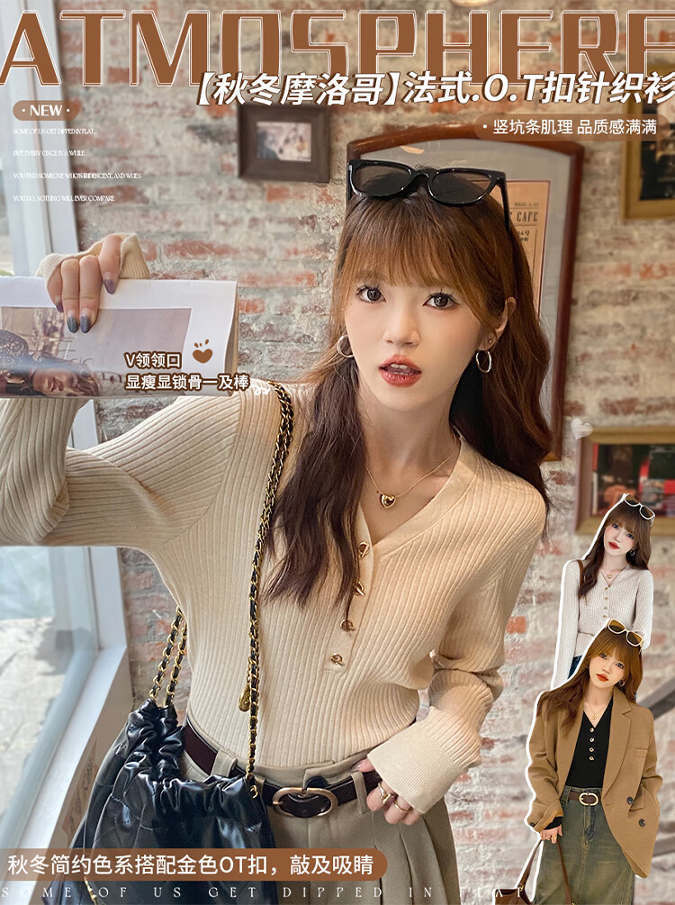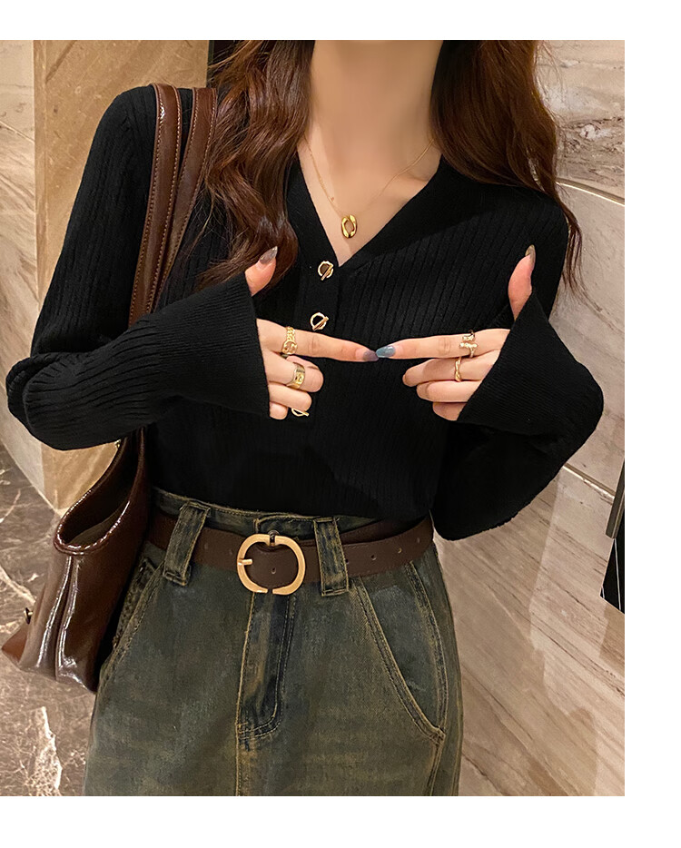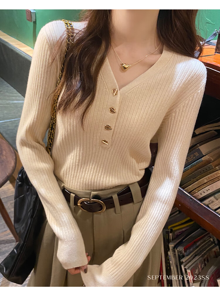 Yu Zhaolin (YUZHAOLIN) women's bottoming shirt with small fragrance style spring and autumn 2025 new v-neck sweater soft waxy sweater long-sleeved early spring top