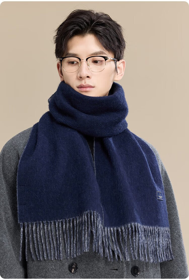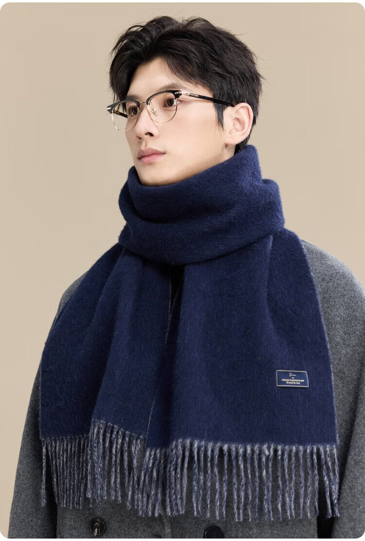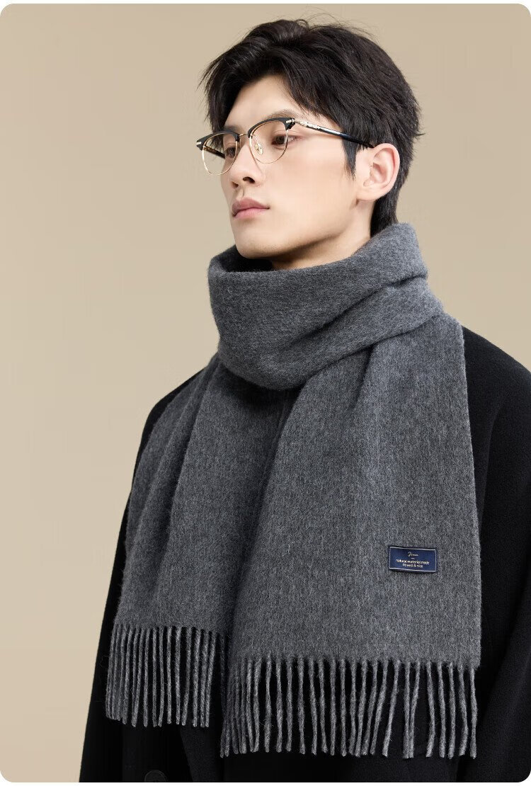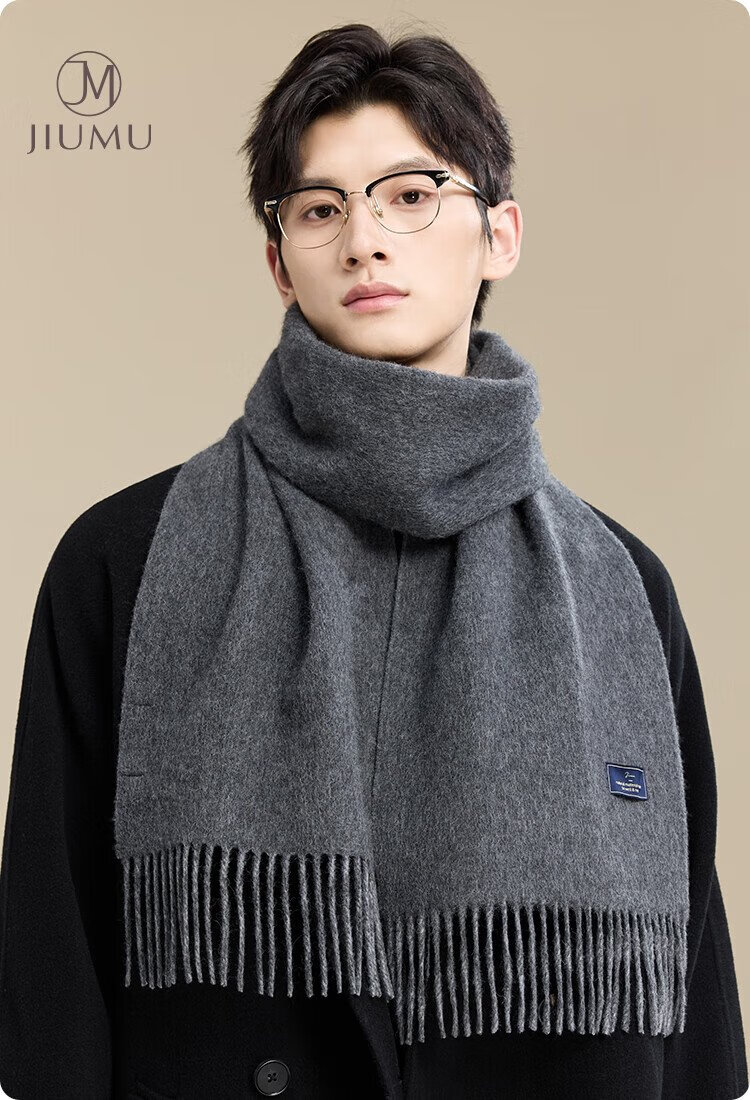 JIUMU pure wool scarf for men autumn and winter warm scarf for boys to give to father Christmas birthday gift gift box