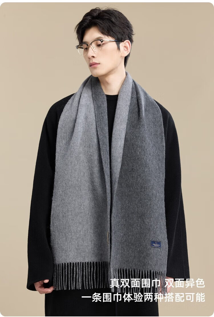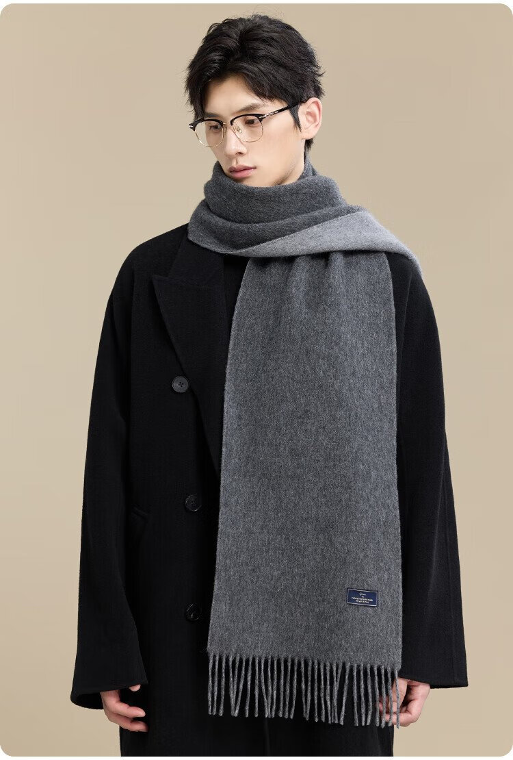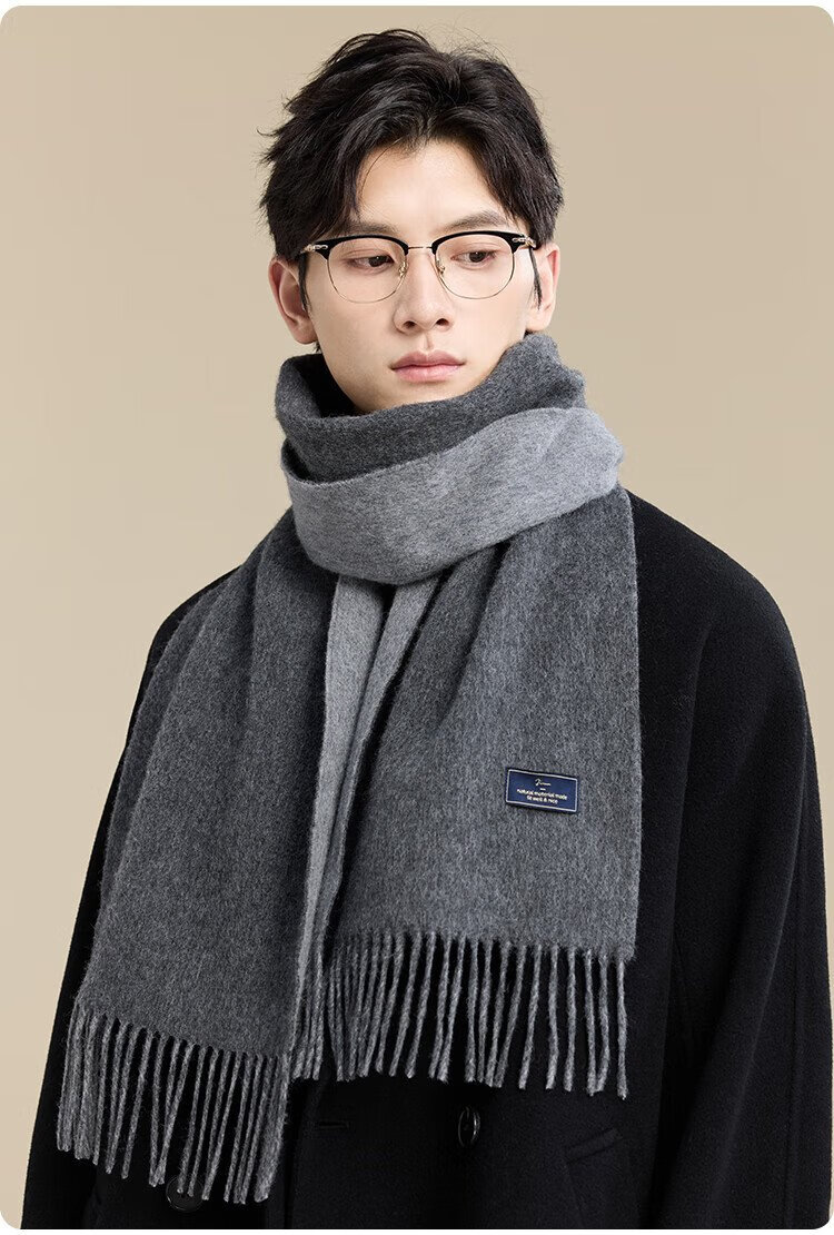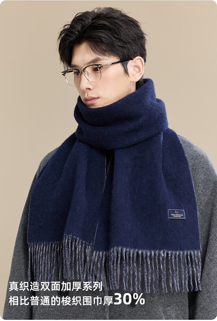 JIUMU pure wool scarf for men autumn and winter warm scarf for boys to give to father Christmas birthday gift gift box