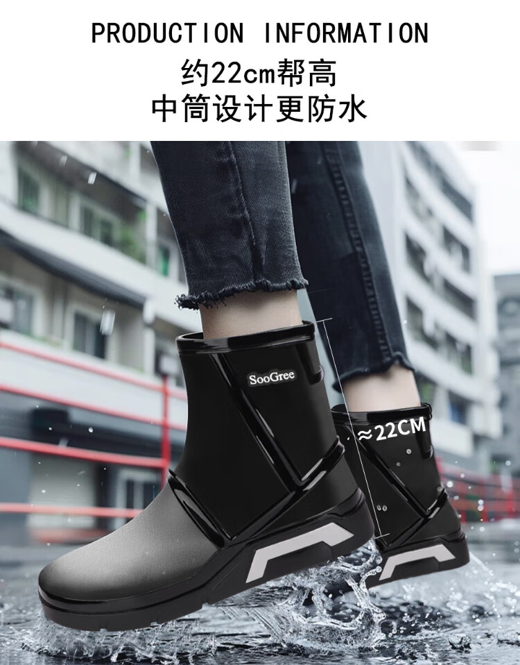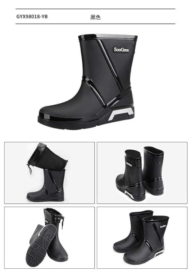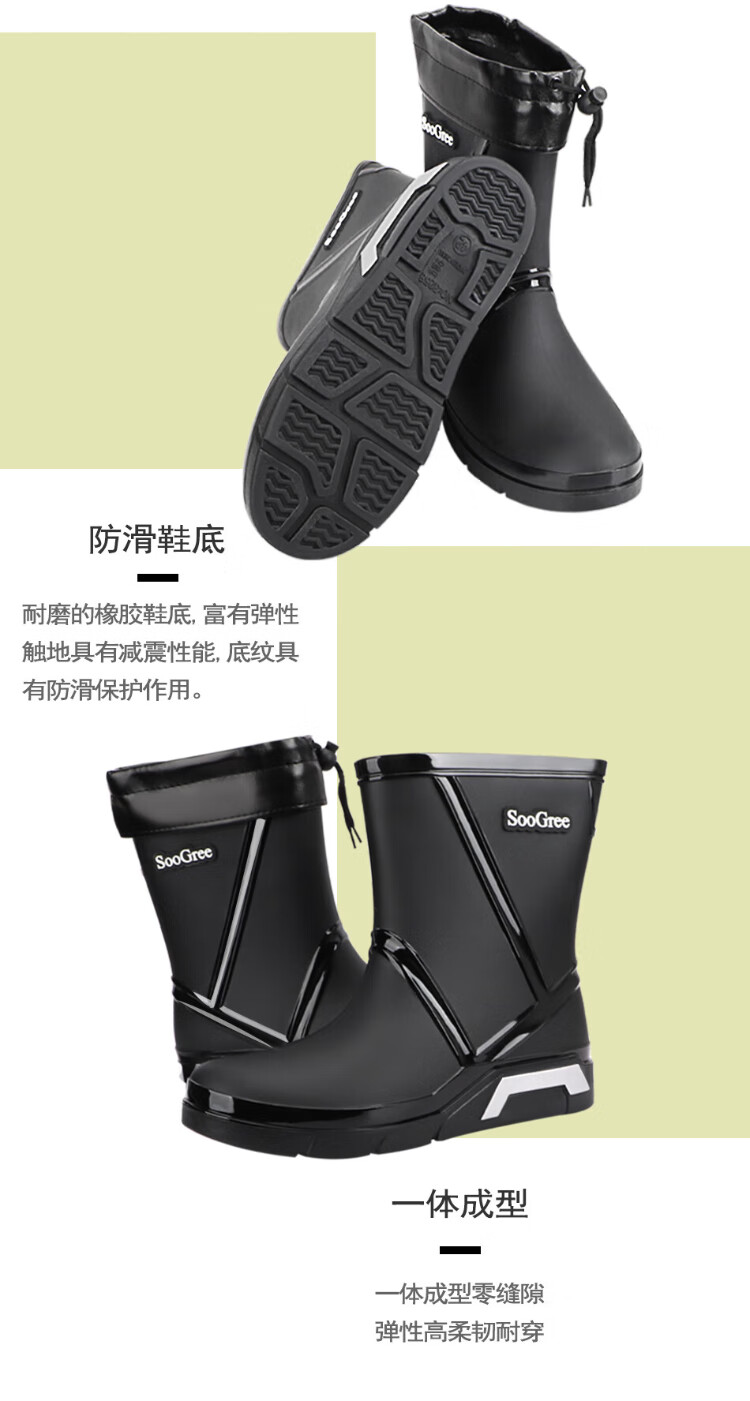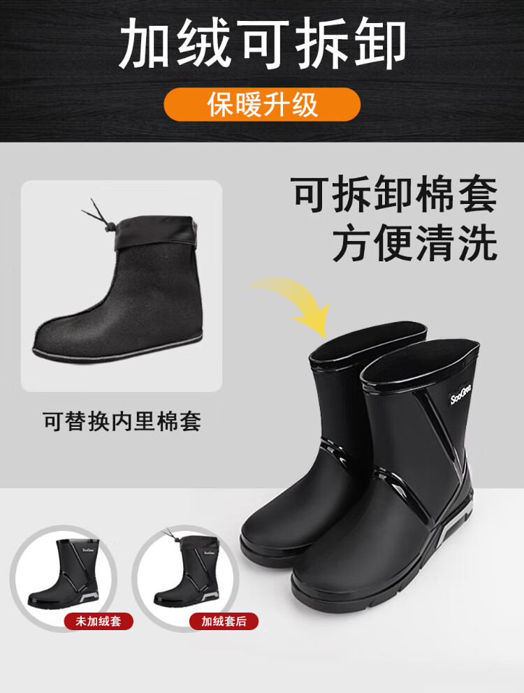 SooGree rain boots men's winter plus velvet mid-tube waterproof rain boots outdoor fishing takeaway wear-resistant rubber shoes cotton cover removable