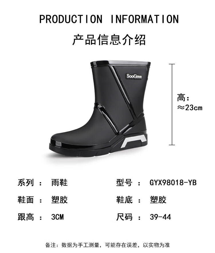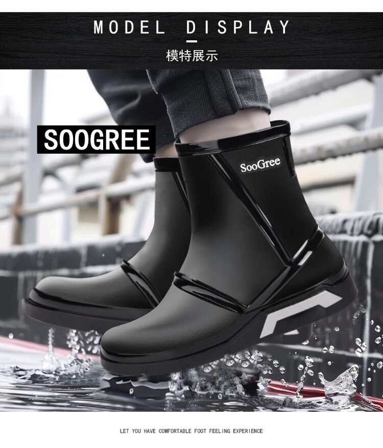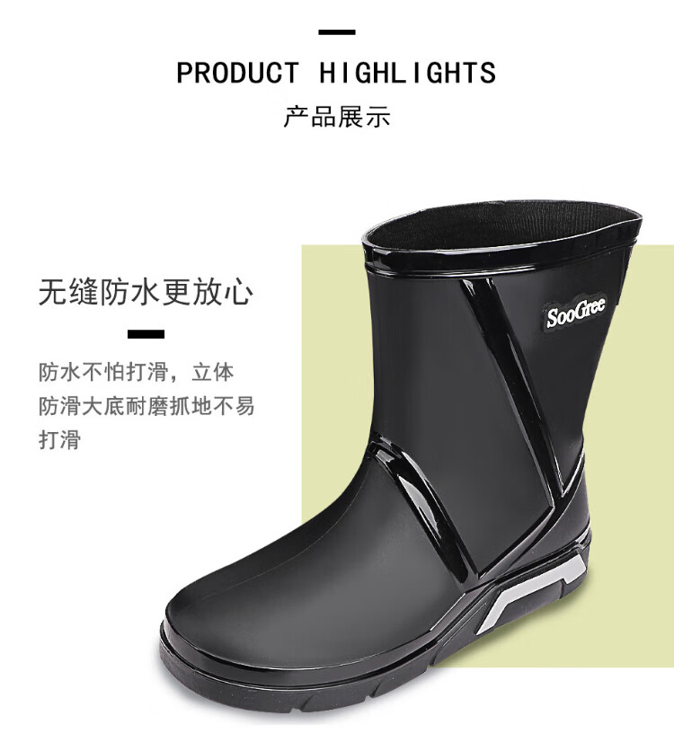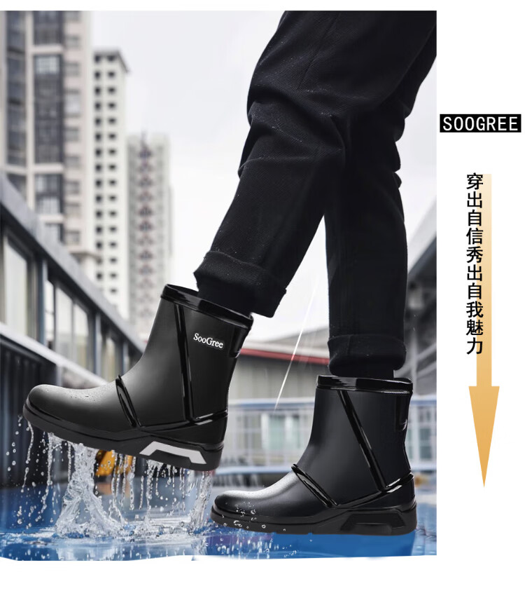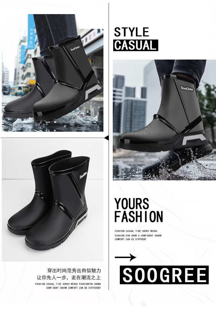 SooGree rain boots men's winter plus velvet mid-tube waterproof rain boots outdoor fishing takeaway wear-resistant rubber shoes cotton cover removable