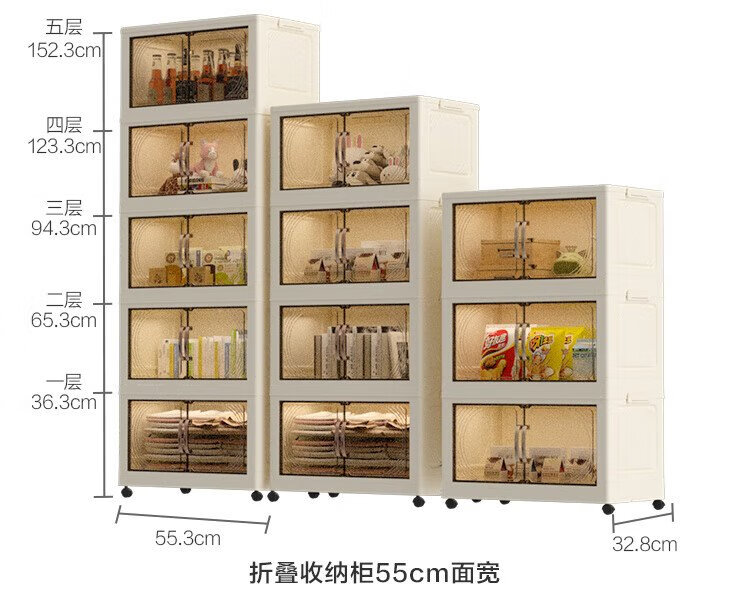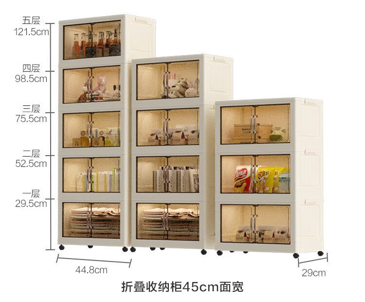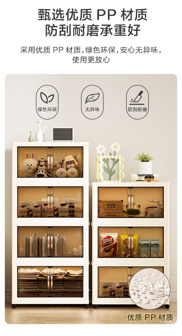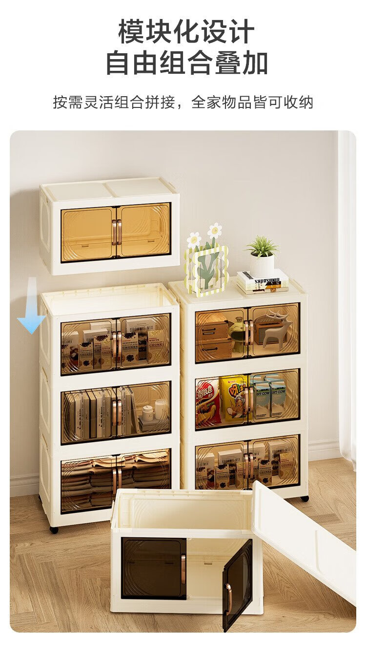 Jingdong-made installation-free storage cabinet with wheels, foldable magnetic large-capacity storage cabinet, bedside table, 45cm wide, three layers