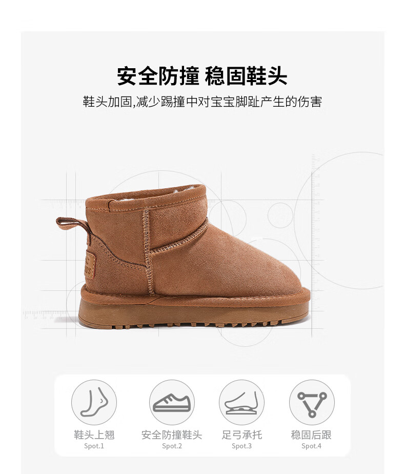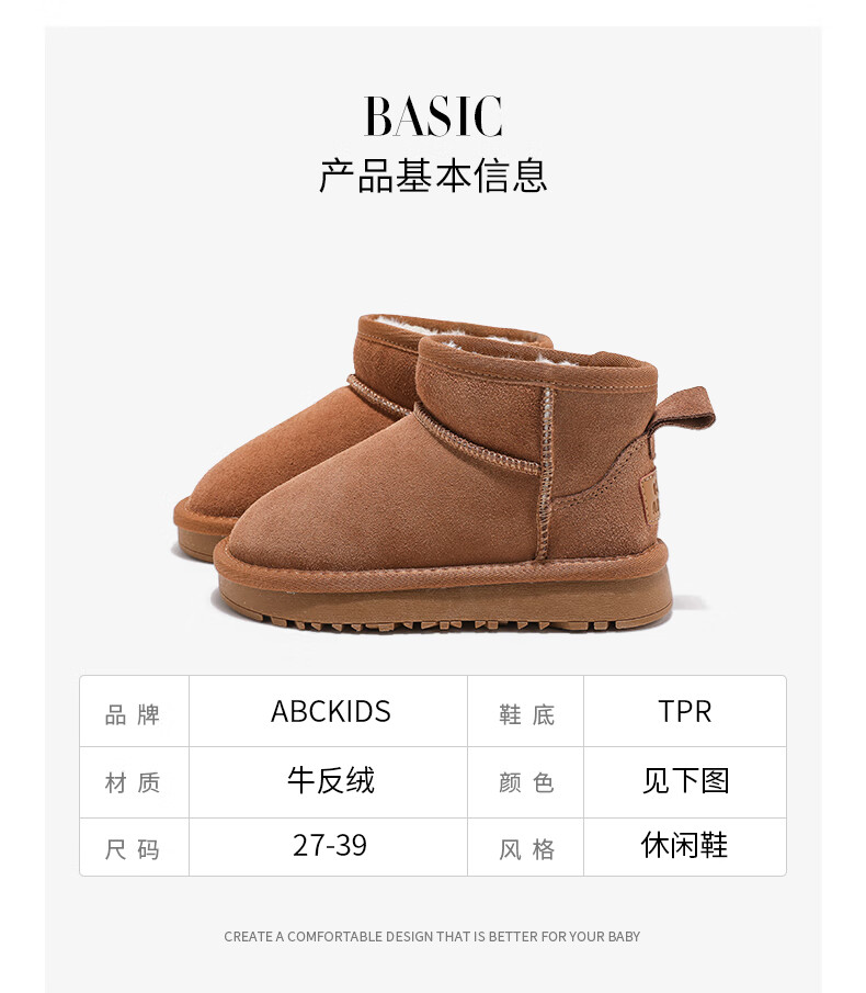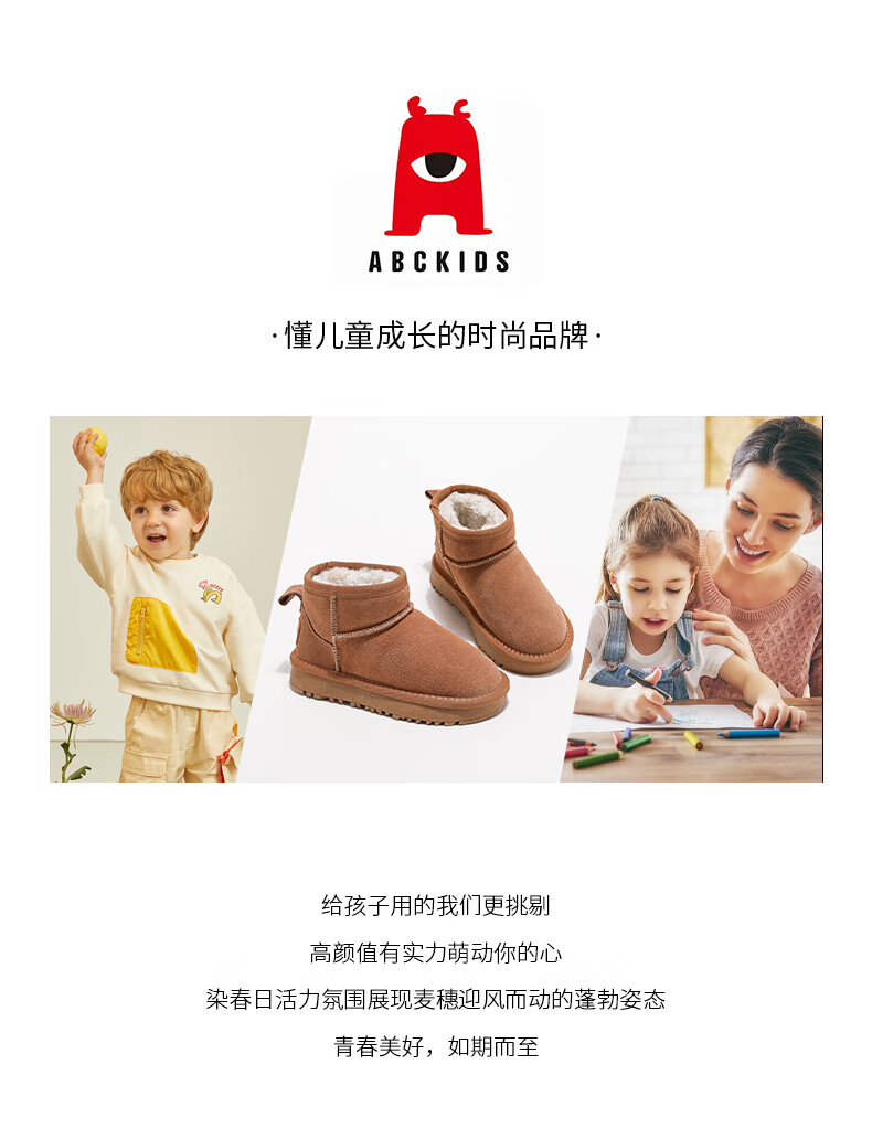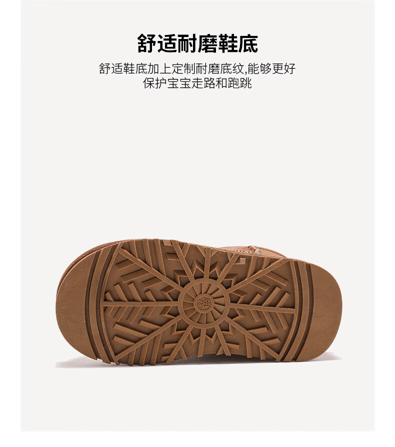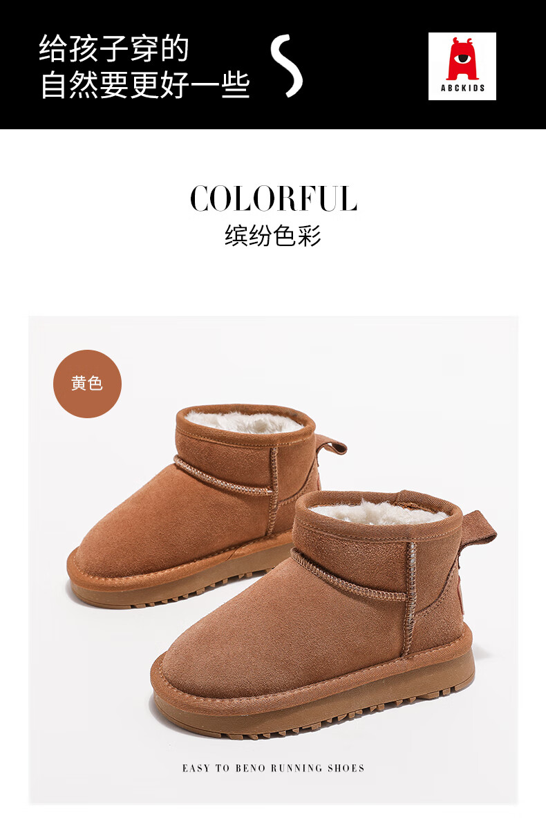 ABC KIDS children's snow boots classic velvet boys' casual shoes non-slip girls' trendy cotton boots yellow 33