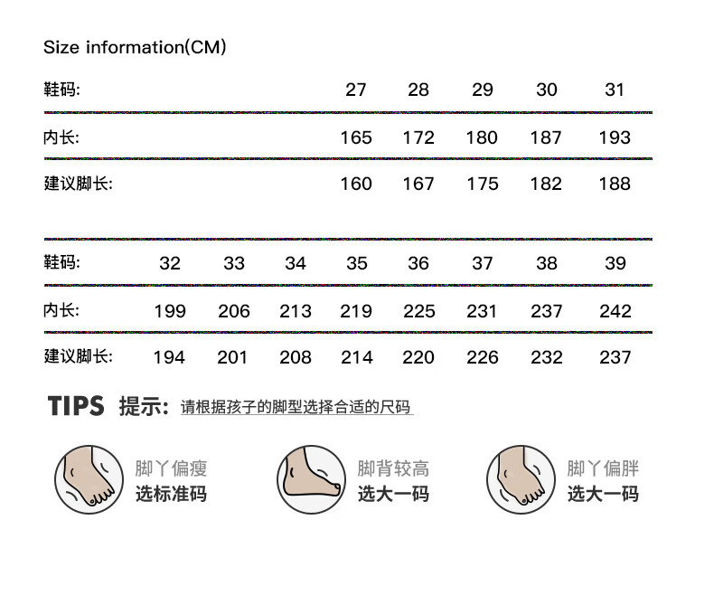 China (cm) 36 - 37 38 - 39 40 - 42 43 - 44 45 - 47