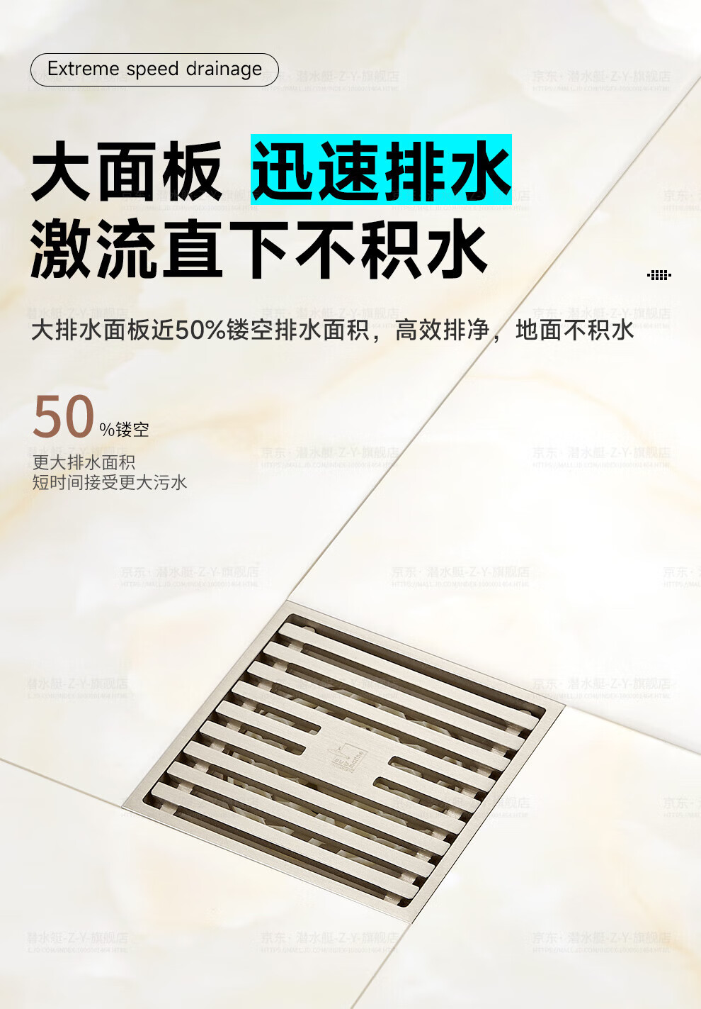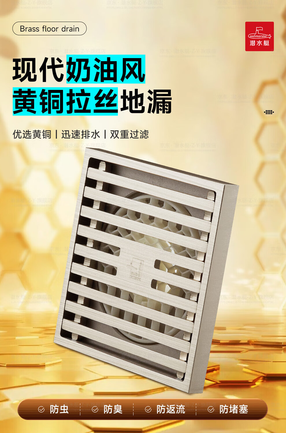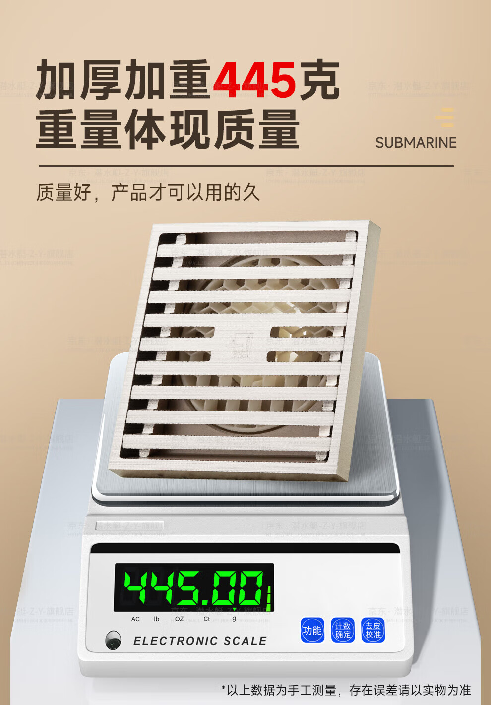 Submarine LTK40-10 brass nickel-plated large-displacement ultra-thin floor drain cream wind shift shower four-proof floor drain 40 diameter