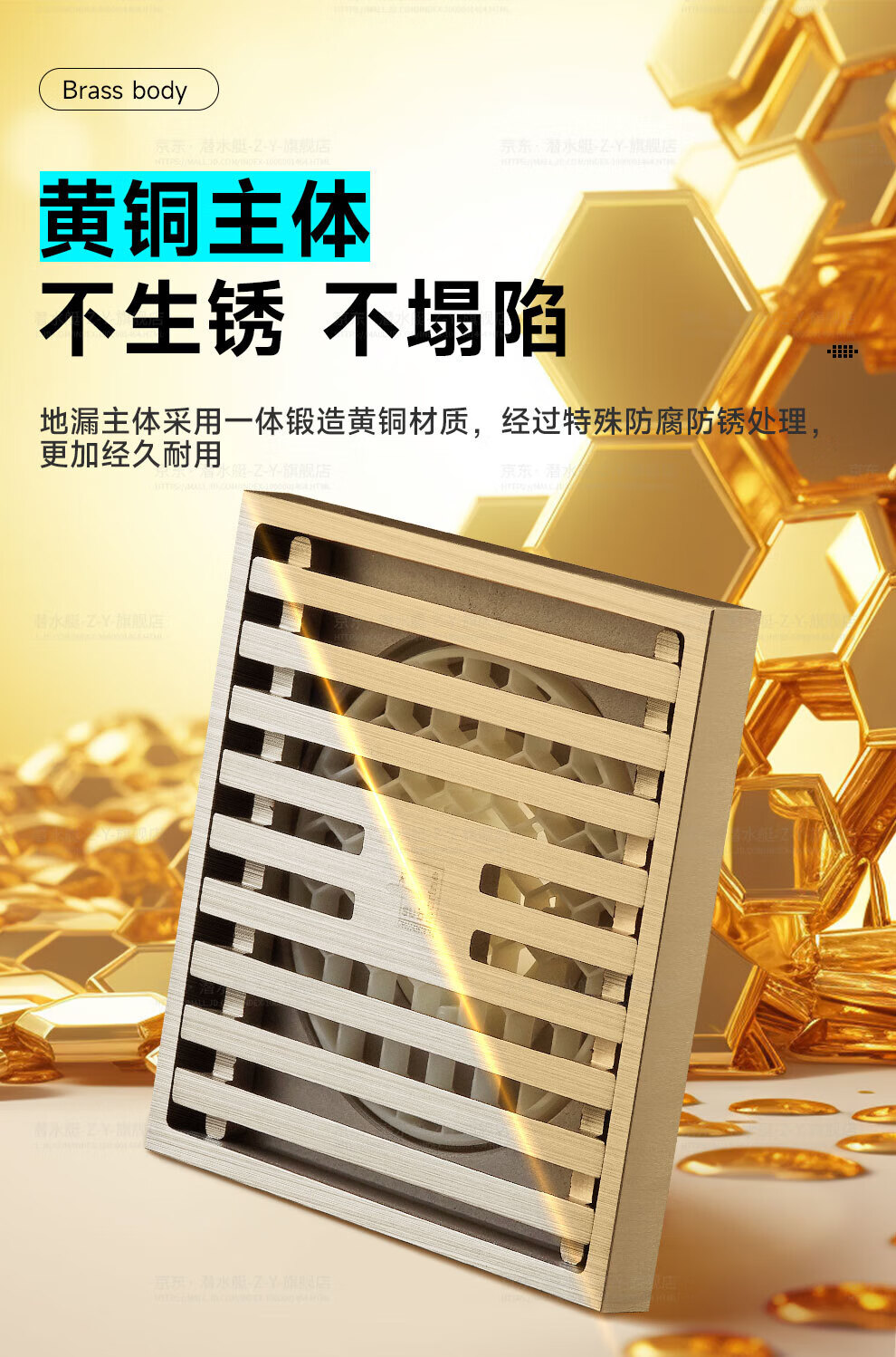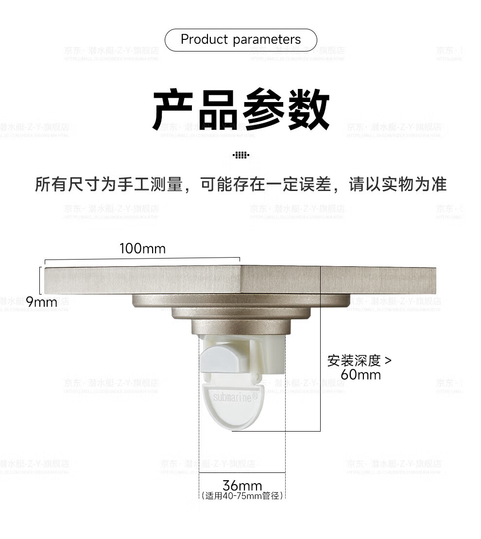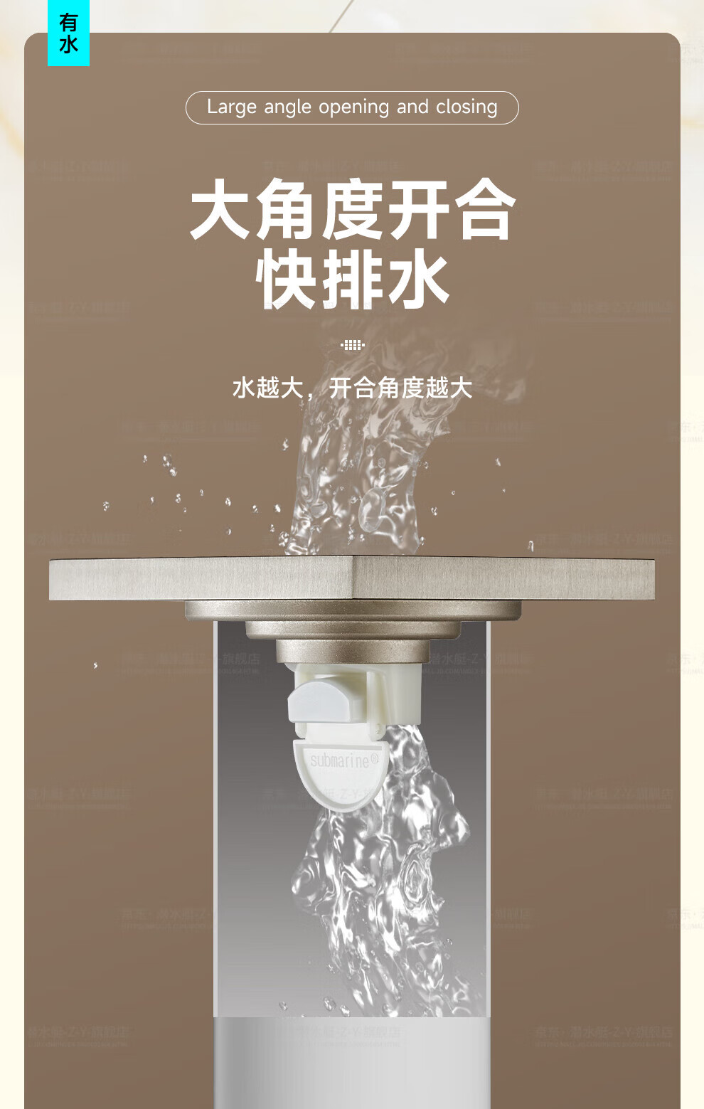 Submarine LTK40-10 brass nickel-plated large-displacement ultra-thin floor drain cream wind shift shower four-proof floor drain 40 diameter