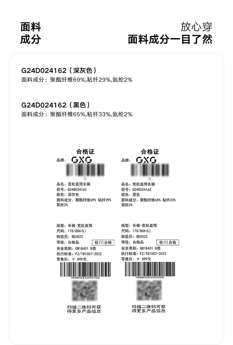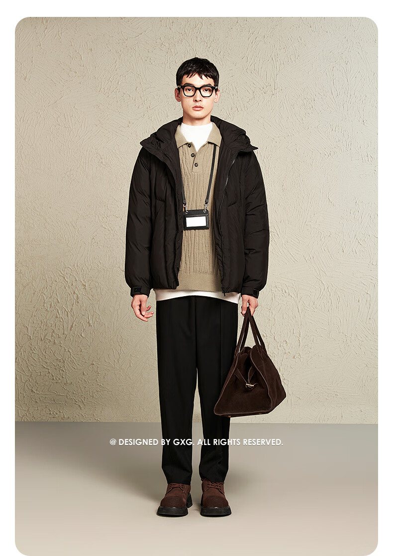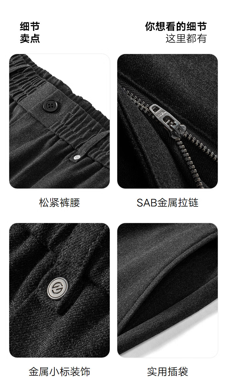 GXG men's casual trousers, trousers, men's warm trousers, 24th winter new product, black 175/L