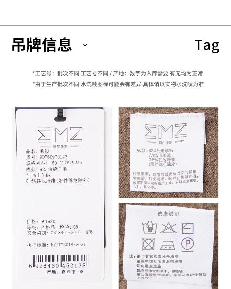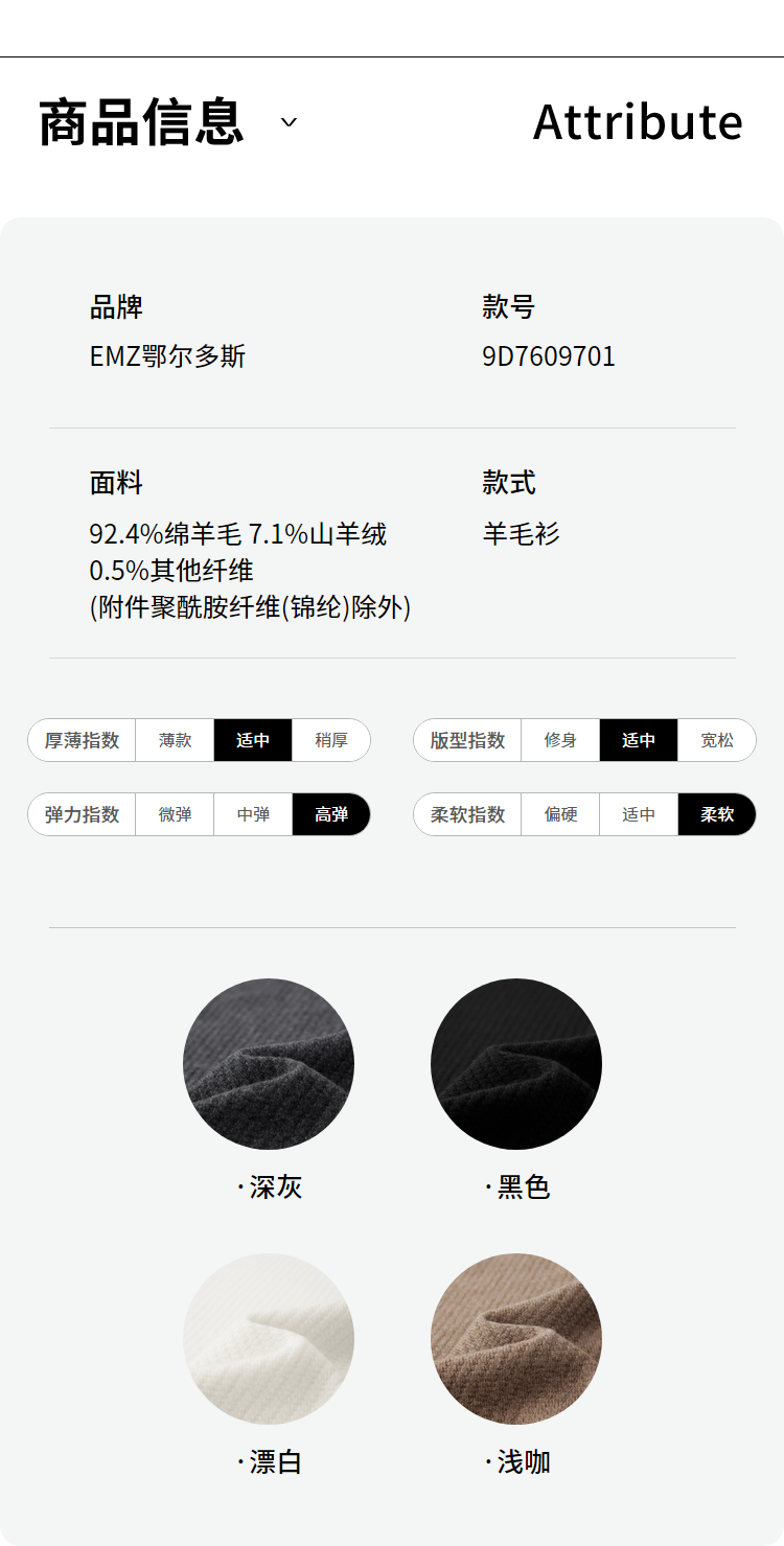 EMZ鄂尔多斯【5A抑菌 抗静电 明星同款】秋冬羊绒羊毛翻领保暖毛衫
