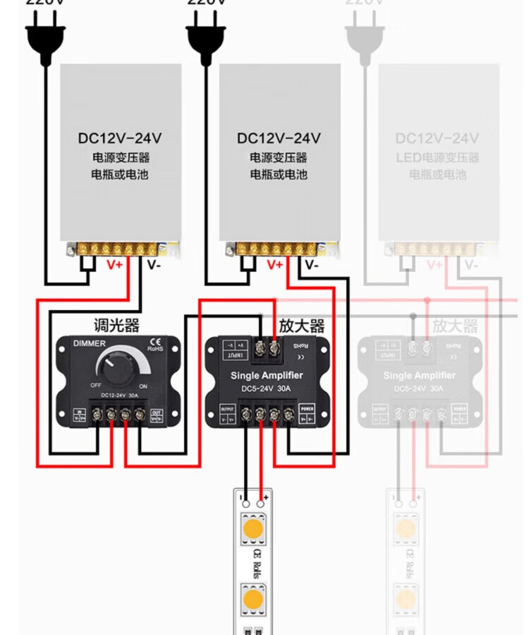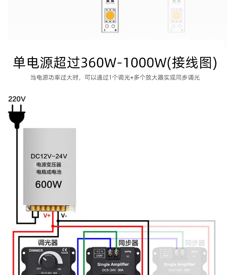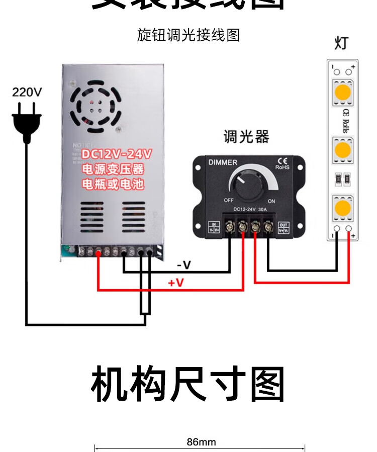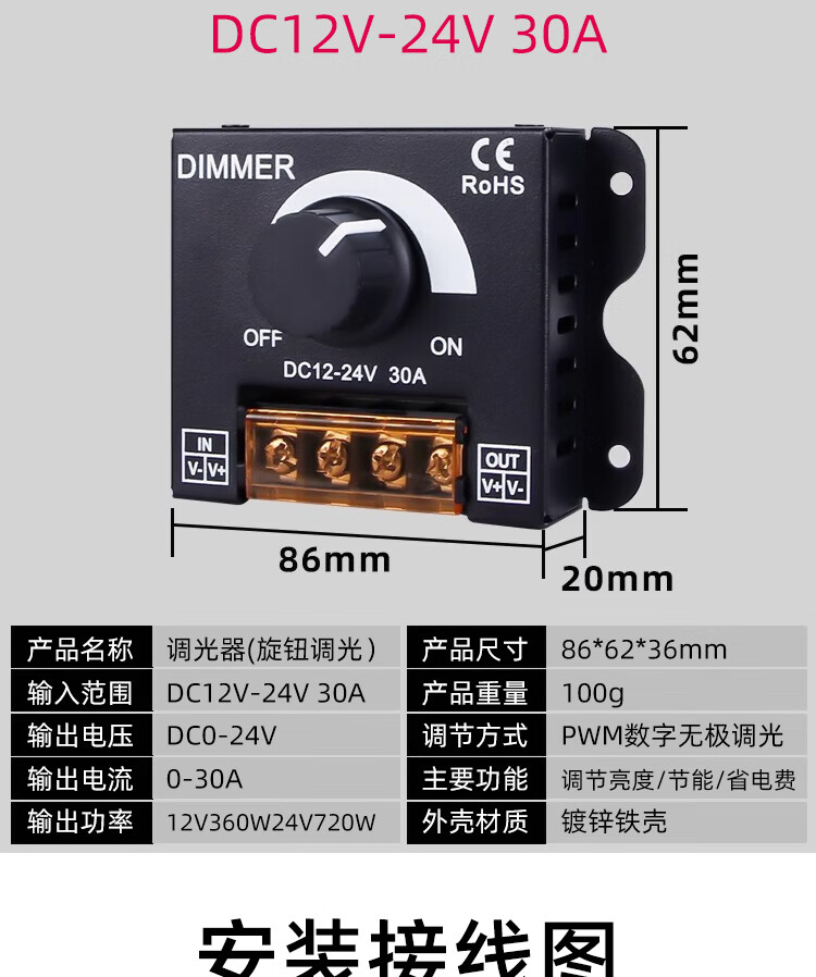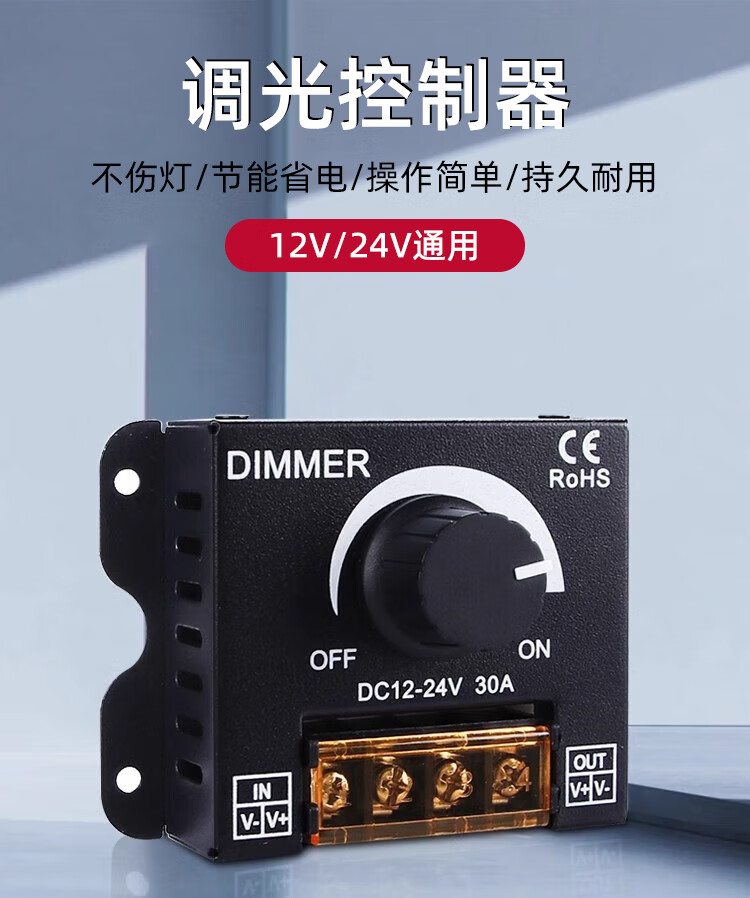 Huili LED dimmer advertising word light box dimmer switch led soft and hard light bar light strip dimmer control touch DC low voltage knob dimmer 12V-24V/30A