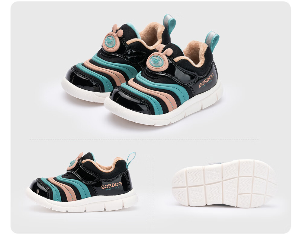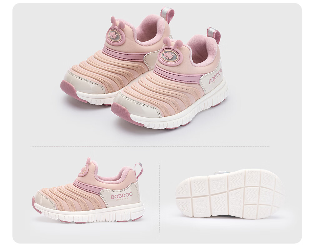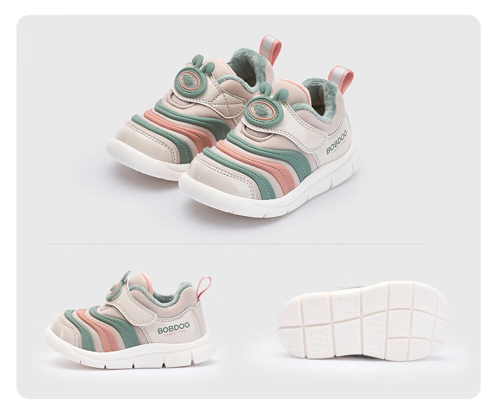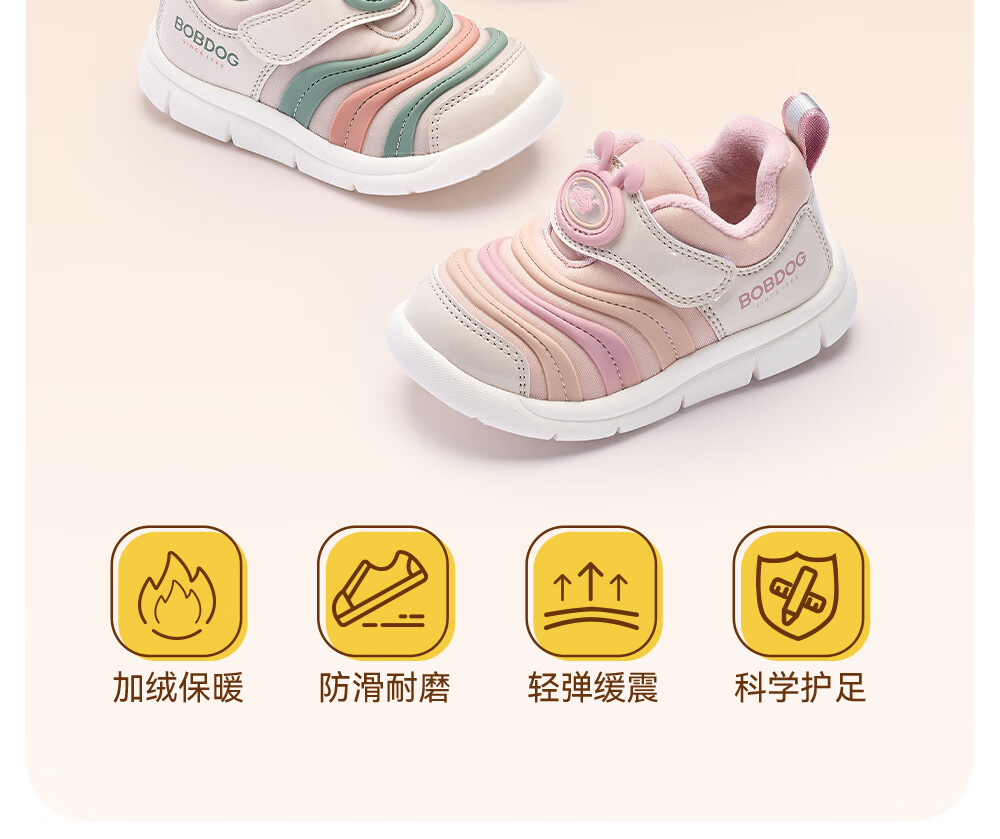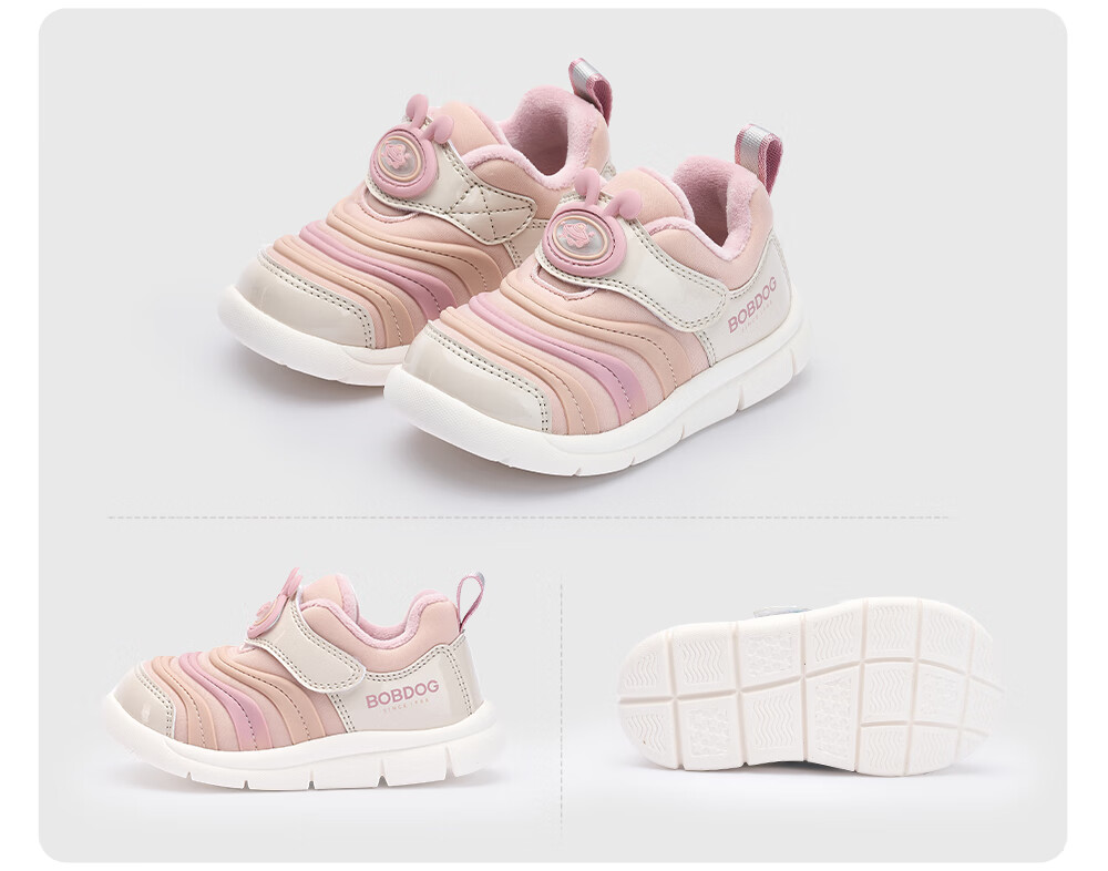 Babu Dou Baby Toddler Shoes Winter Plush Caterpillar Children's Infant Functional Shoes Two-Cotton Children's Shoes Shell Pink Size 22