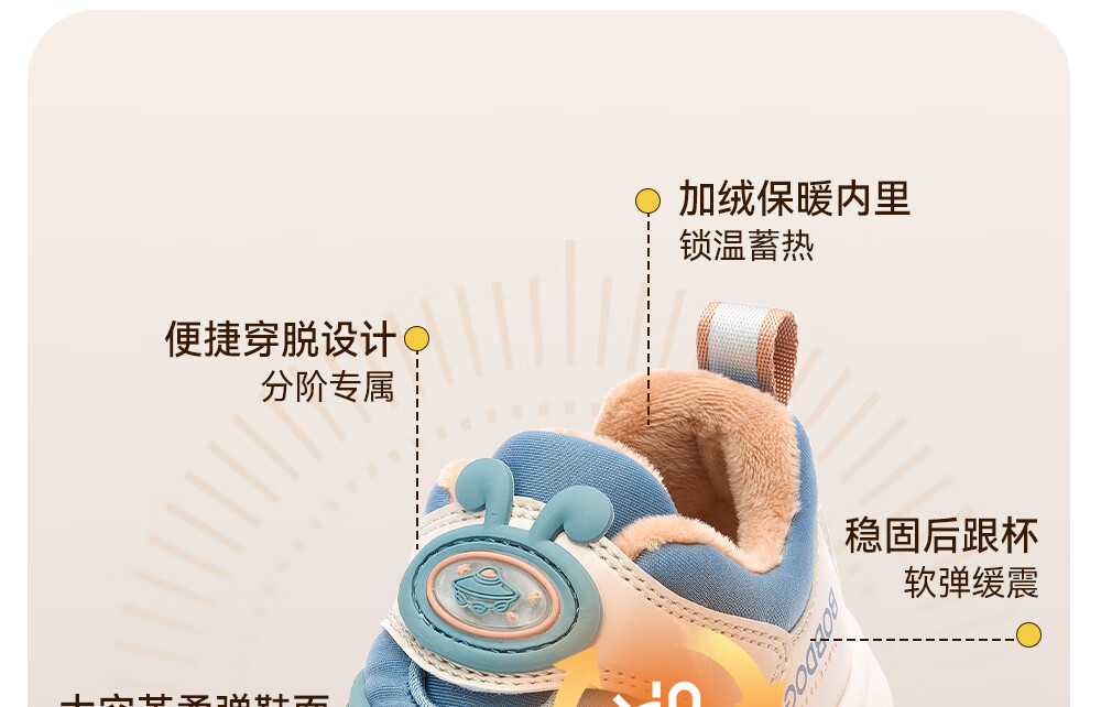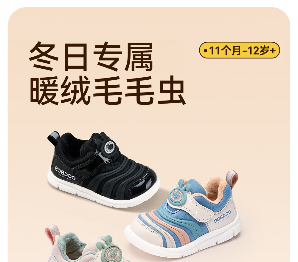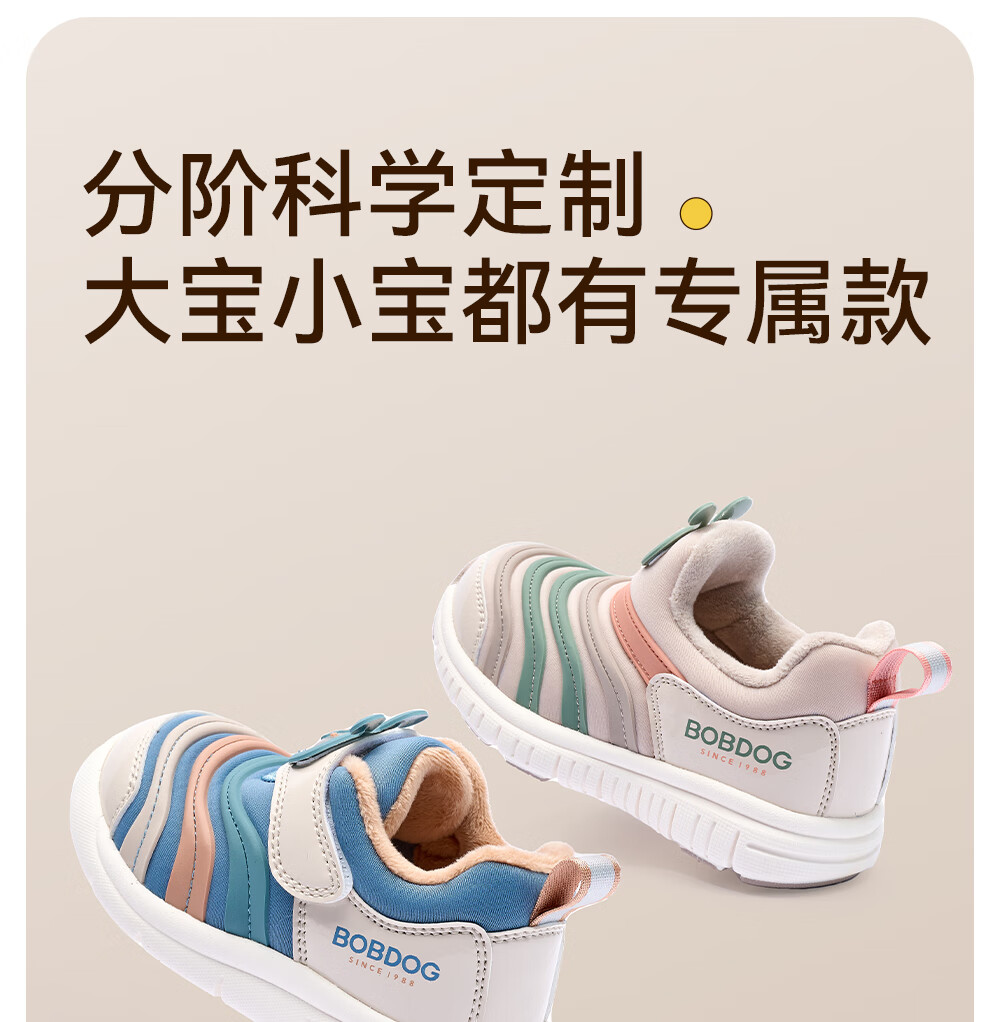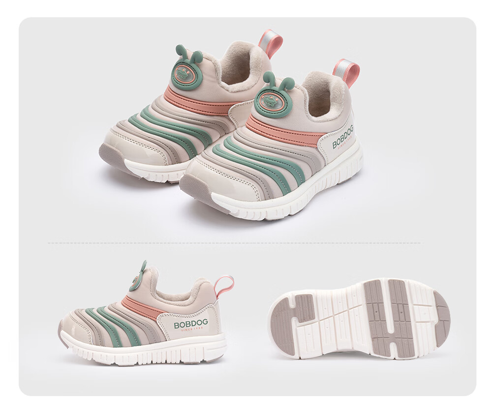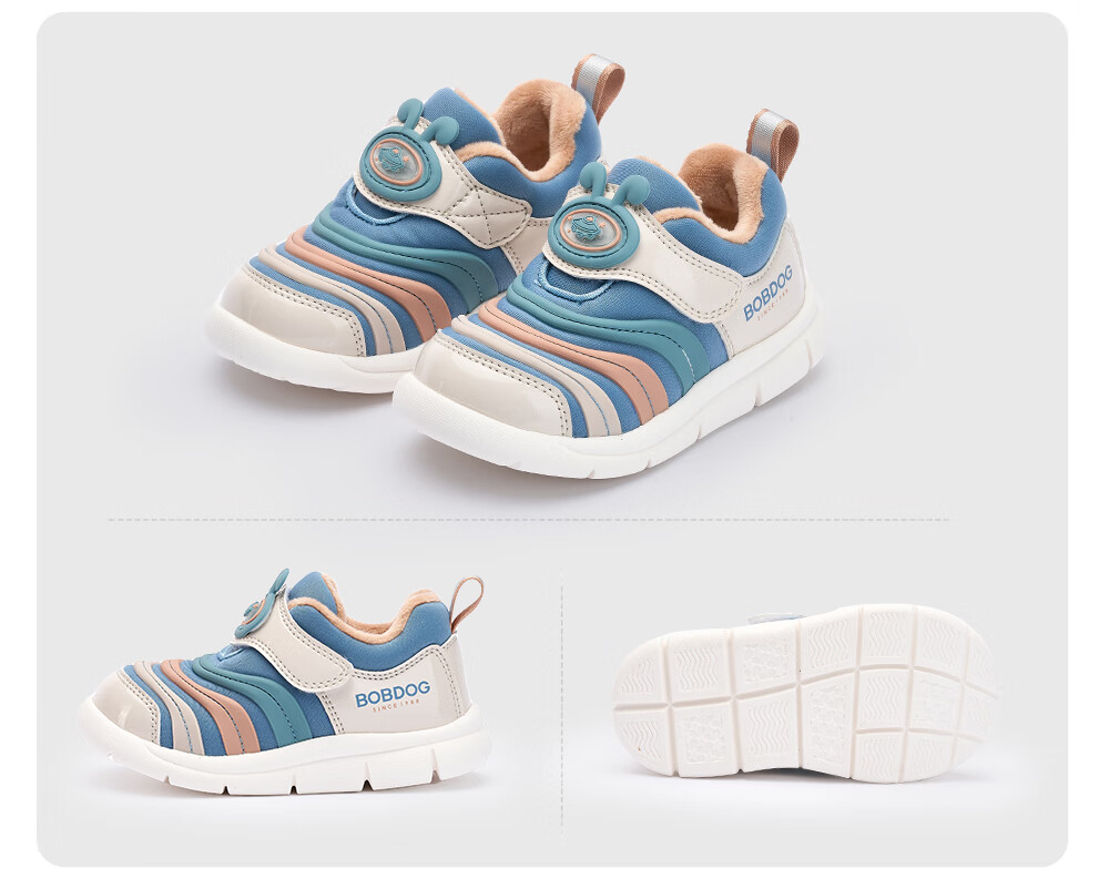 Babu Dou Baby Toddler Shoes Winter Plush Caterpillar Children's Infant Functional Shoes Two-Cotton Children's Shoes Shell Pink Size 22