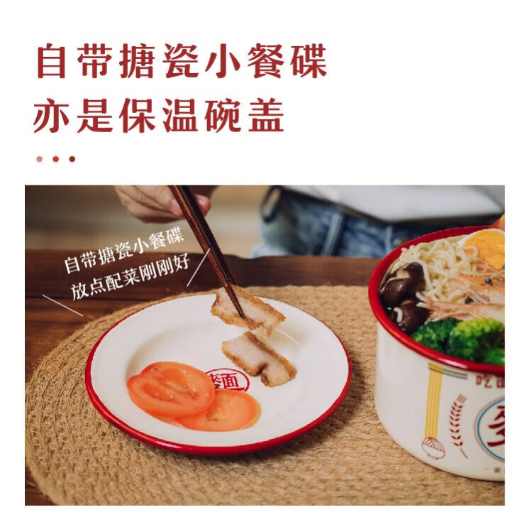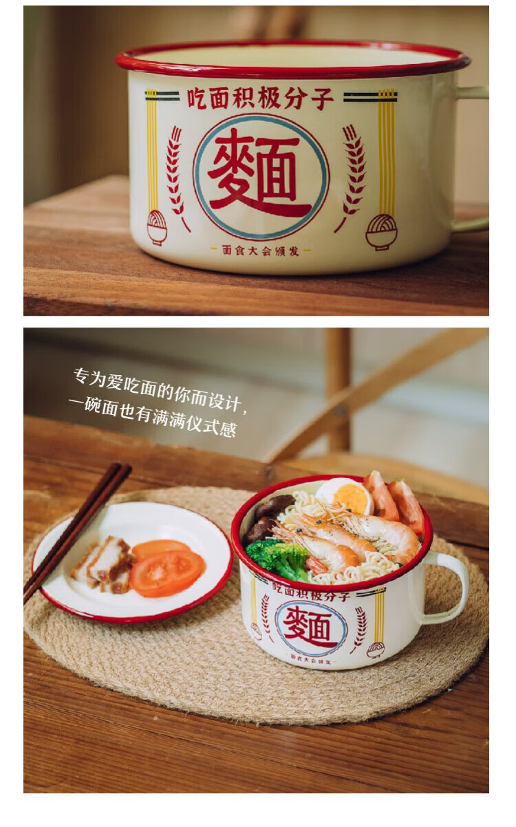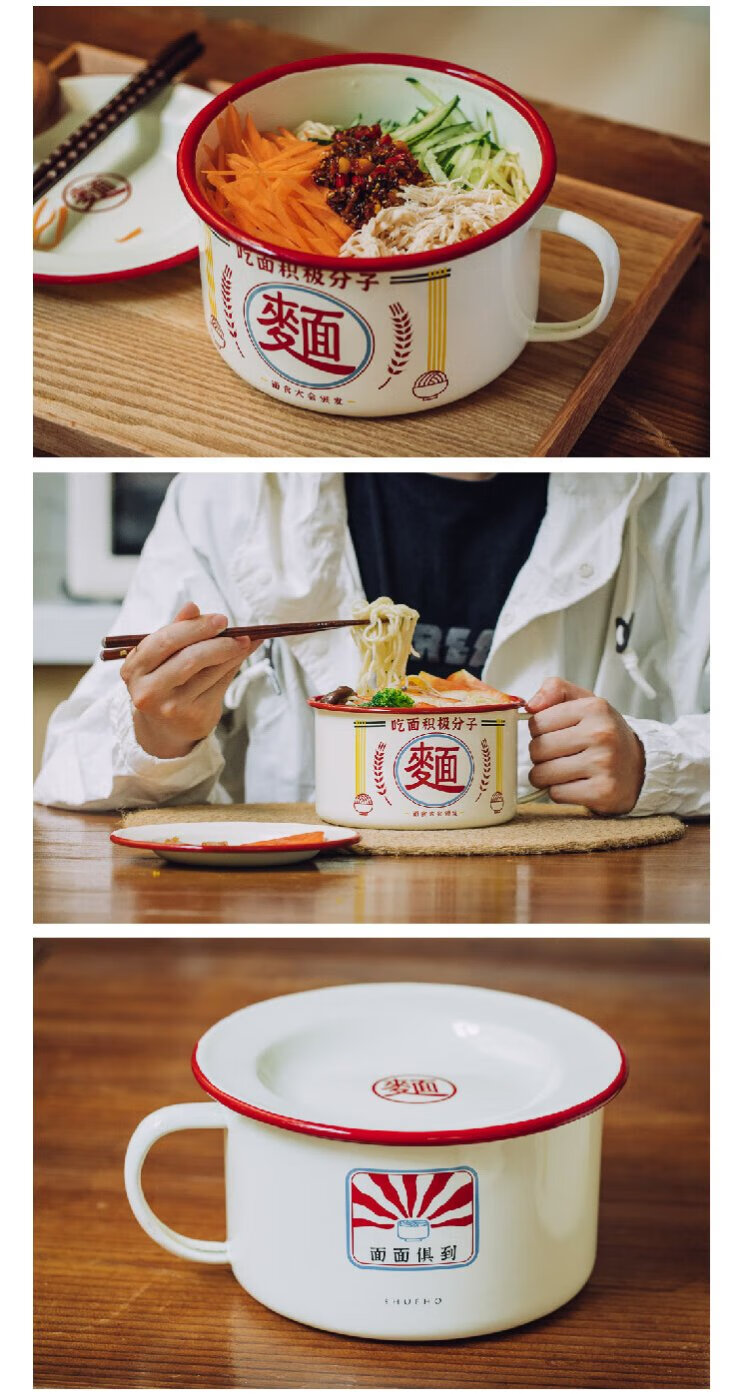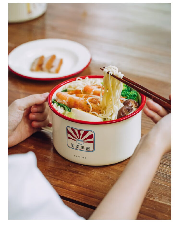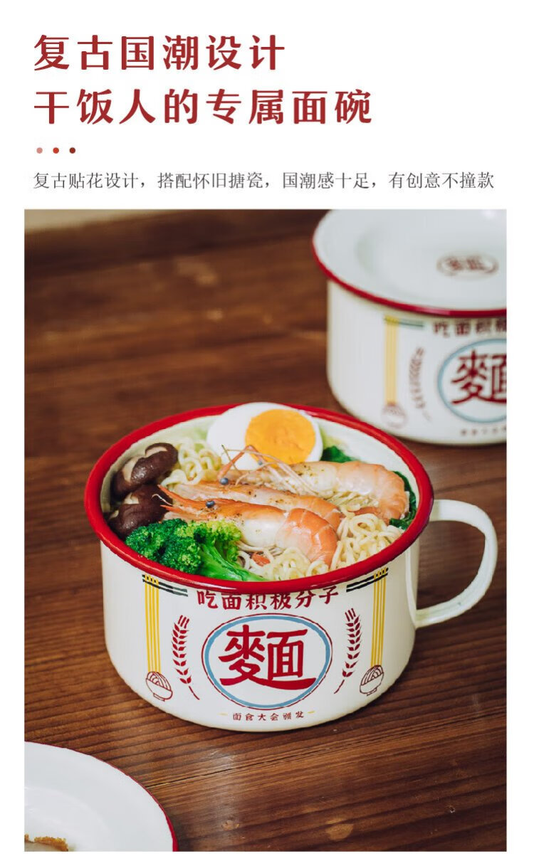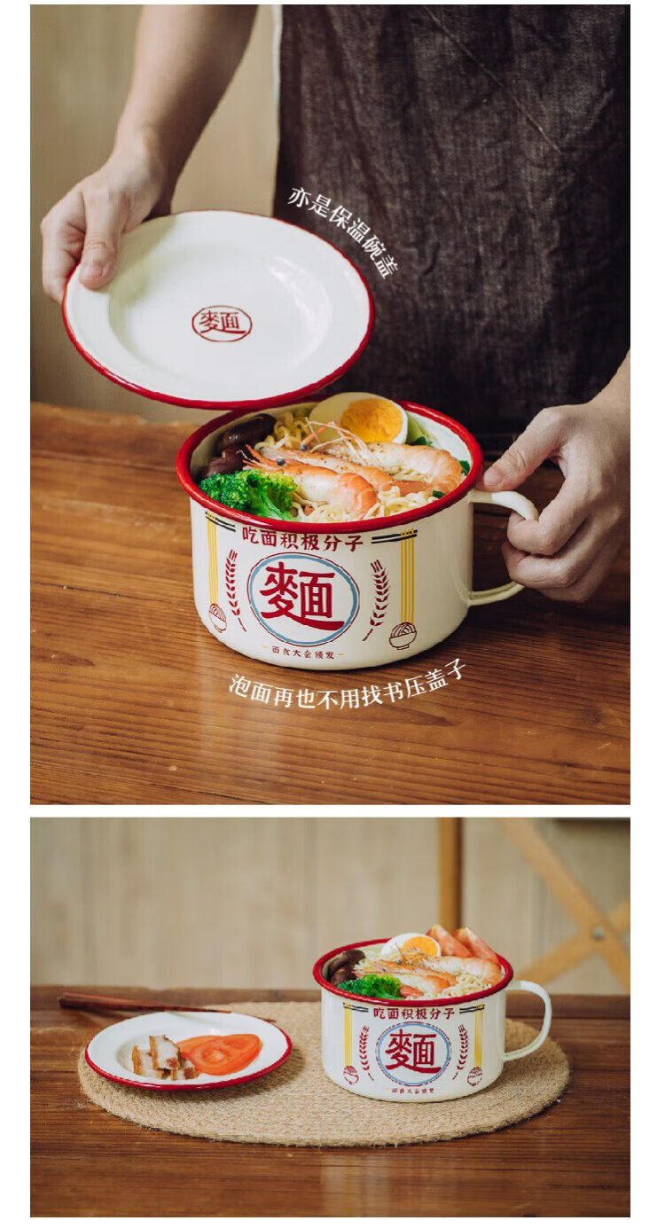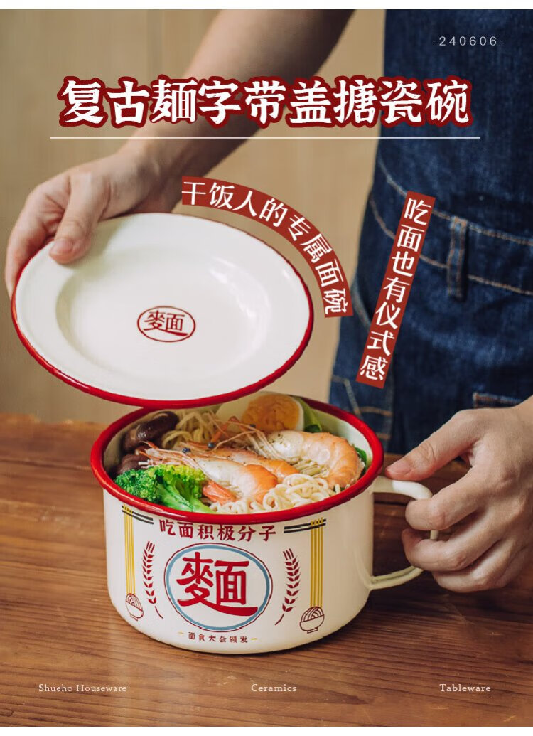 Shuke enamel noodles instant noodle bowl with lid enamel bowl retro creative one-person tableware rice bowl single large