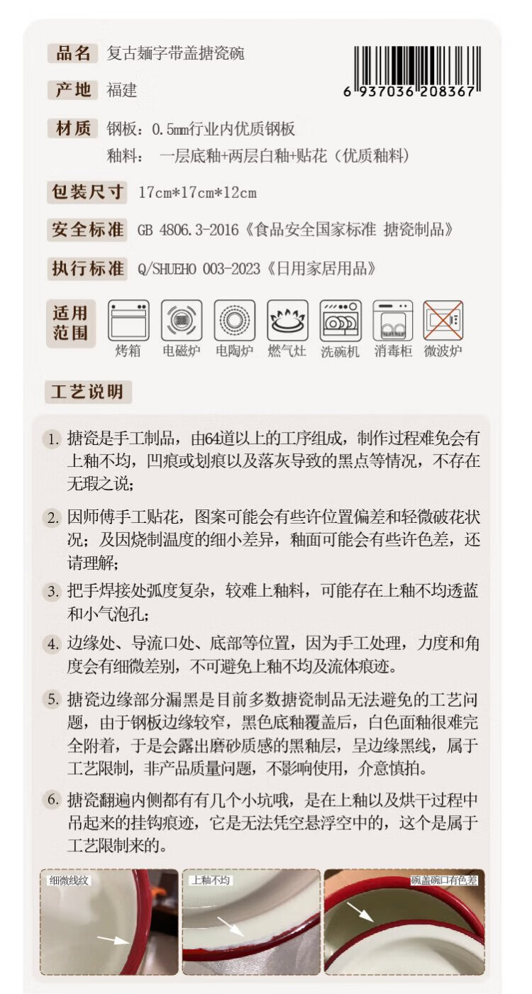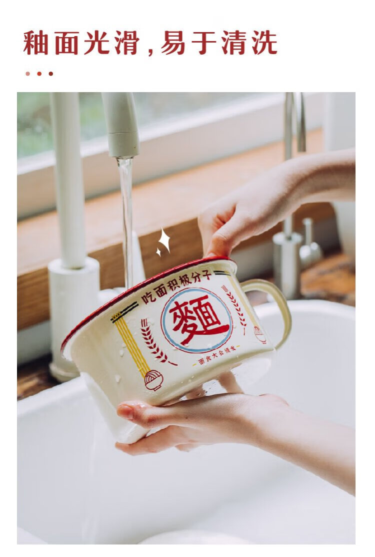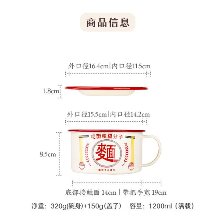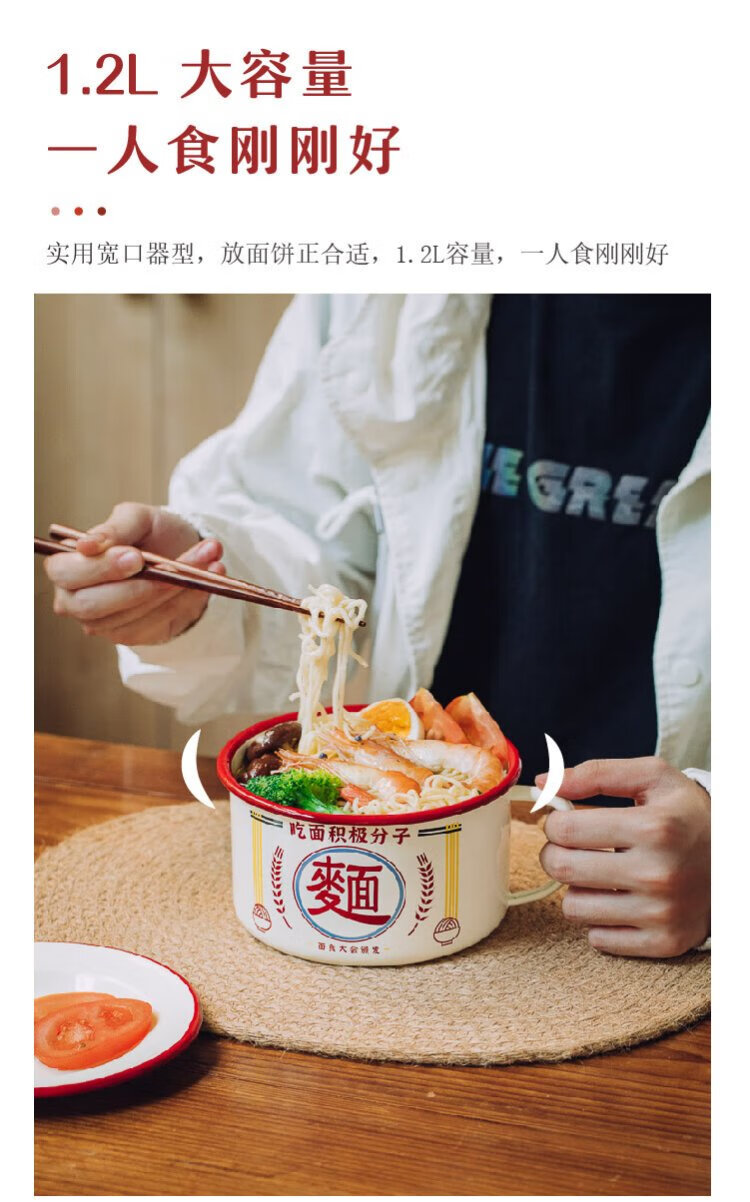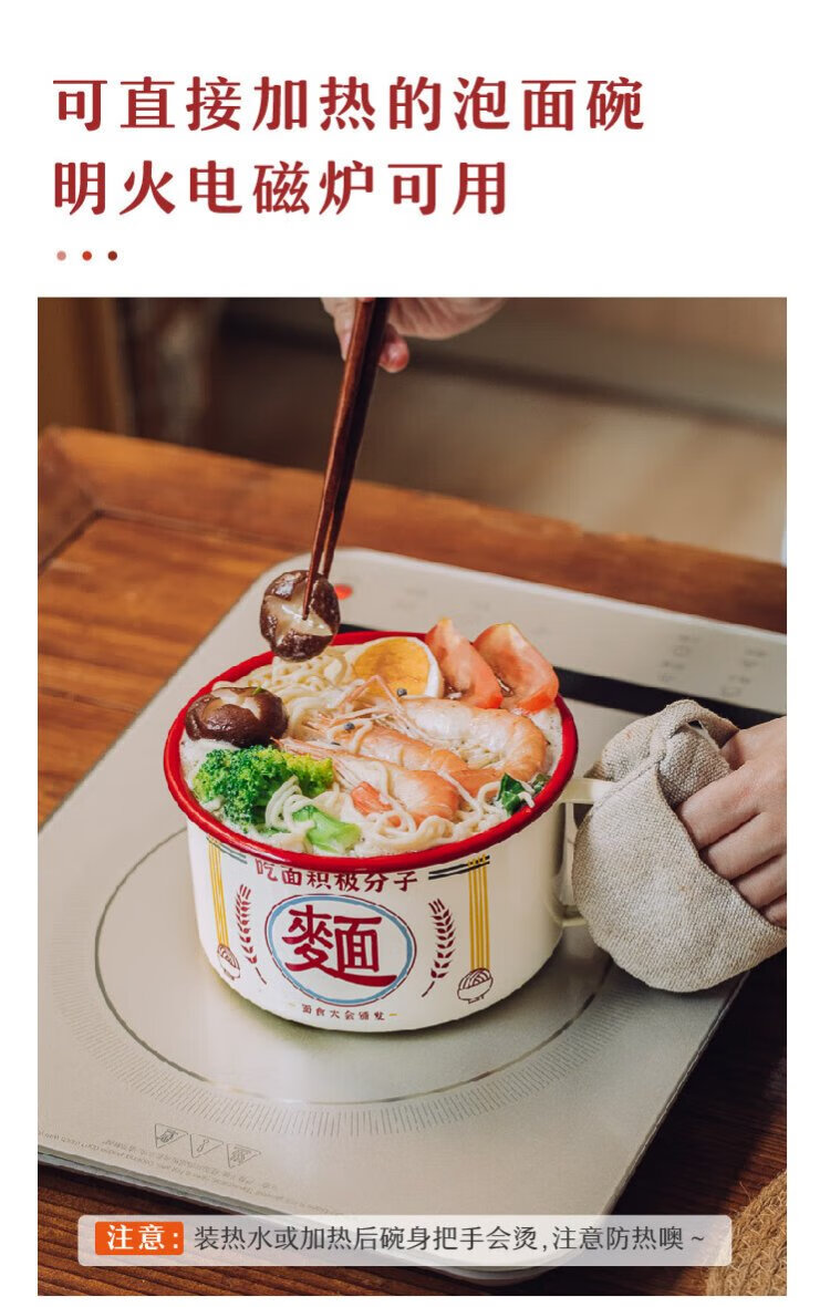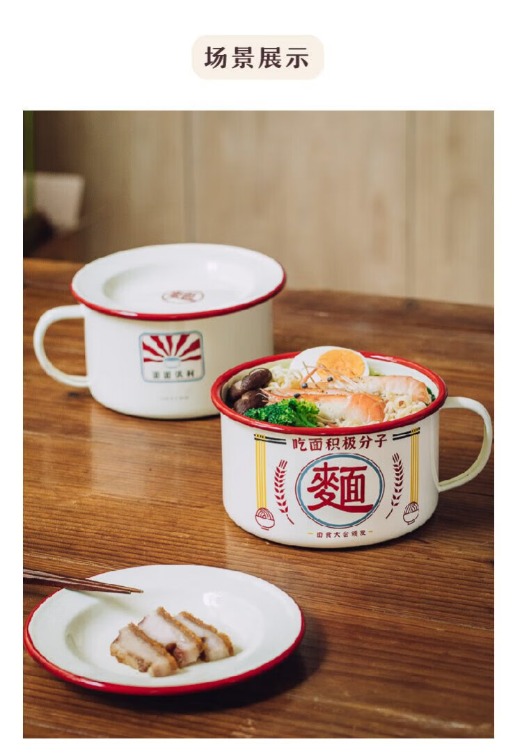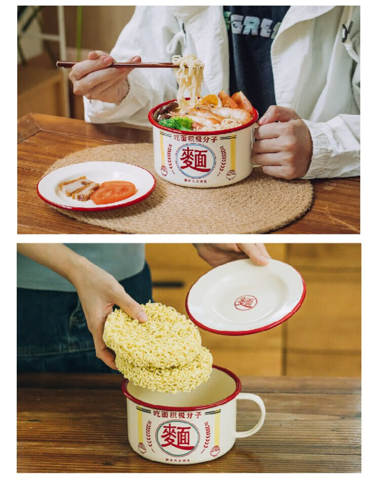 Shuke enamel noodles instant noodle bowl with lid enamel bowl retro creative one-person tableware rice bowl single large