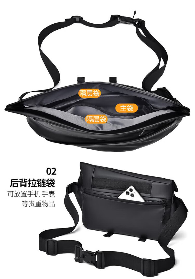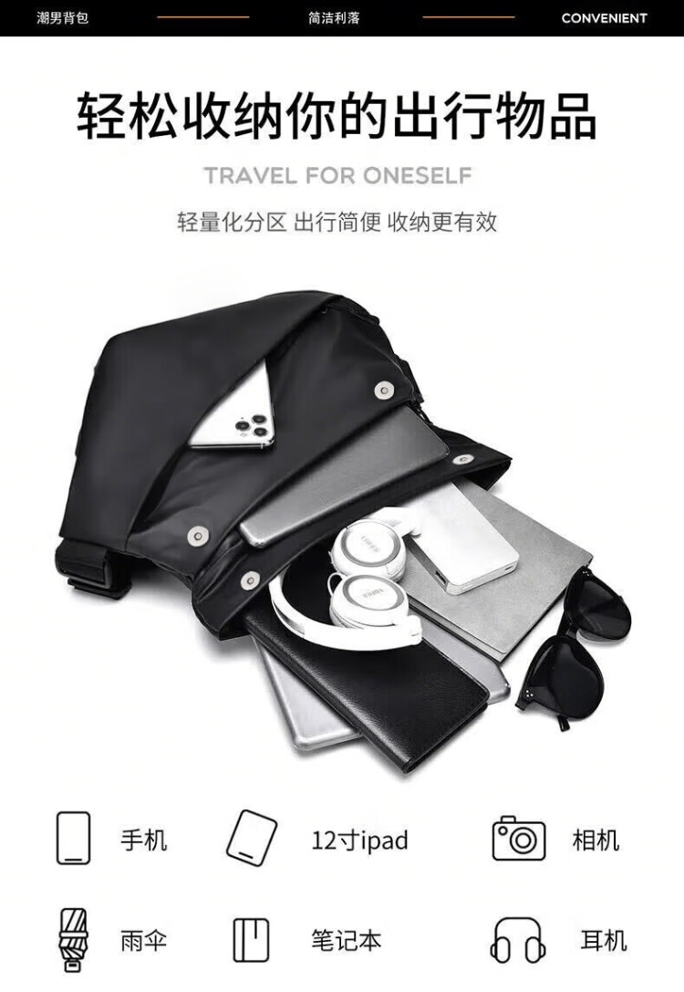 Pull back magnetic buckle men's crossbody bag large capacity functional chest bag commuter bag cycling outdoor backpack sports shoulder bag