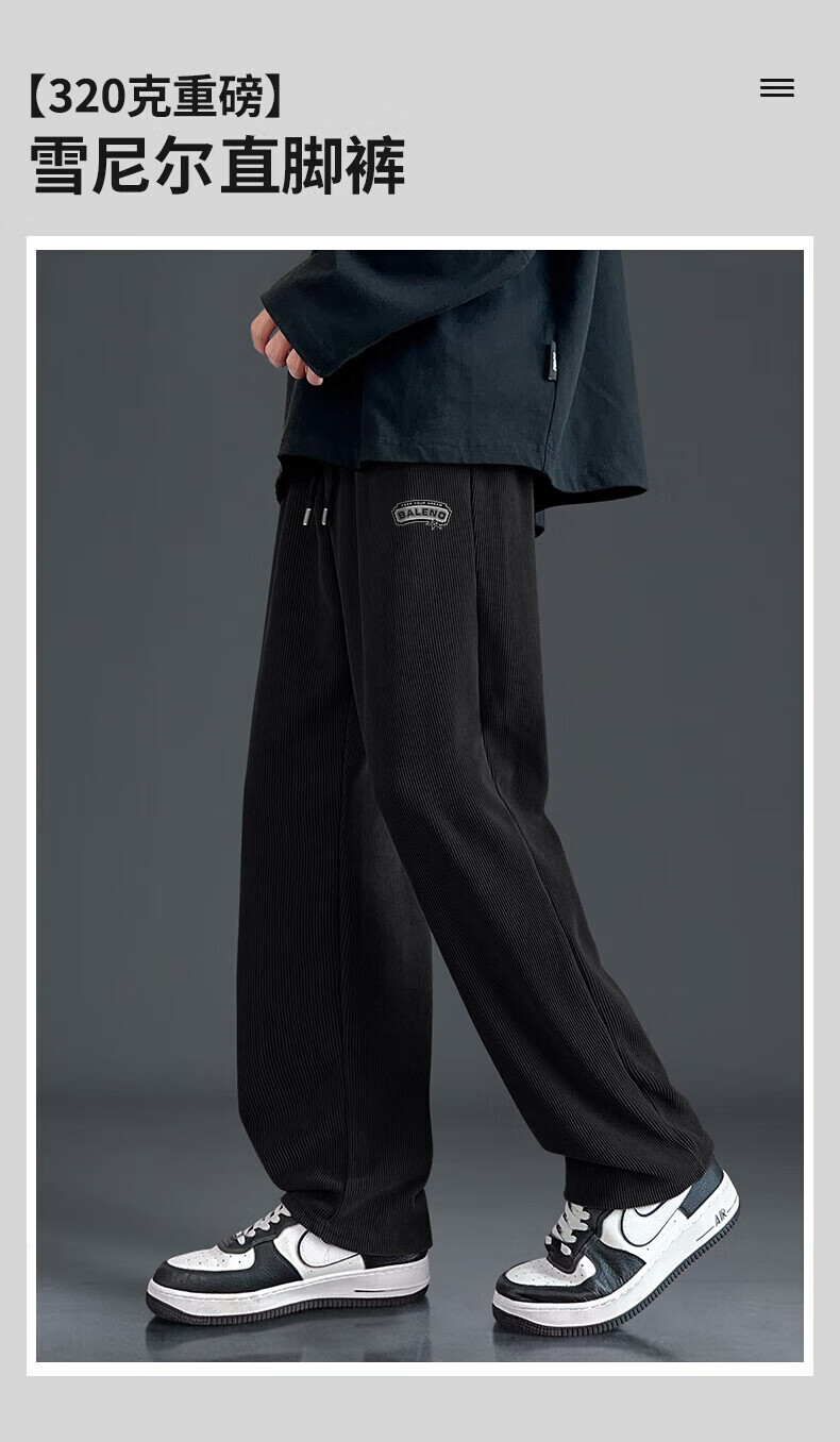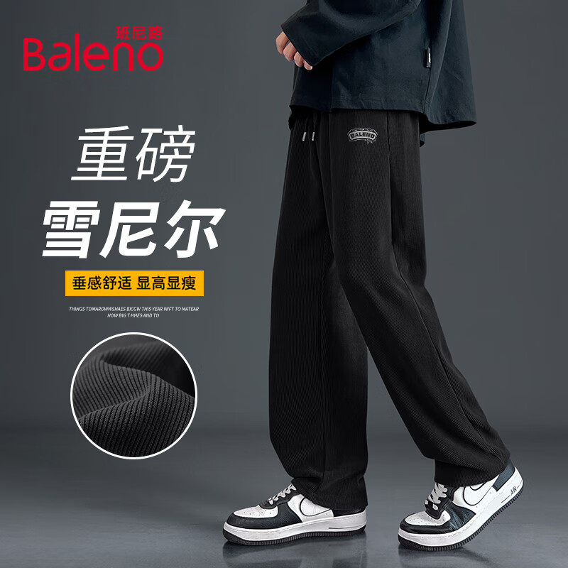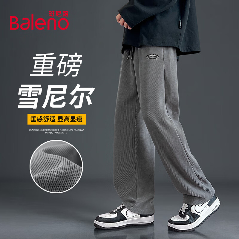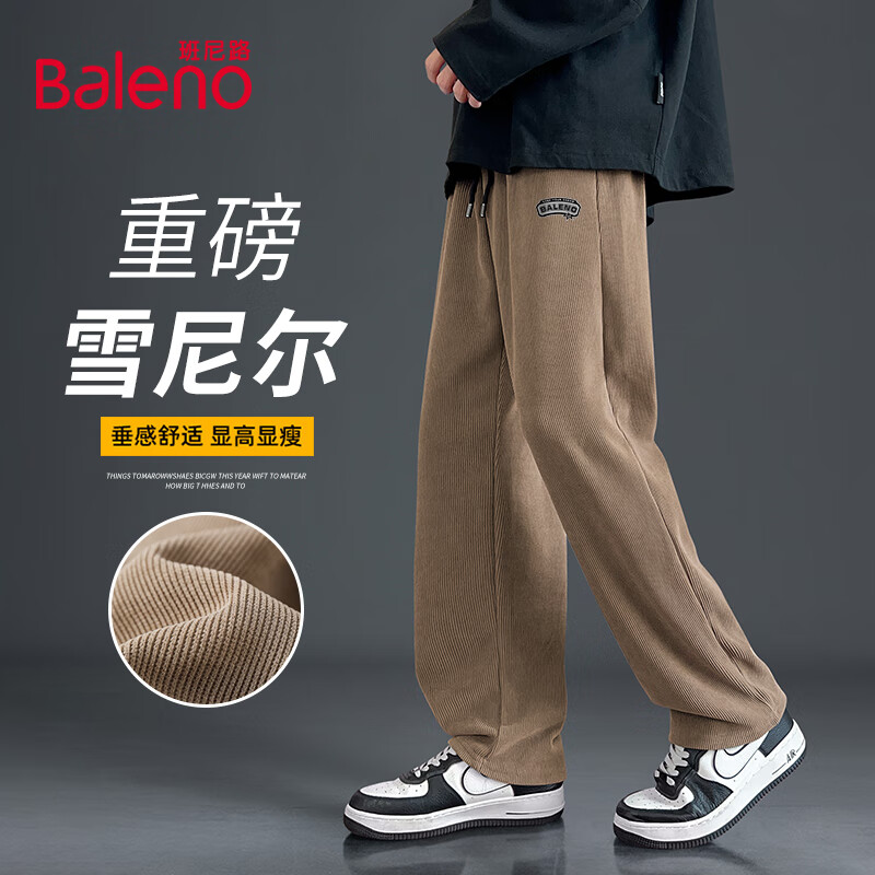 Baleno pants men's autumn and winter straight pants plus velvet retro trendy chenille casual trousers lazy style handsome men's pants