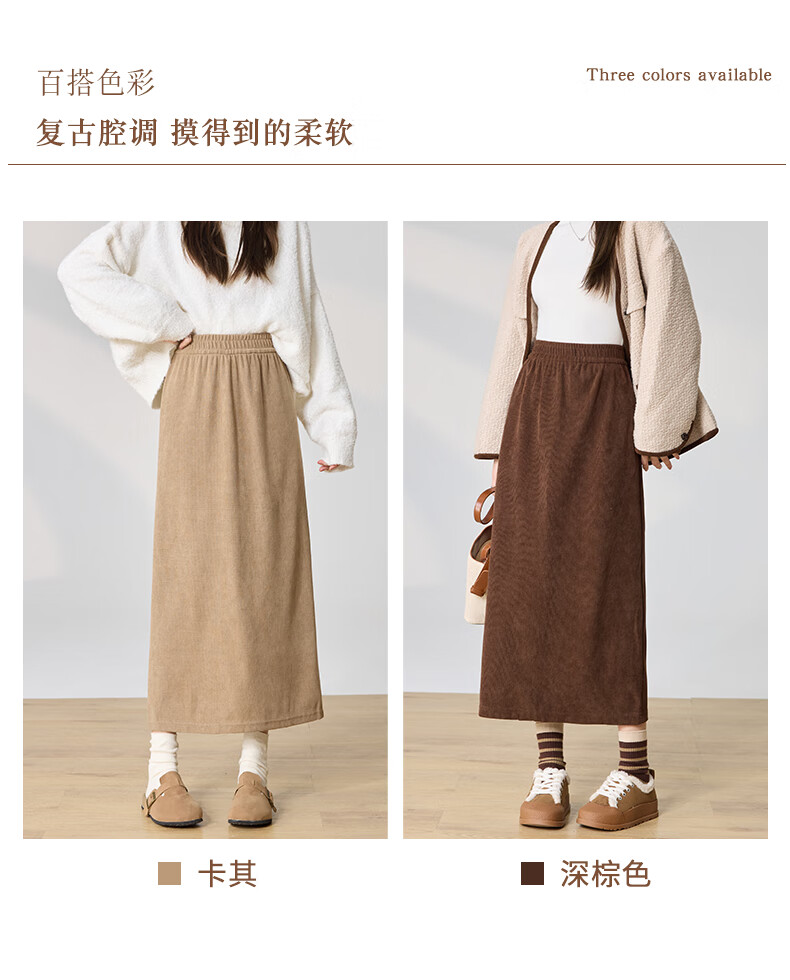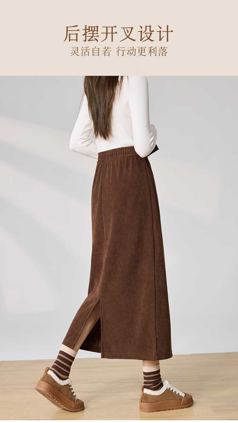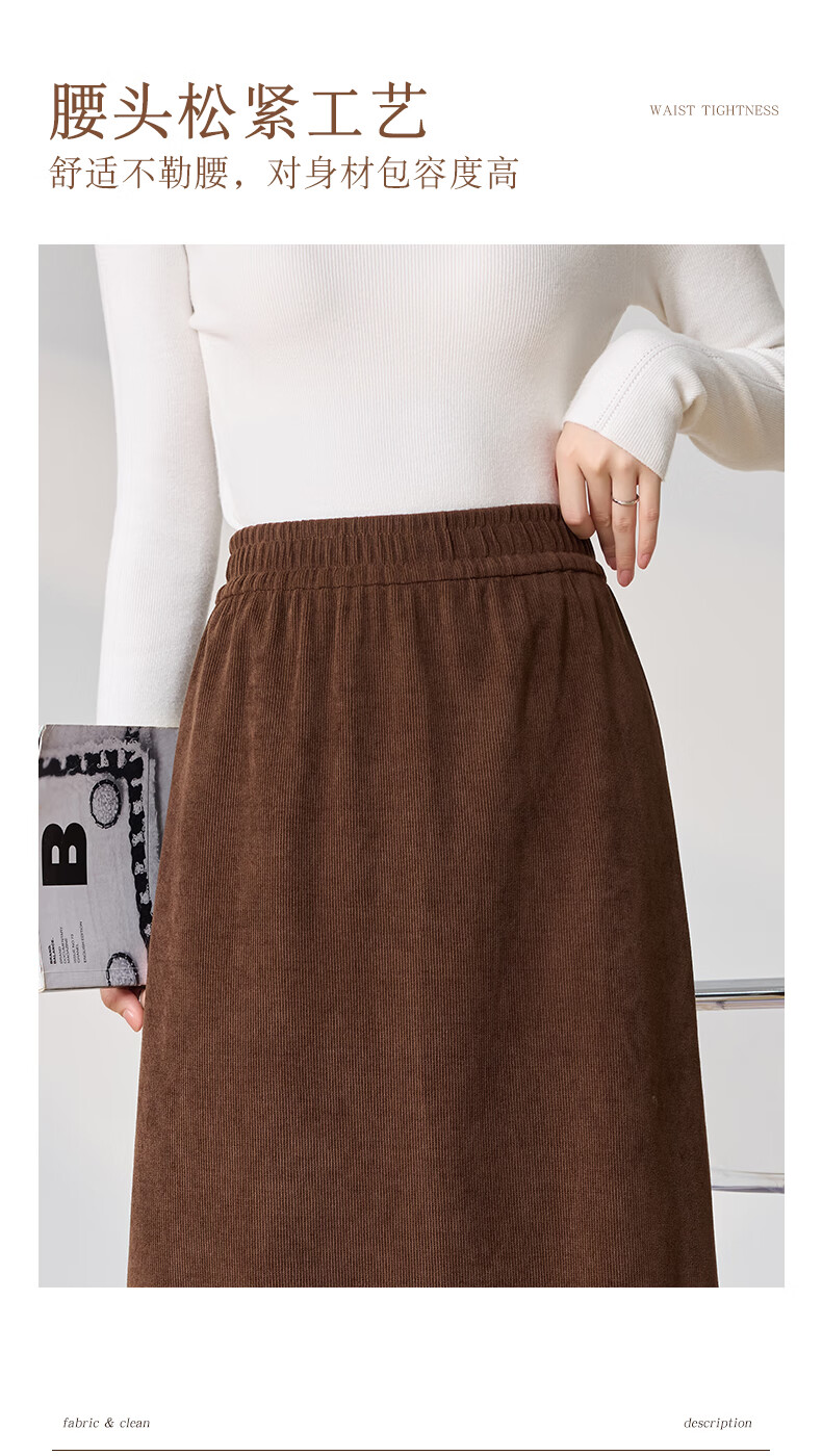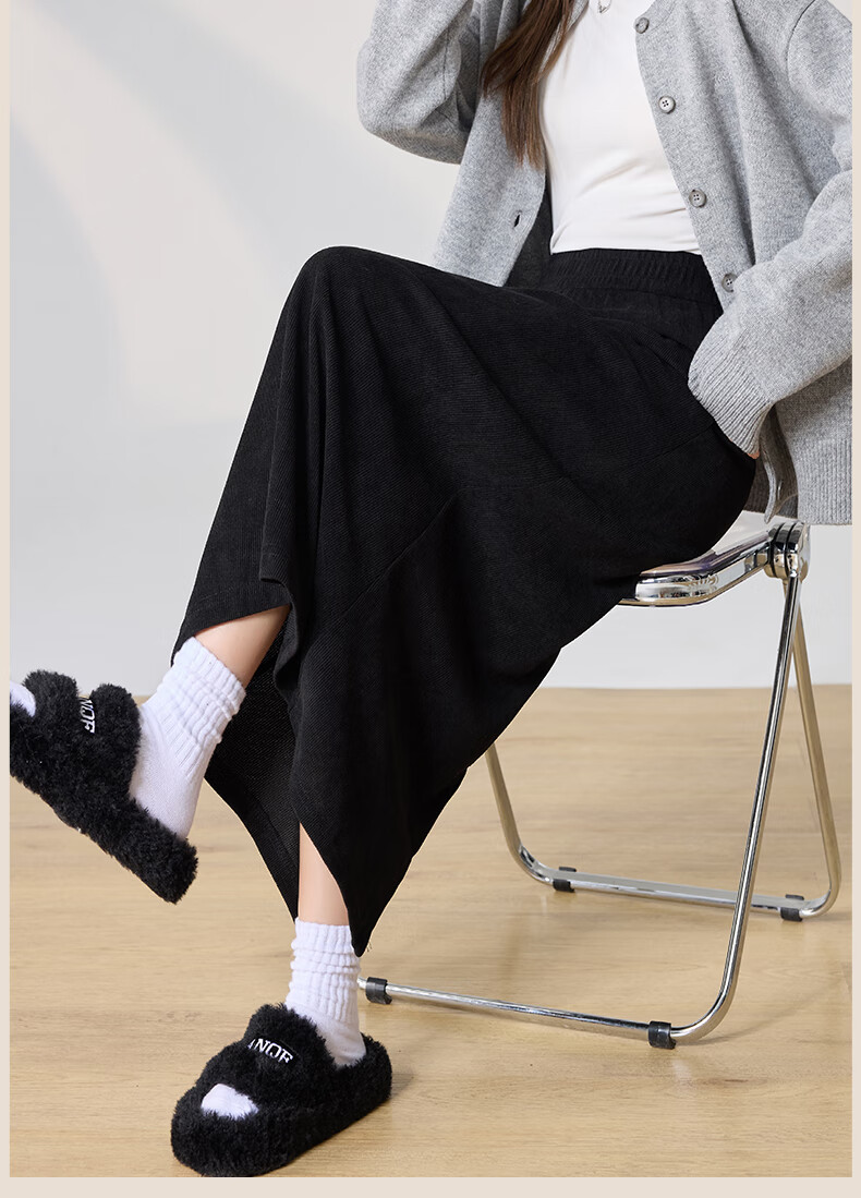 Langsha Corduroy Skirt Women's Autumn and Winter 2024 Mid-Length High Waist Back Slit Retro Premium A-Line Velvet Skirt