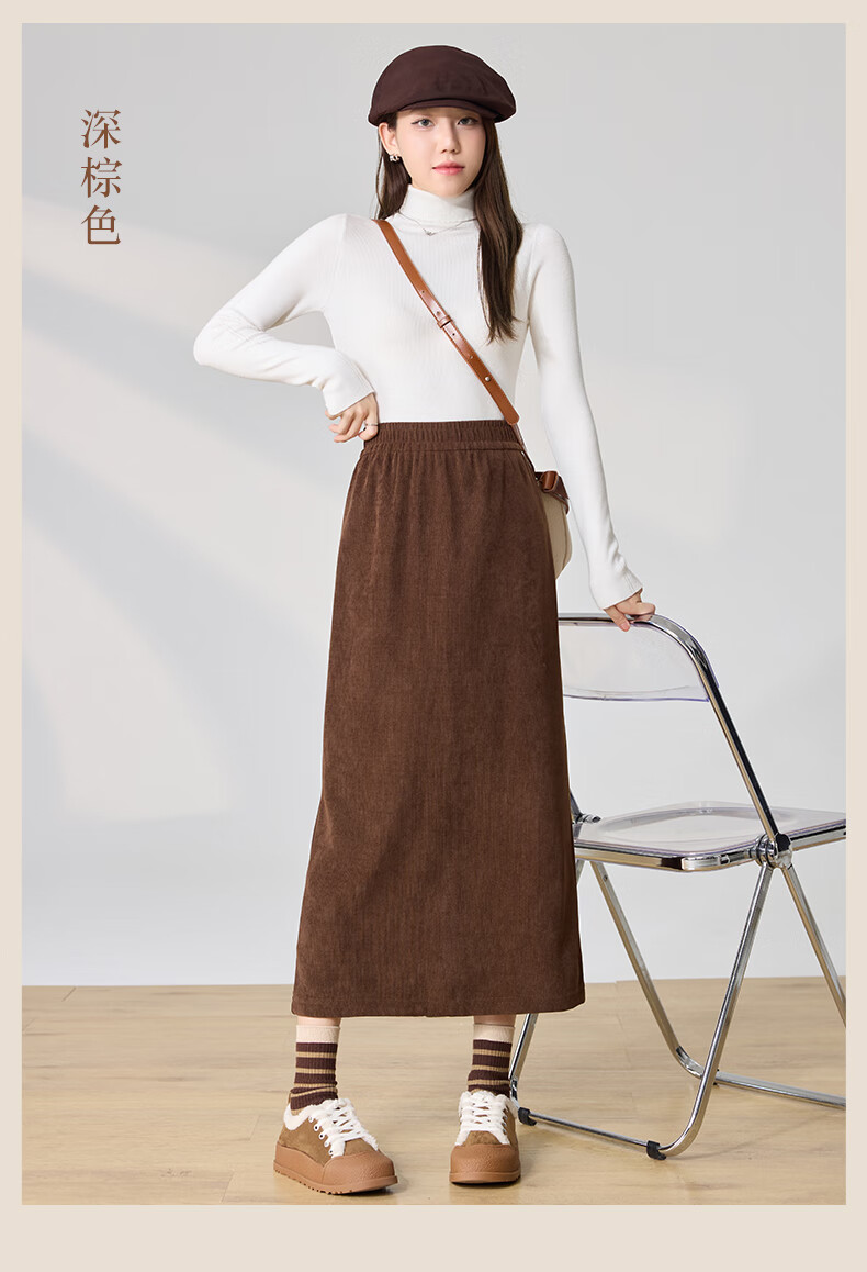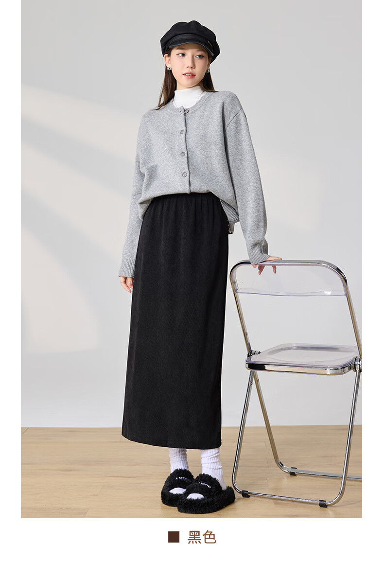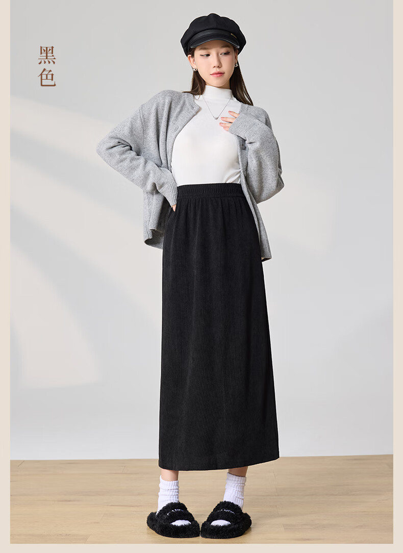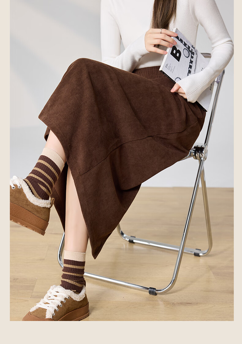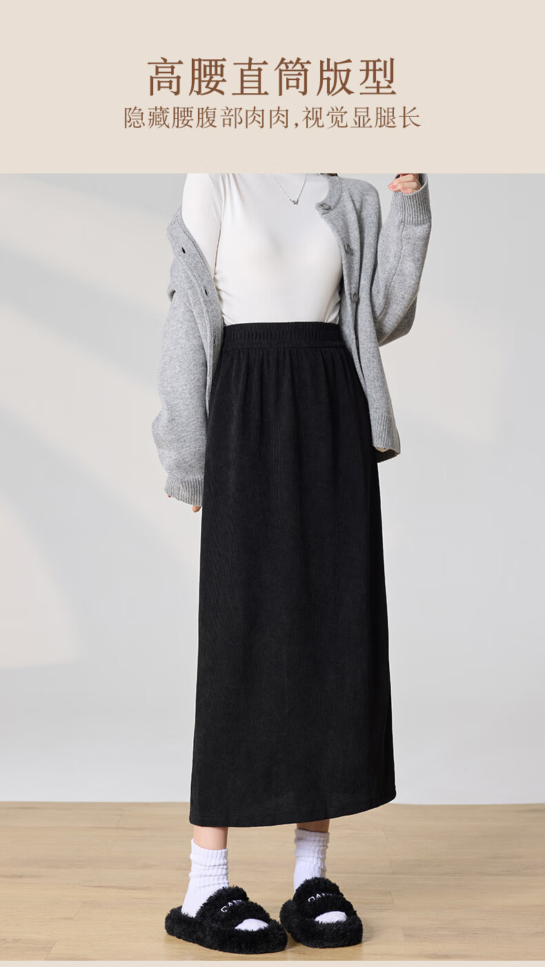 Langsha Corduroy Skirt Women's Autumn and Winter 2024 Mid-Length High Waist Back Slit Retro Premium A-Line Velvet Skirt