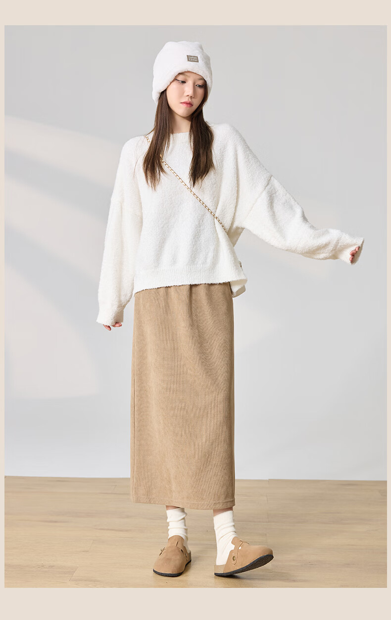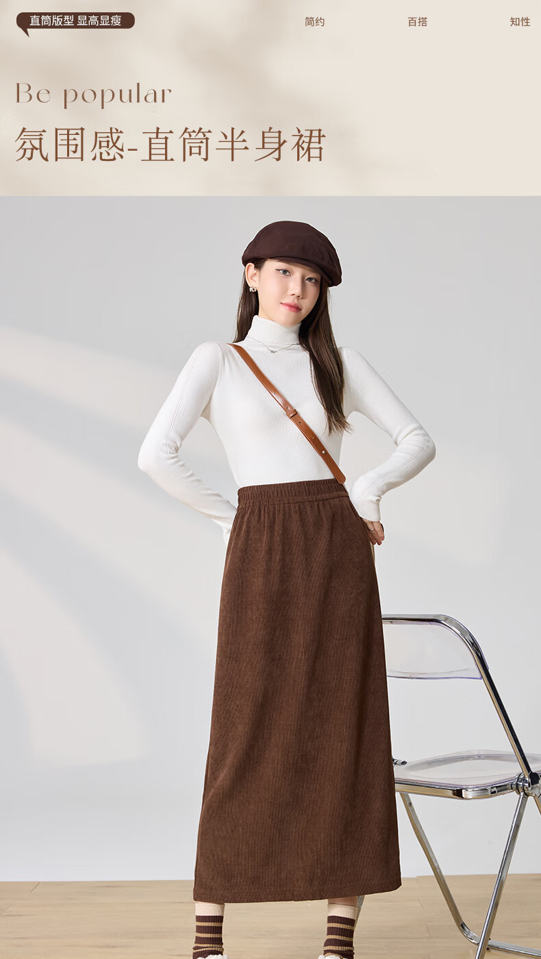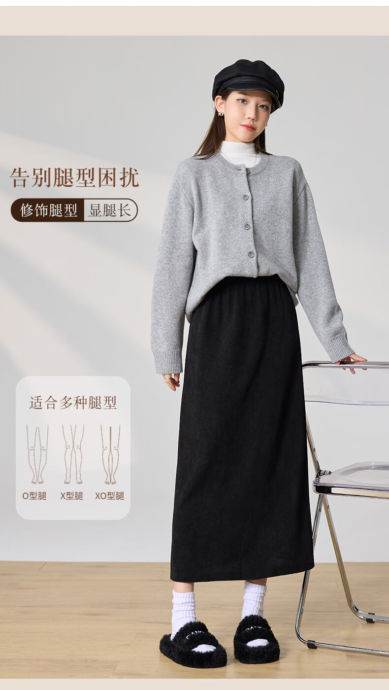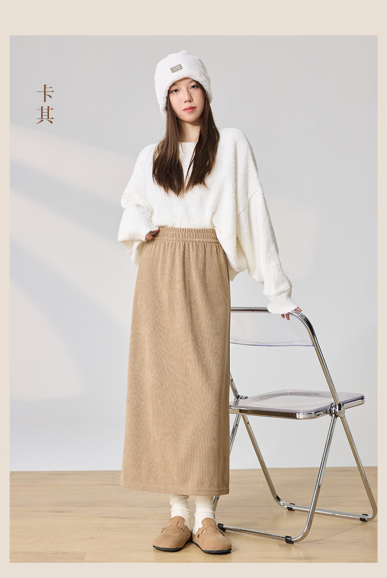 Langsha Corduroy Skirt Women's Autumn and Winter 2024 Mid-Length High Waist Back Slit Retro Premium A-Line Velvet Skirt