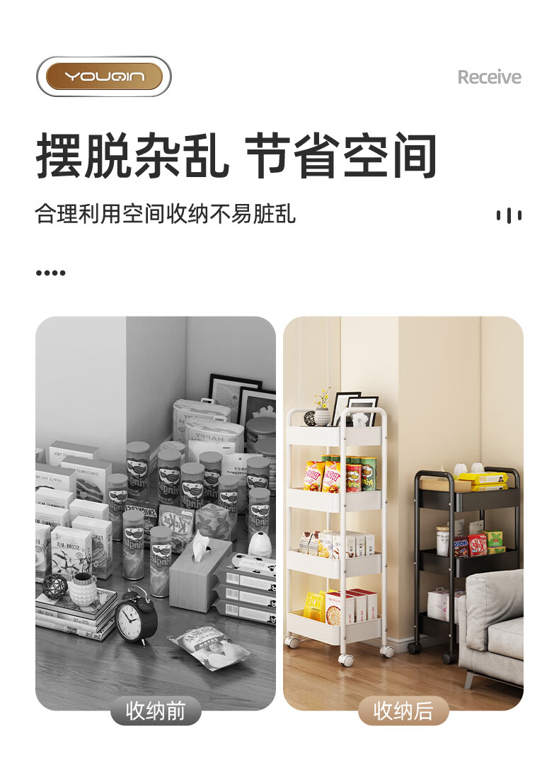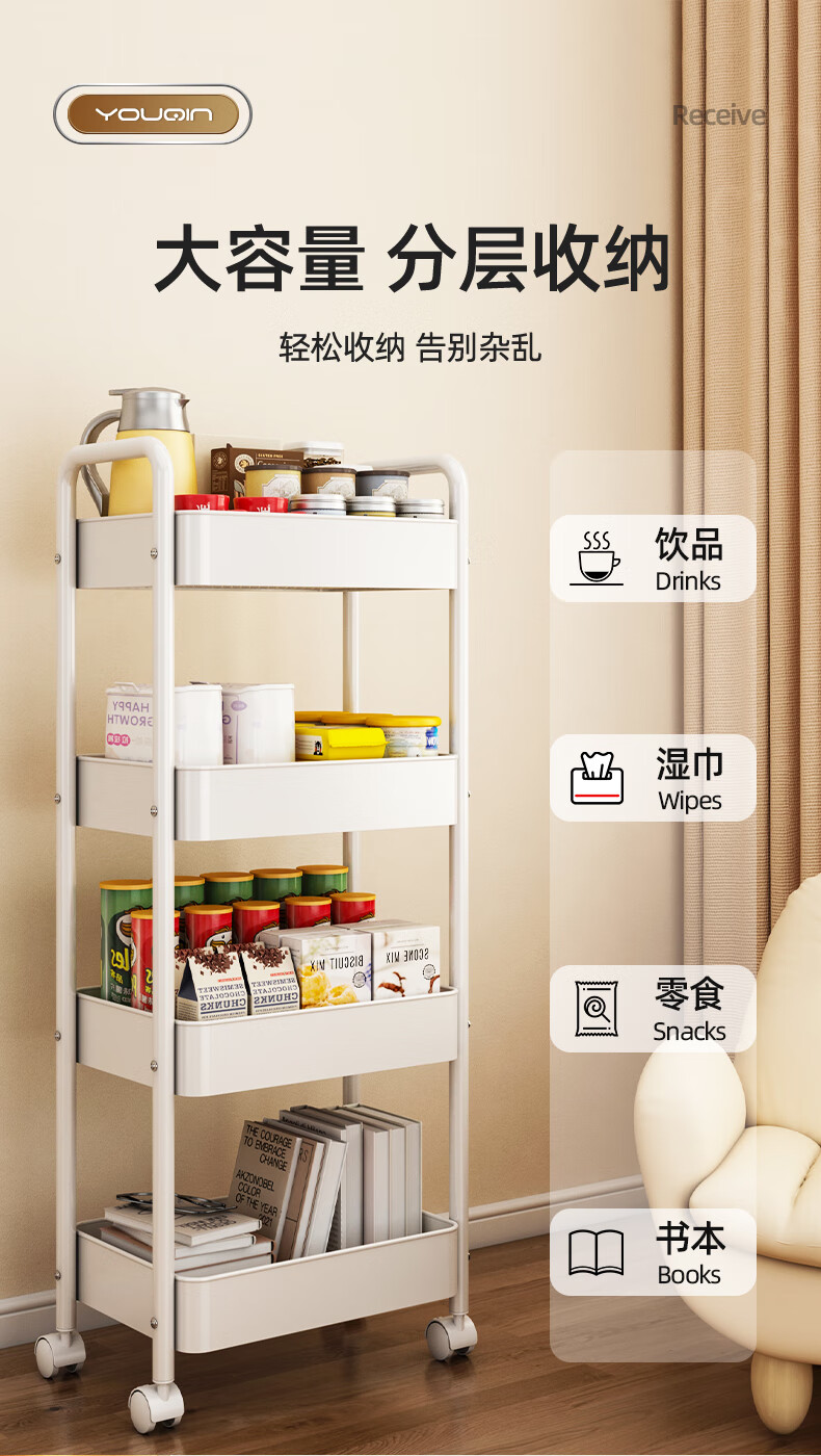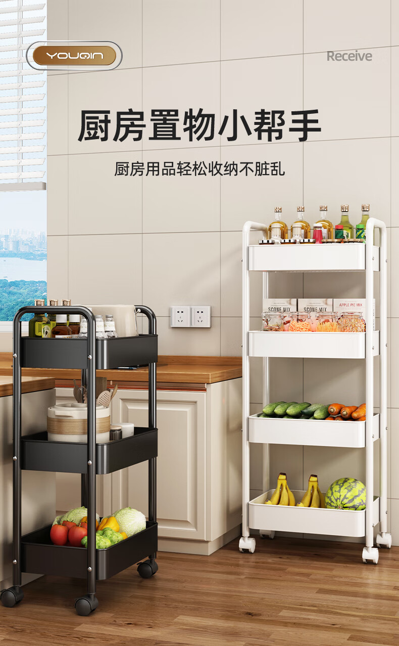 Youqin kitchen rack multi-functional floor-standing vegetable cart household fruit and vegetable basket multi-layer storage shelf