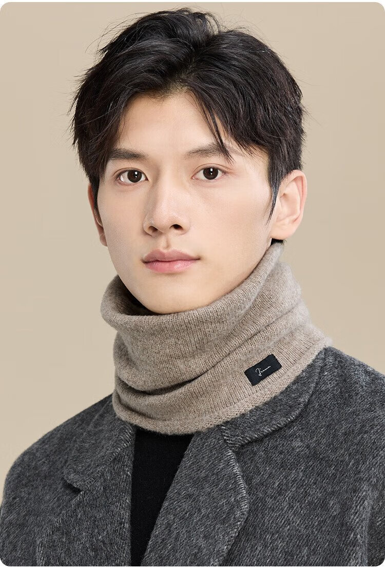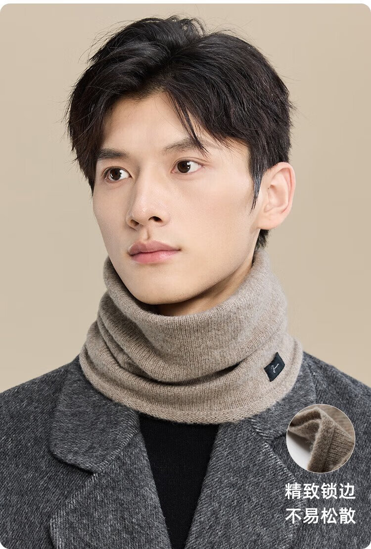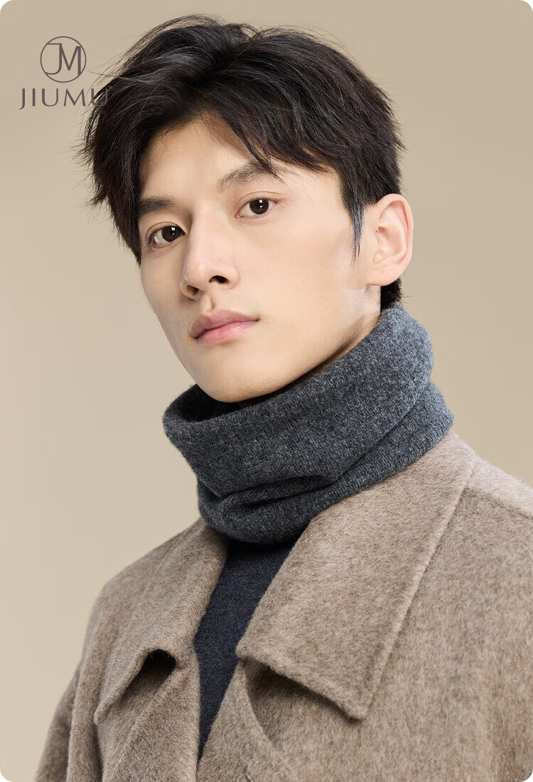 JIUMU Pure Wool Warm Scarf Men's Autumn and Winter Coldproof Neck Protector Boys Cycling Hood Neck Cover Outdoor Scarf Men Winter