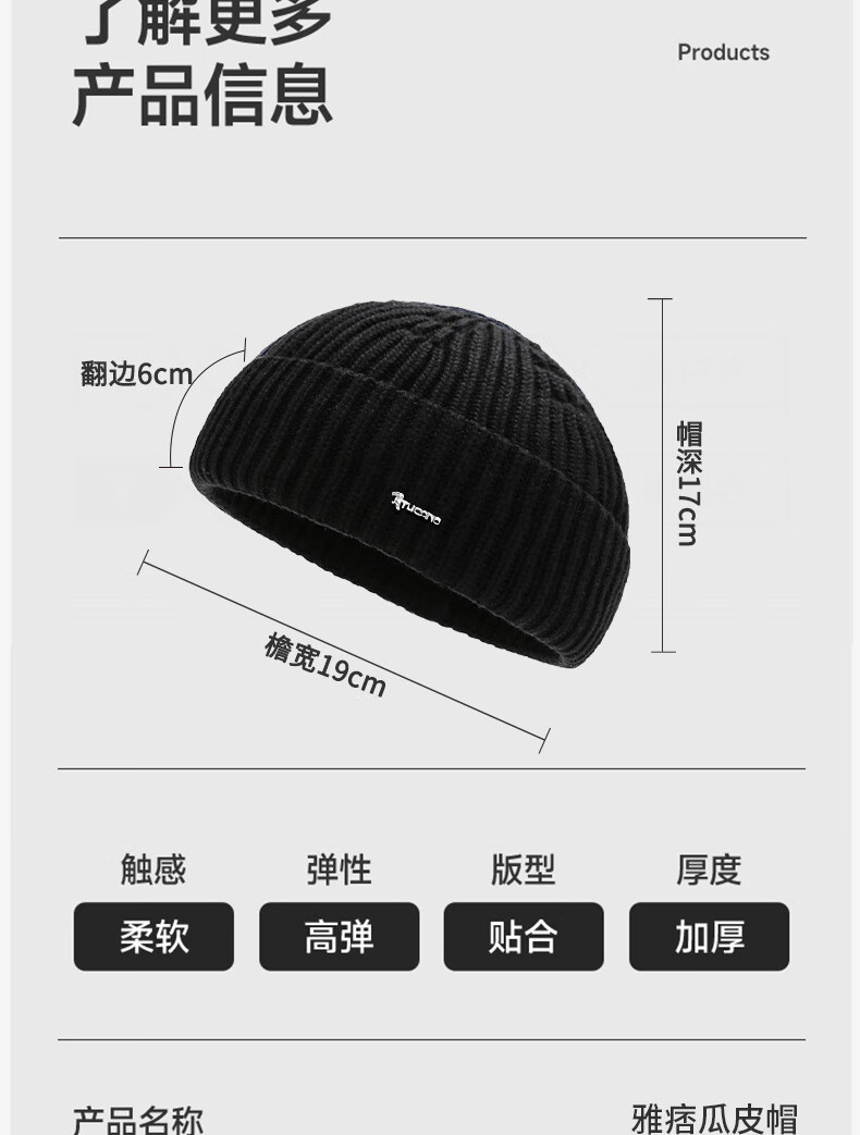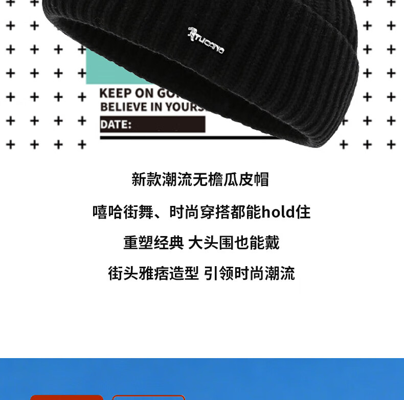 Woodpecker Hat Men's Autumn and Winter Cycling Cold Hat Hip-Hop Knitted Melon Hat Women's Japanese Woolen Hat Large Head Circumference Warm Cotton Hat