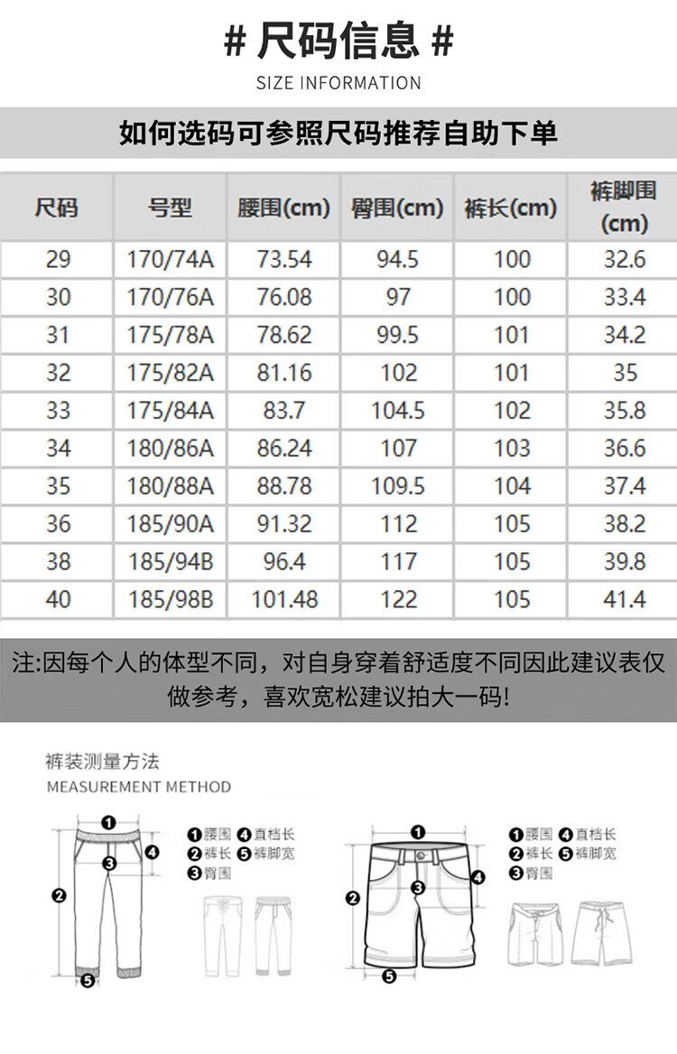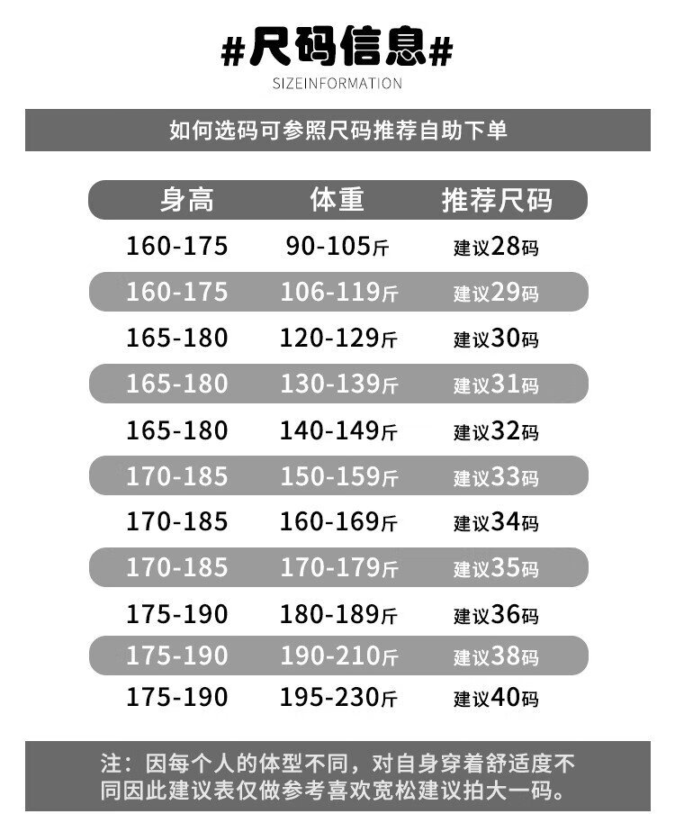 USA(inch) 28-30 30-32 32-34 34-38 38-42