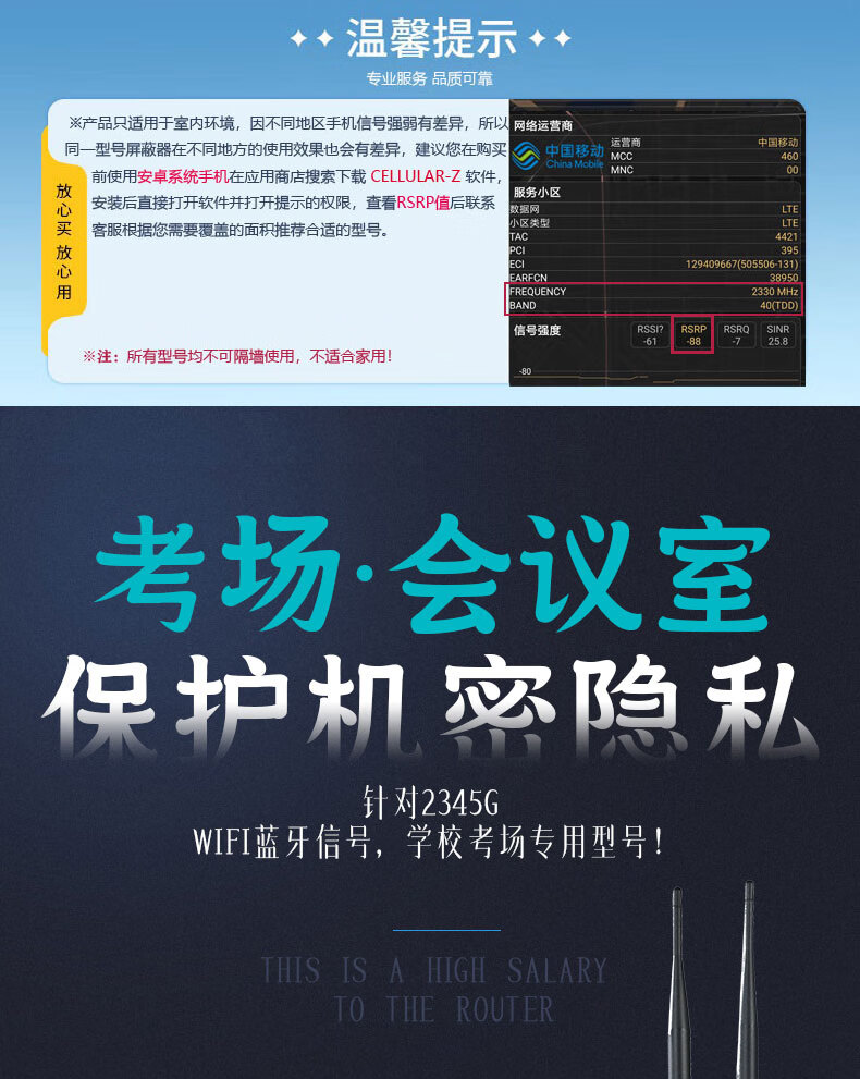 Caixizhi mobile phone 2345G signal closed screen instrument school examination room security inspection school barrier device mobile phone network shielding interference instrument YK105