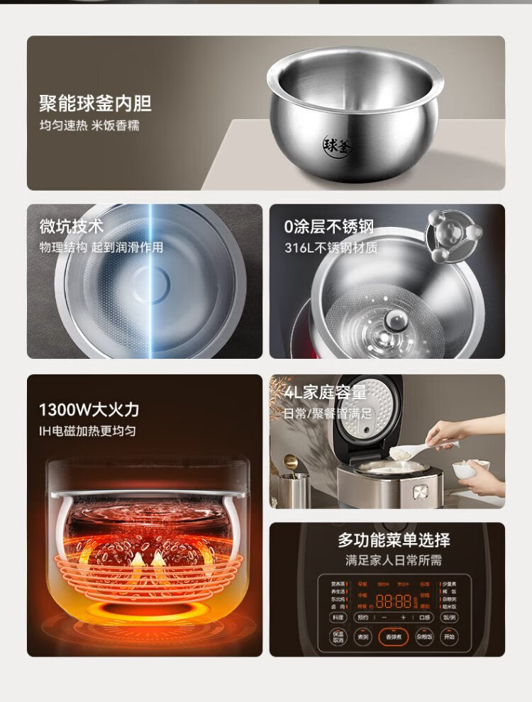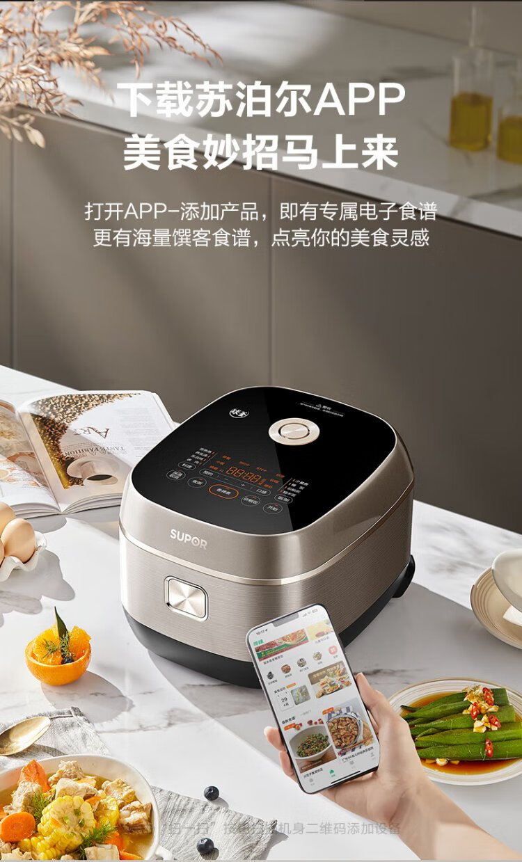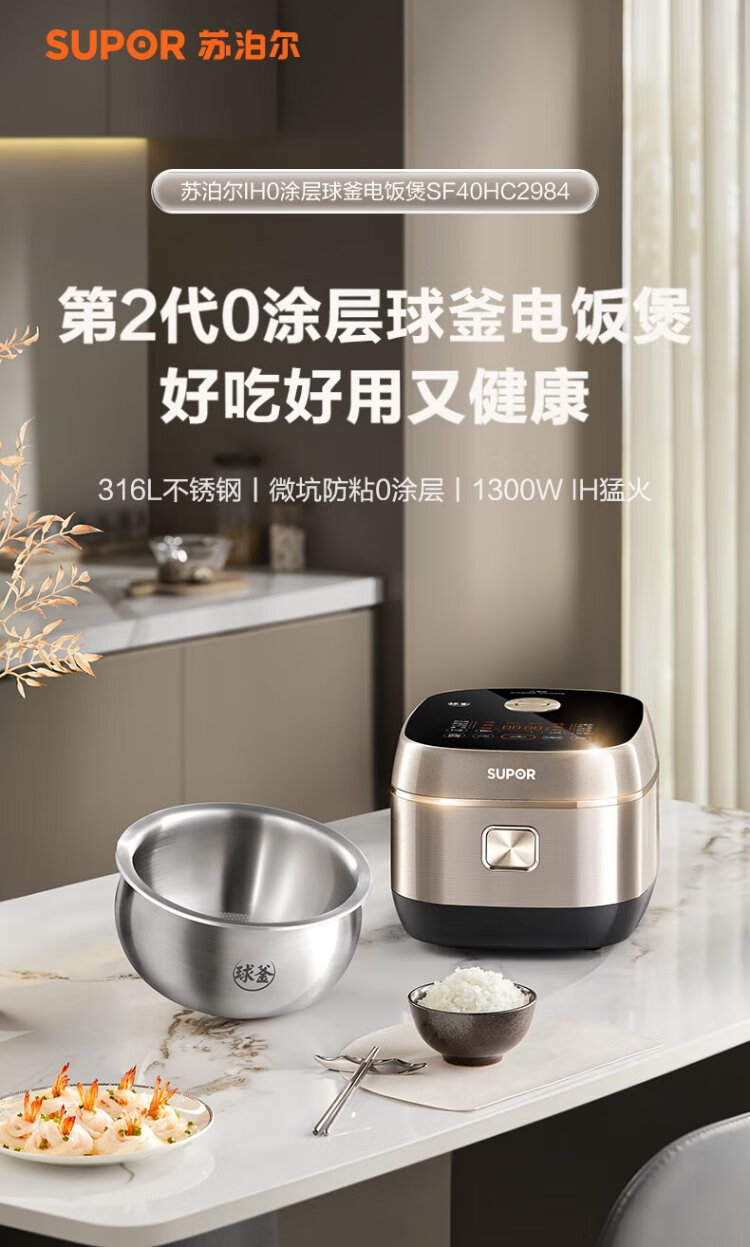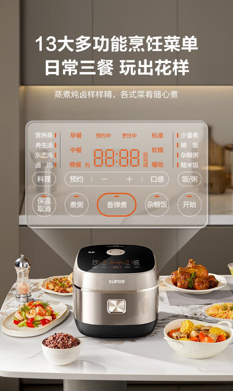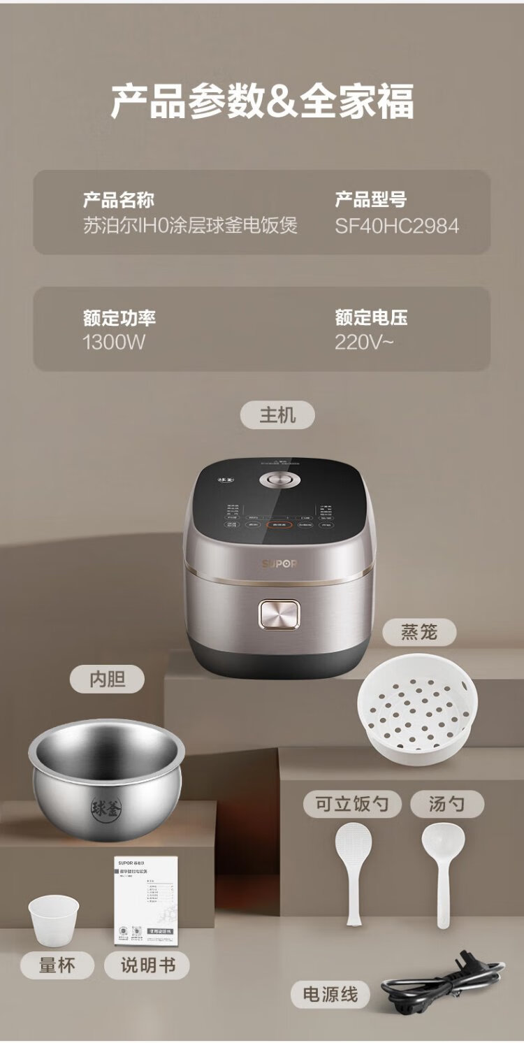 SUPOR rice cooker 0-coated ball kettle IH heating large capacity 4 liters 3-4 people household stainless steel steaming stew multi-function smart rice cooker national subsidy SF40HC2984