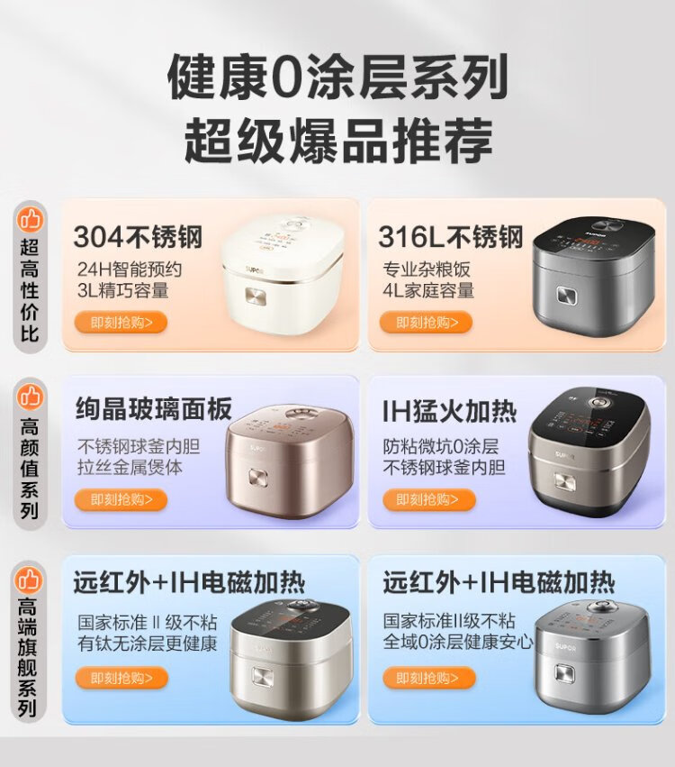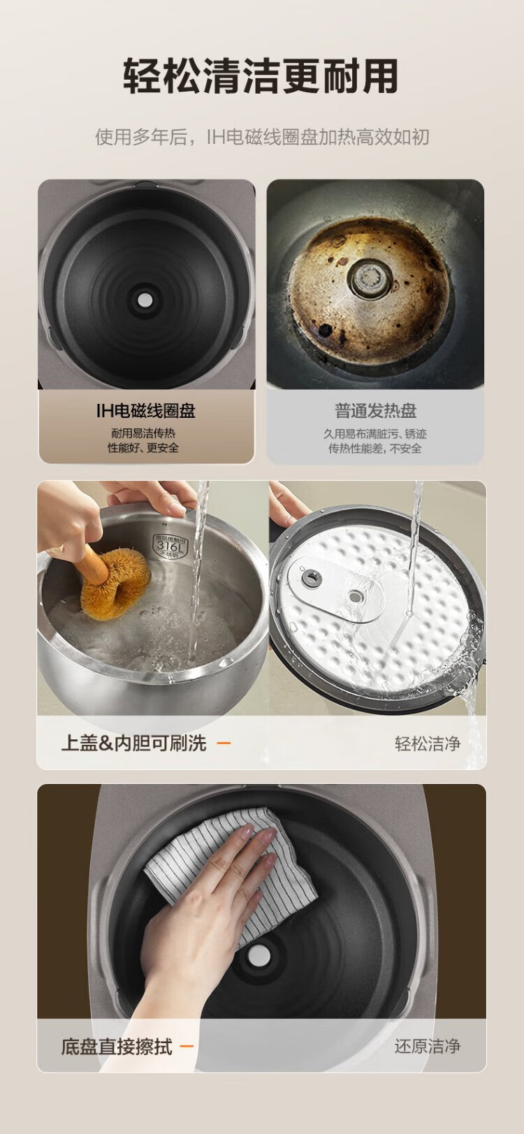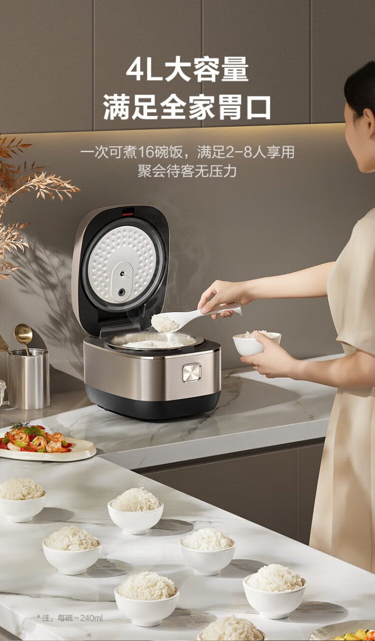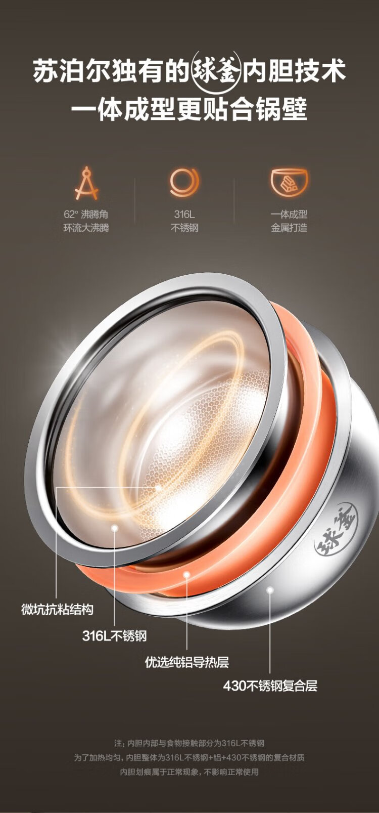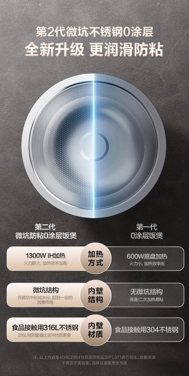 SUPOR rice cooker 0-coated ball kettle IH heating large capacity 4 liters 3-4 people household stainless steel steaming stew multi-function smart rice cooker national subsidy SF40HC2984