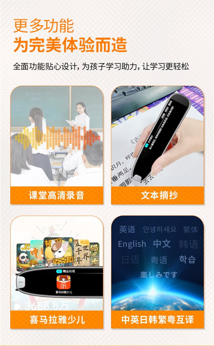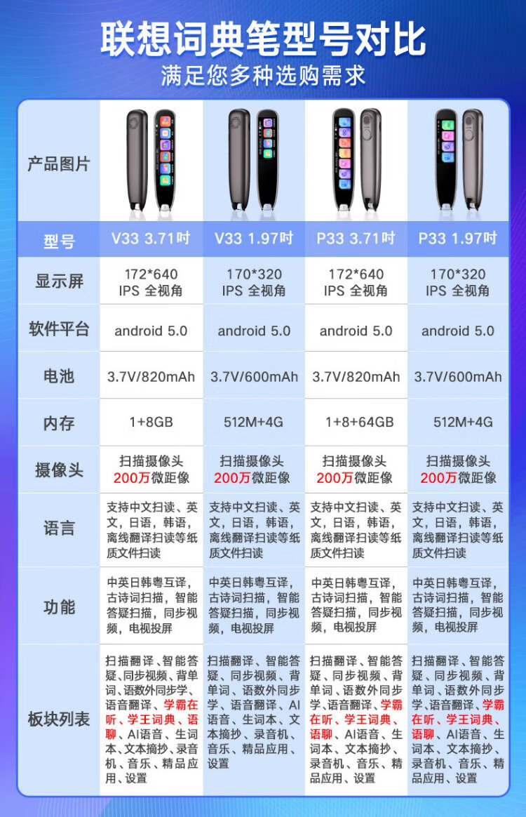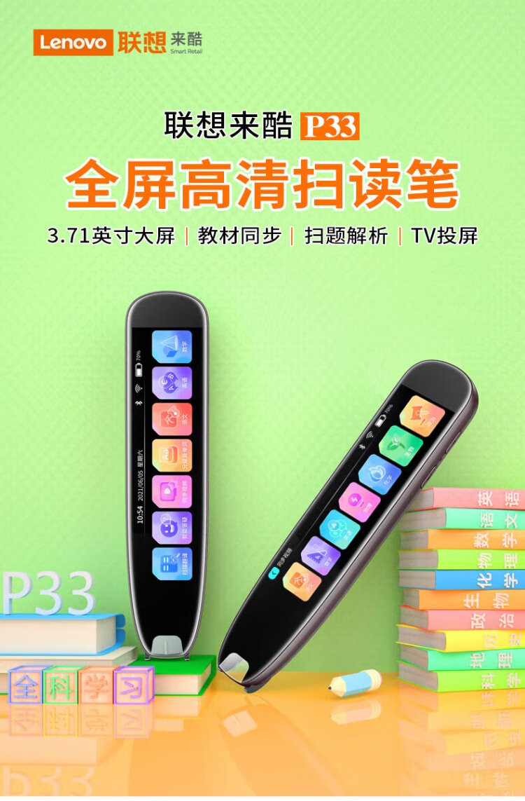 Lenovo Laiku Dictionary Pen P33 128G Reading Pen Scanning Translation Pen Word Machine Scanning and Answering Online and Offline Translation Recorder 3.71 inches