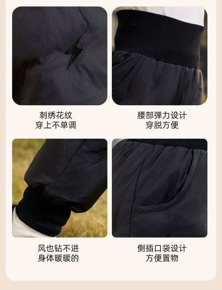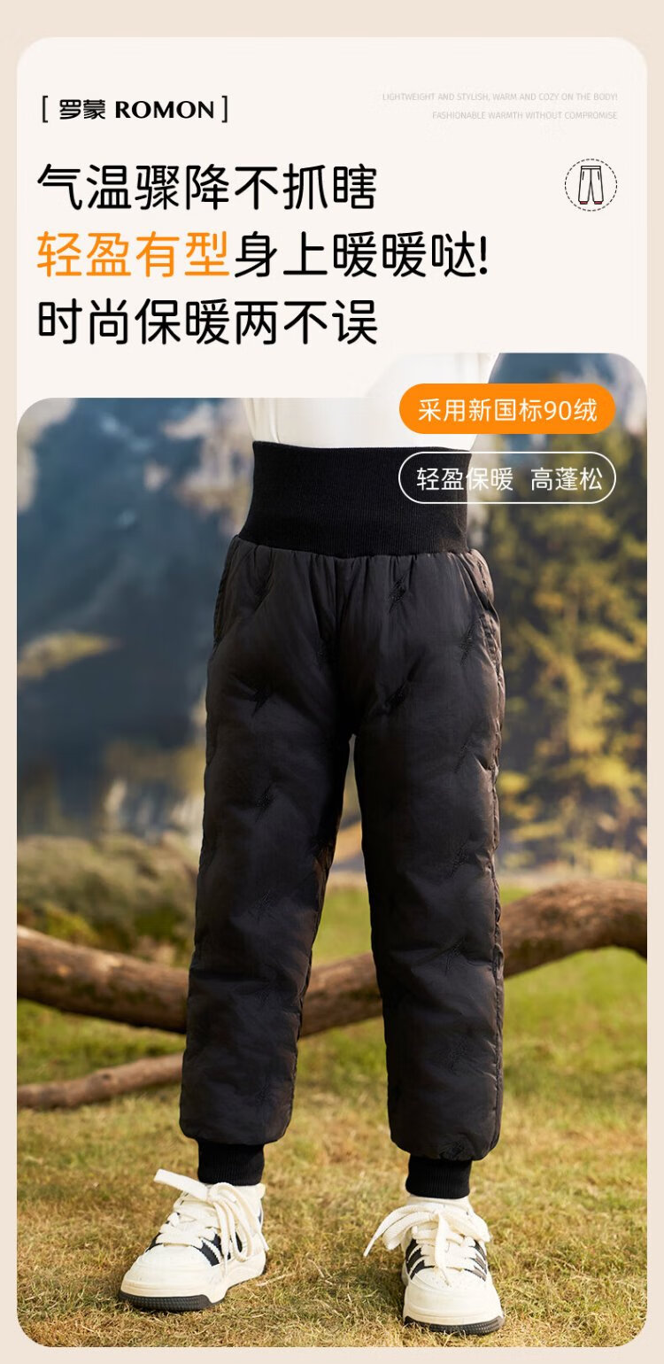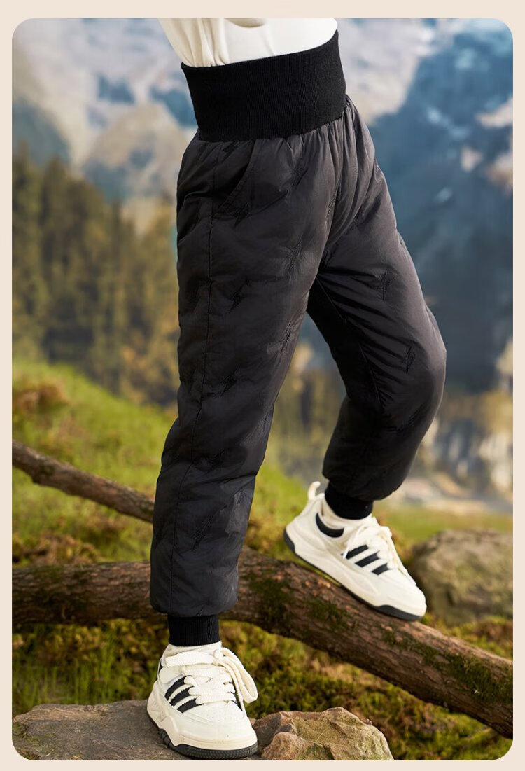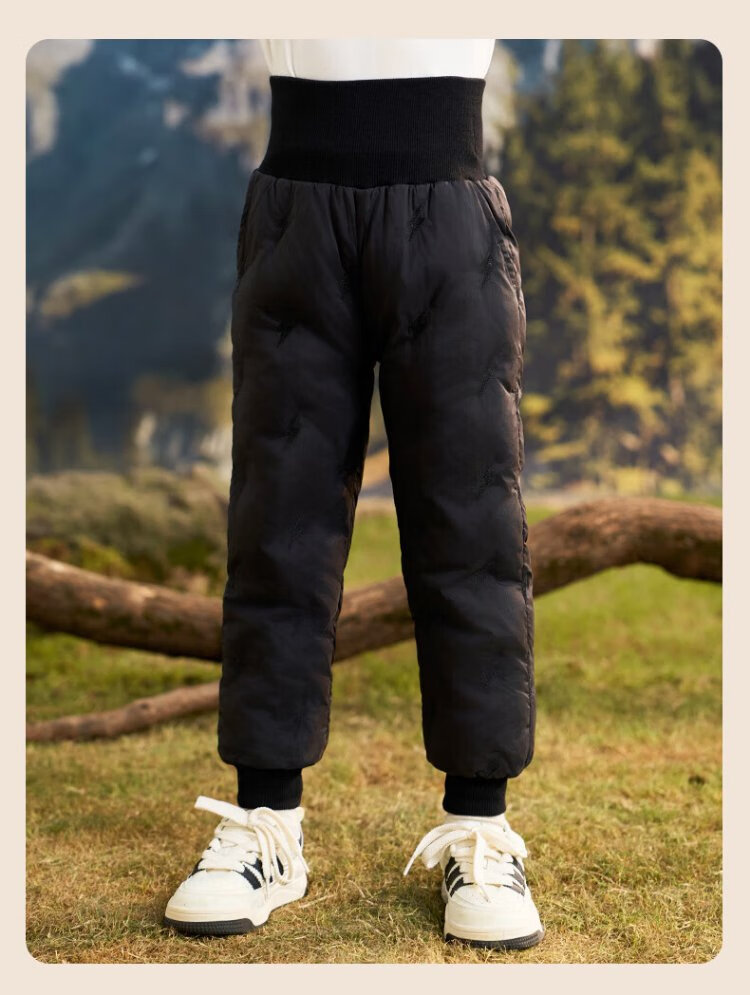Luo Meng children's down pants inner lining for boys and girls autumn and winter warm pants inner wear campus clothing artifact cotton pants black 160