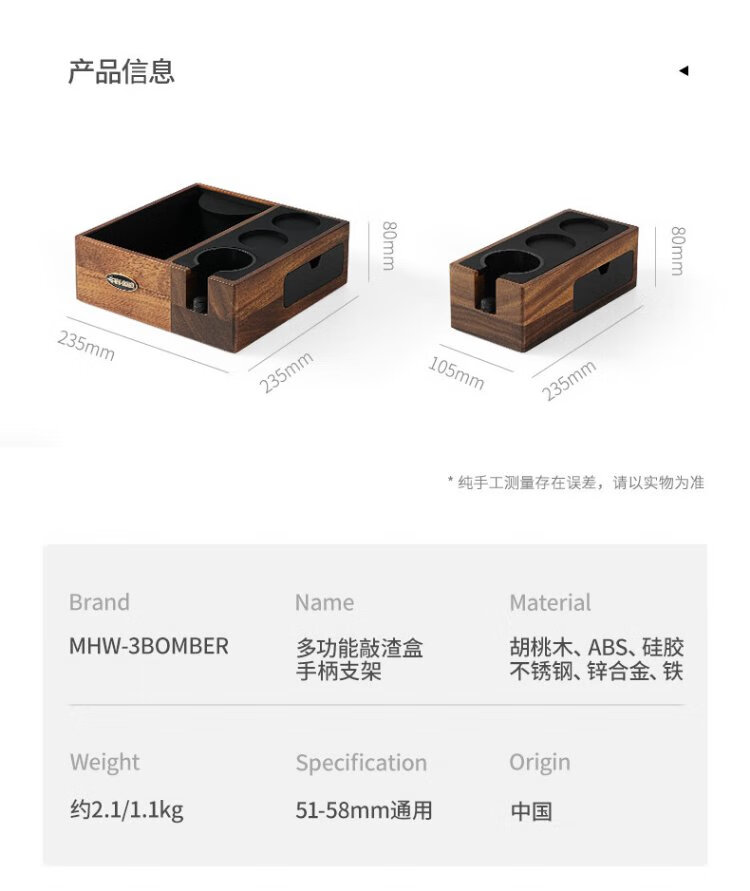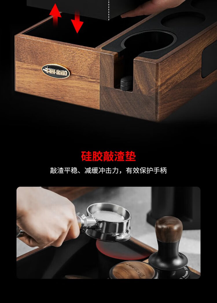 MHW-3BOMBER bomber multifunctional coffee walnut solid wood knocking box can be stored with handle bracket base accessories