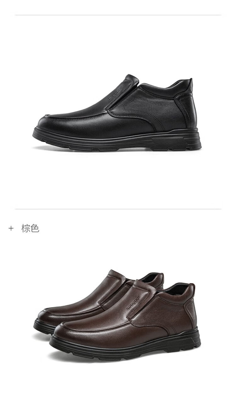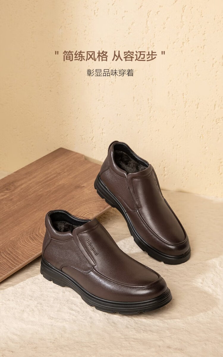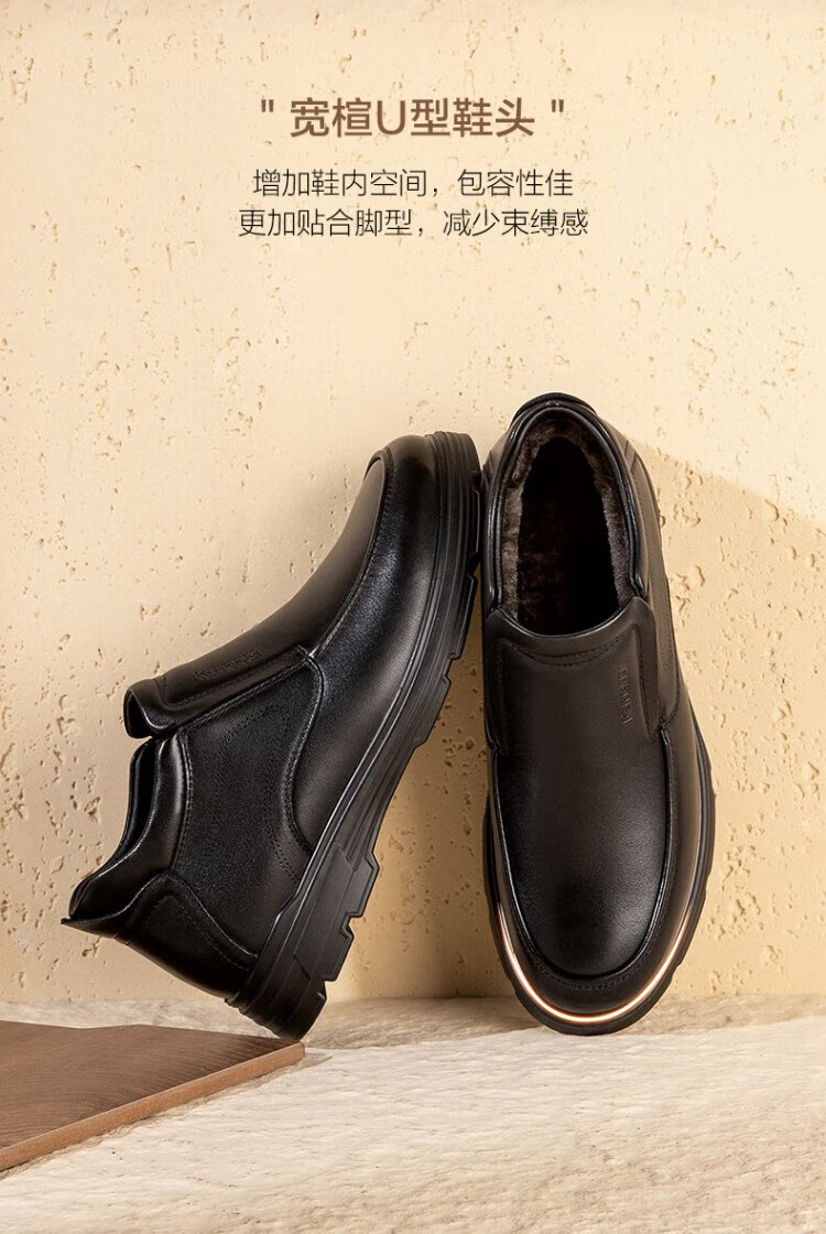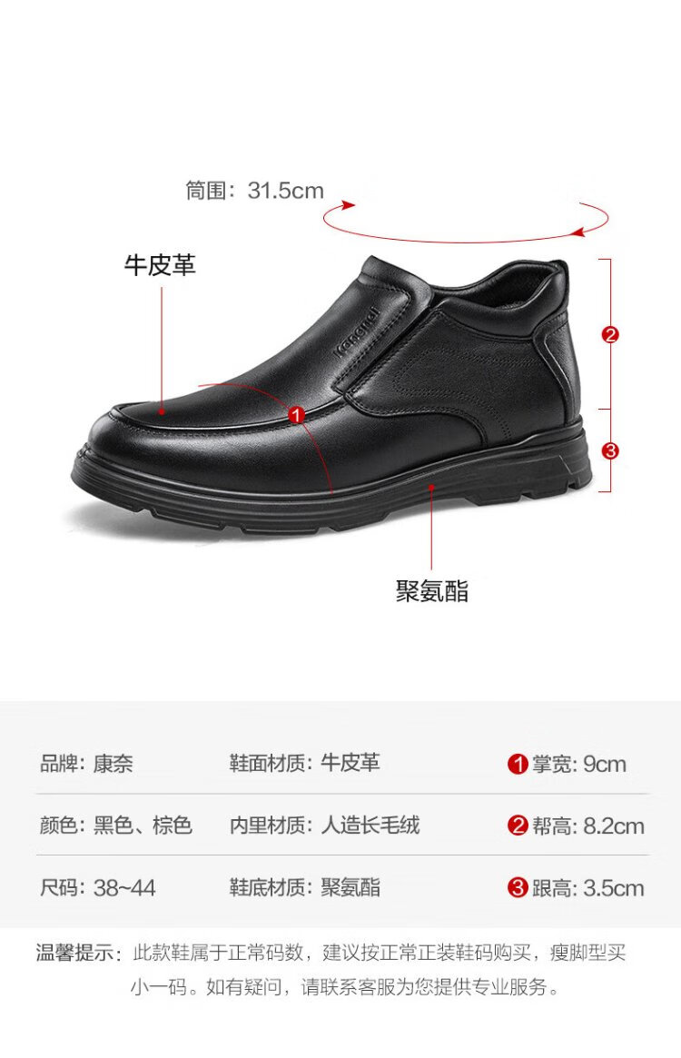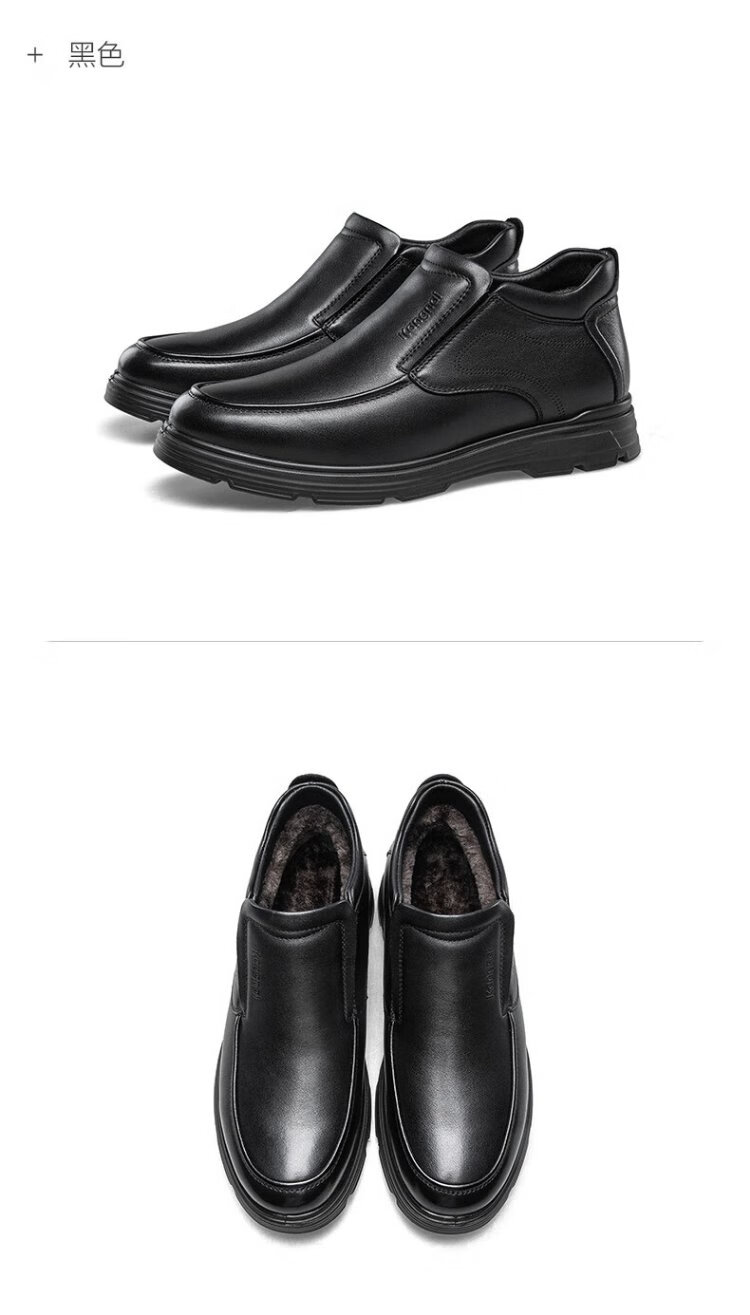 Kangnai men's toe-layer cowhide winter warm plus velvet high-top leather shoes men's business casual shoes black 42