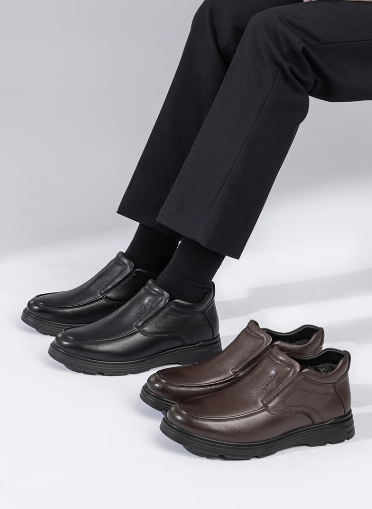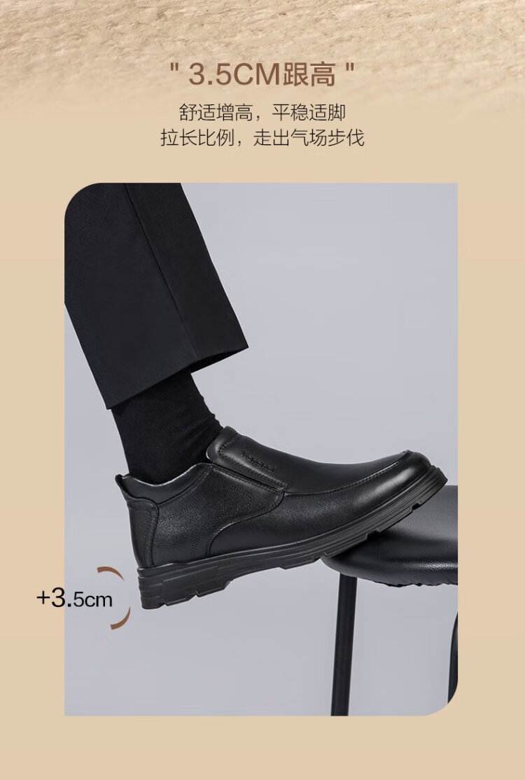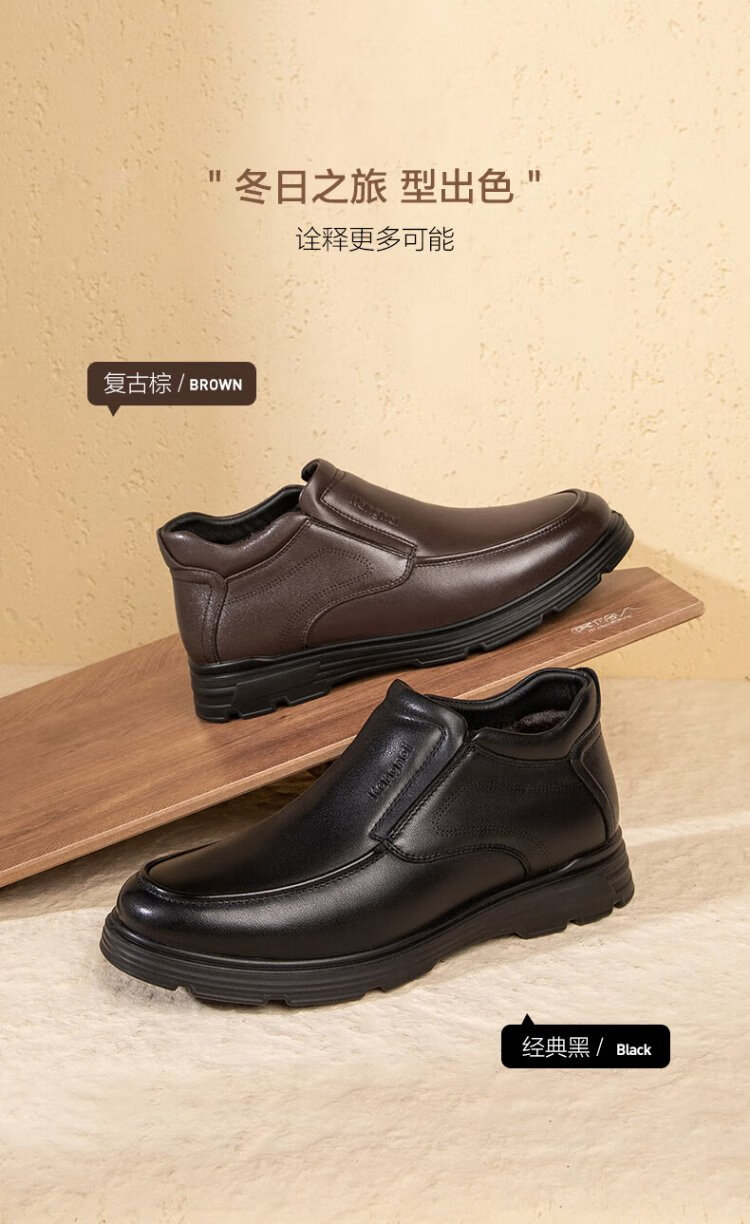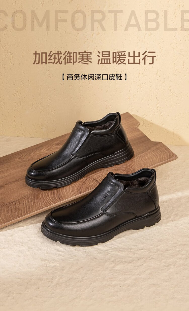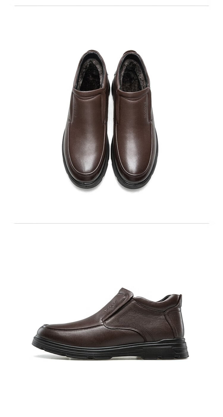 Kangnai men's toe-layer cowhide winter warm plus velvet high-top leather shoes men's business casual shoes black 42
