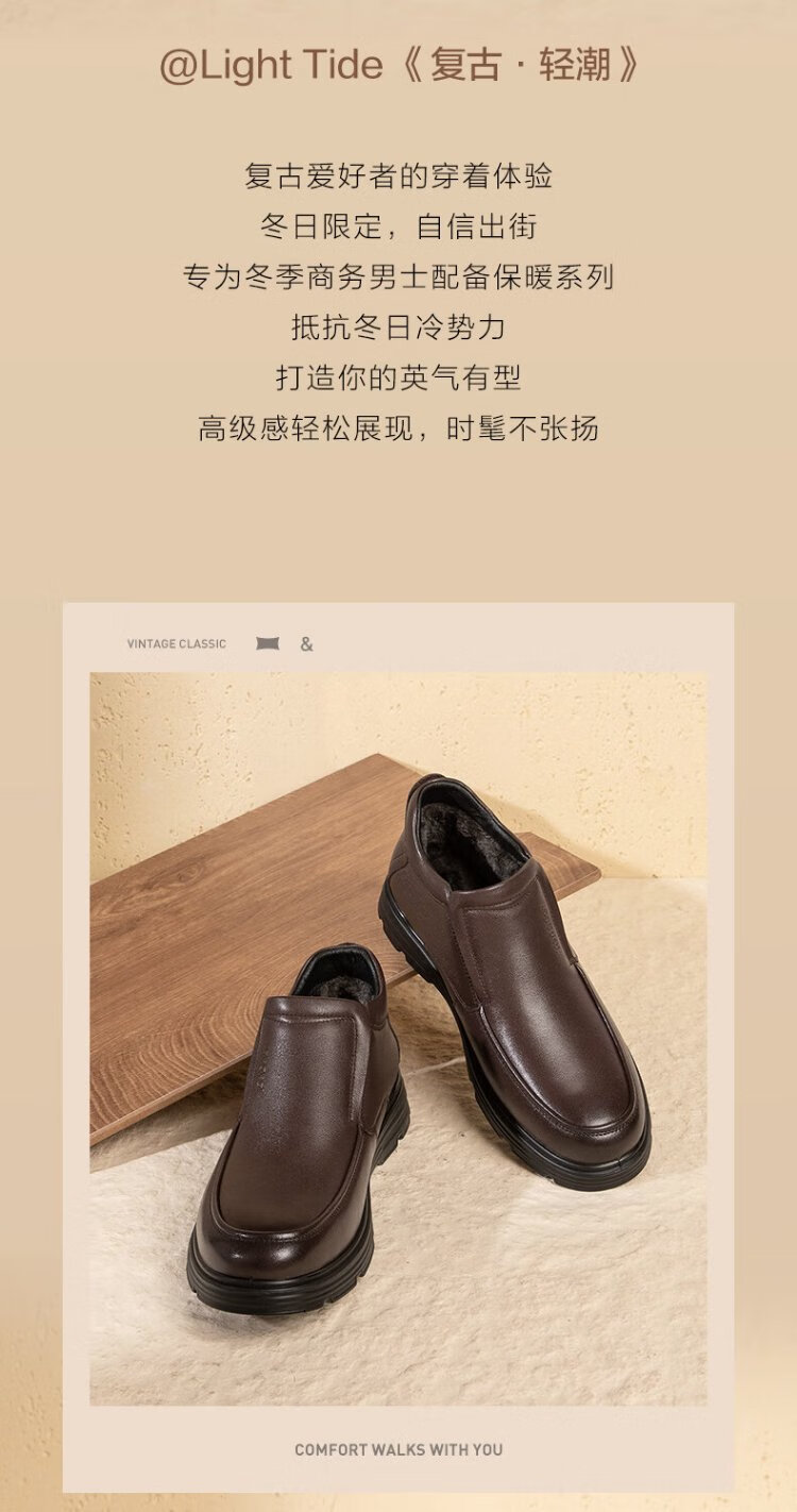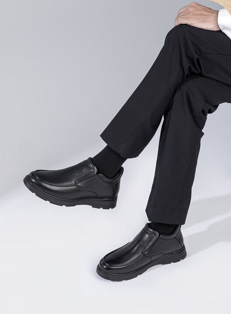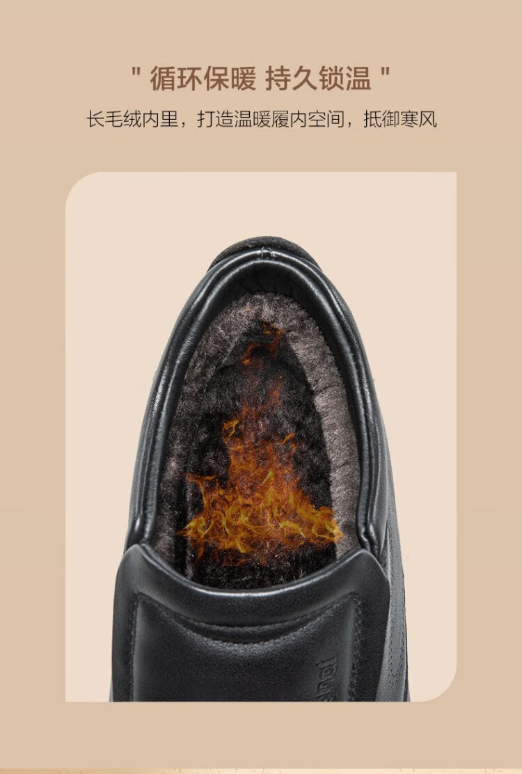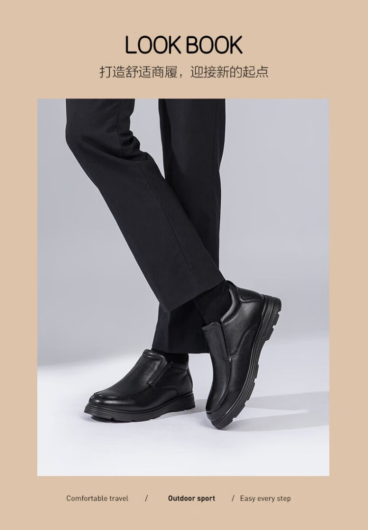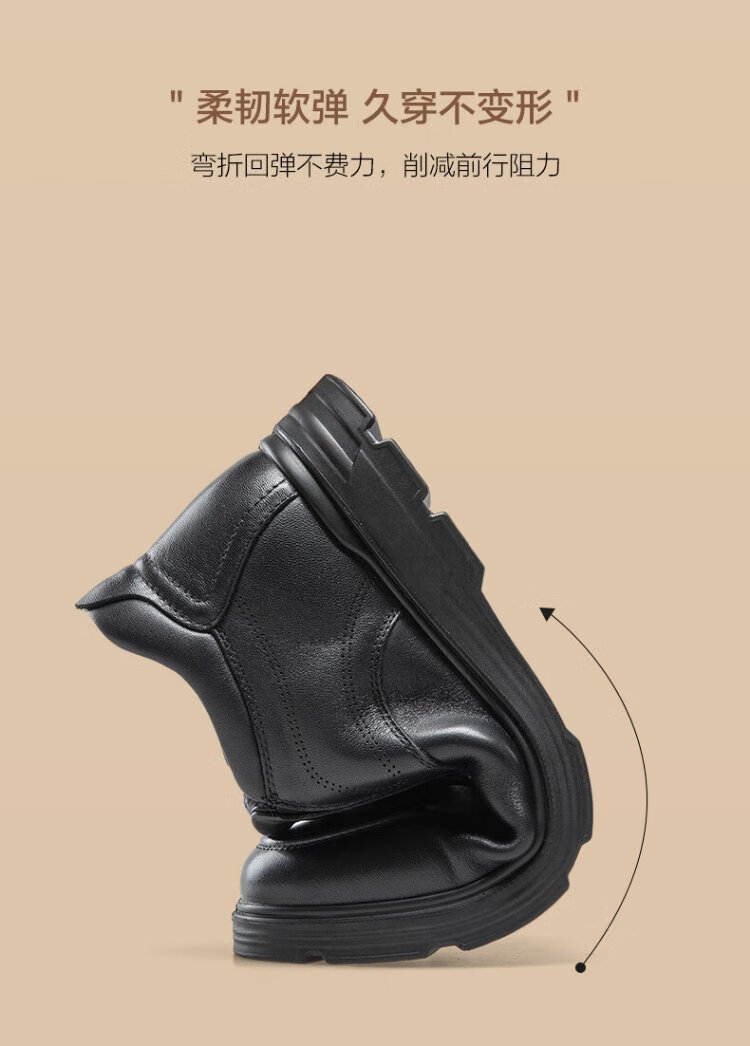 Kangnai men's toe-layer cowhide winter warm plus velvet high-top leather shoes men's business casual shoes black 42