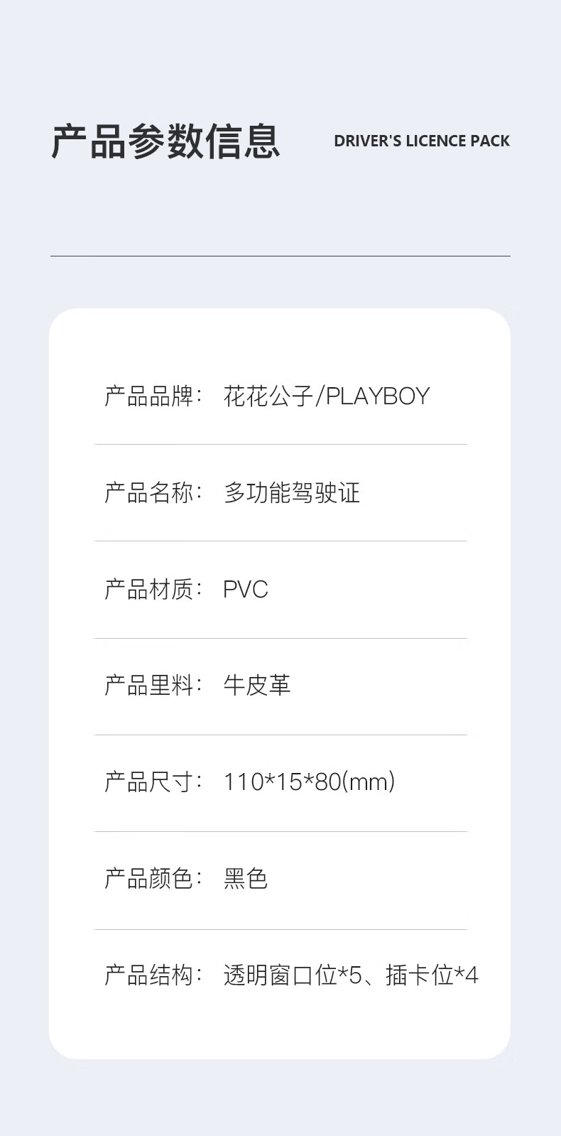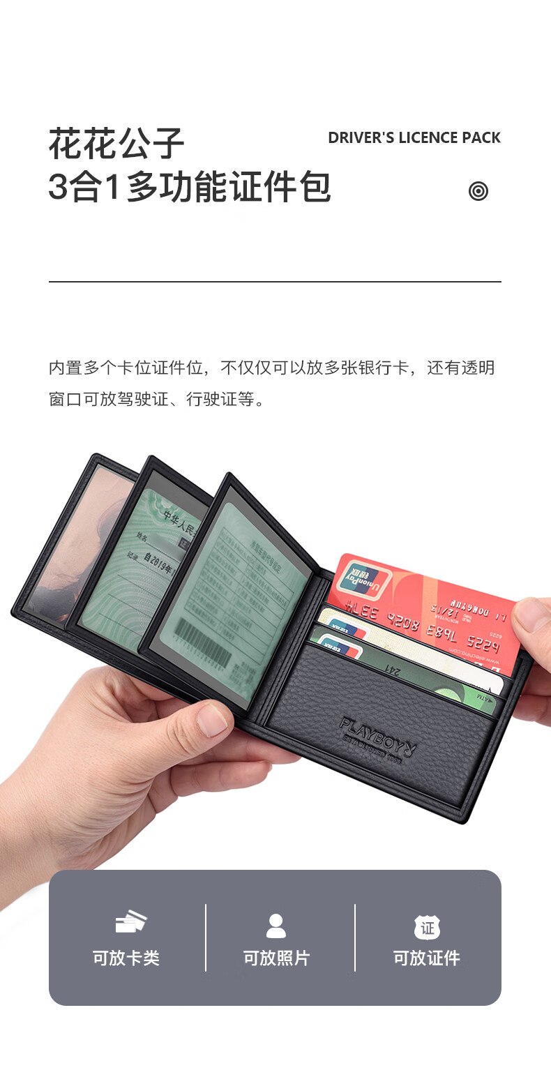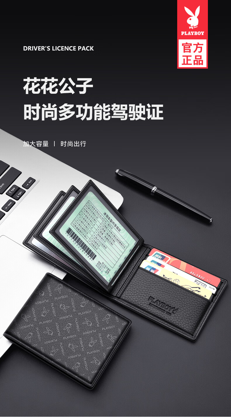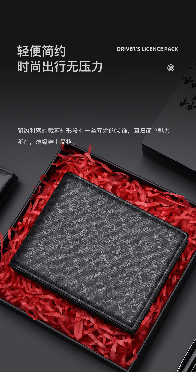 Playboy Driver's License Leather Case Men's Large Capacity Multi-Slot Integrated Motor Vehicle License Protective Cover Card Bag Birthday Gift