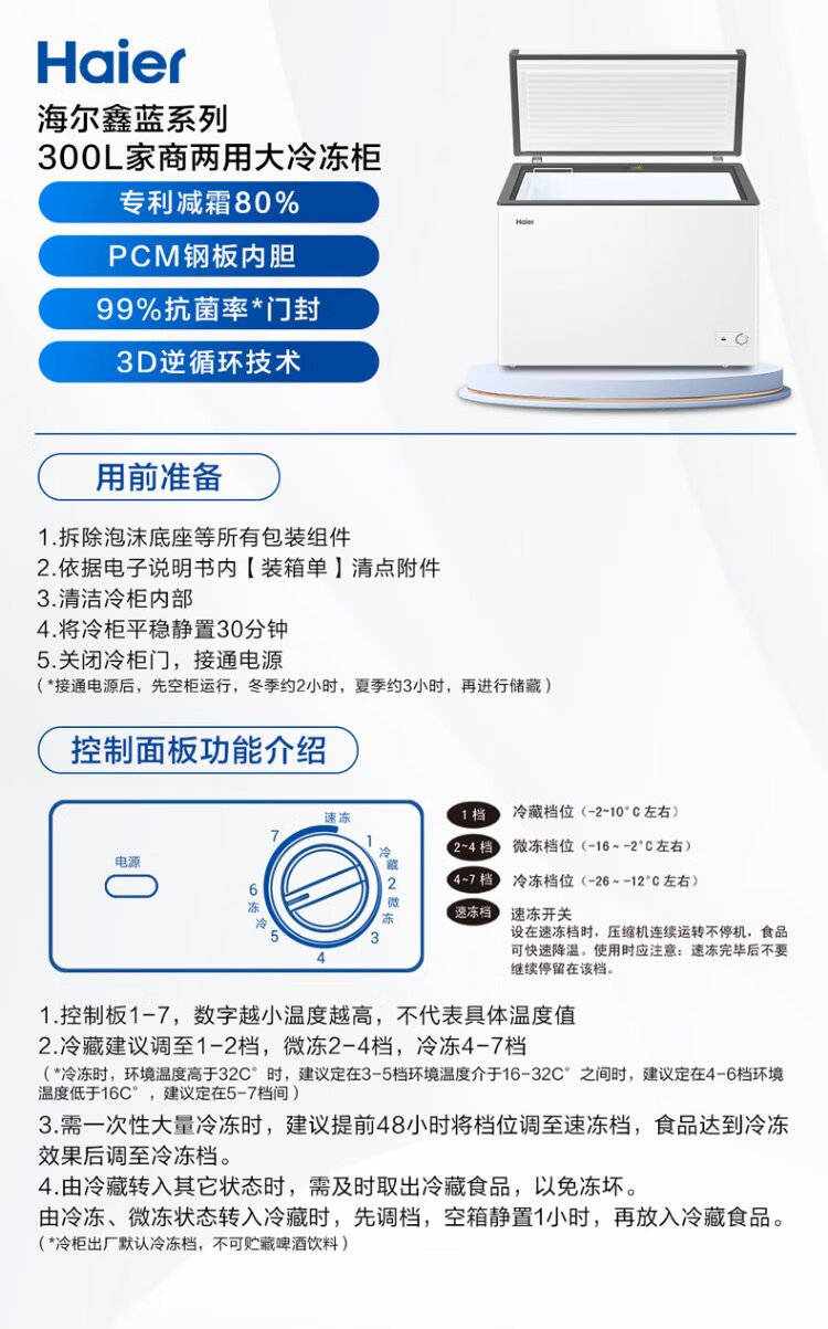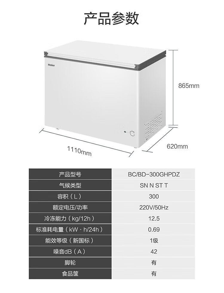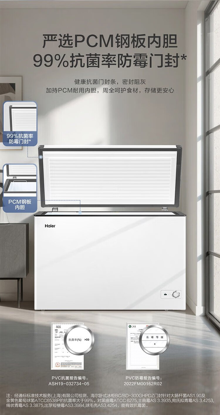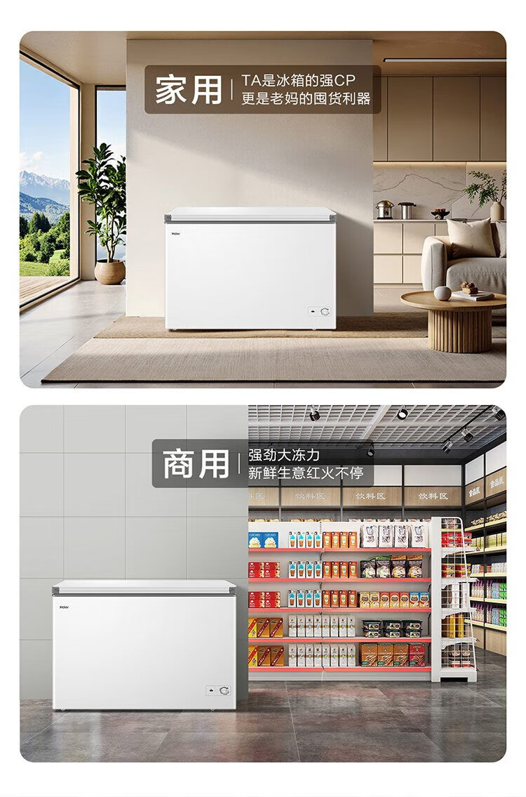 Haier 300 liter low frost large capacity small freezer household commercial refrigeration freezer dual-use freezer OCC small refrigerator freezer BC/BD-300GHPDZ national subsidy