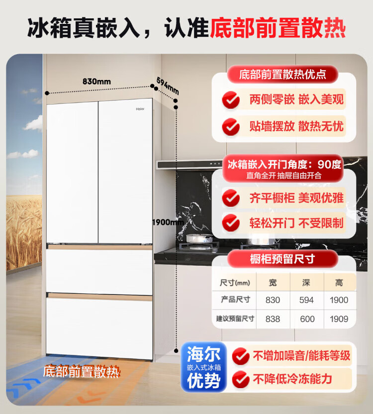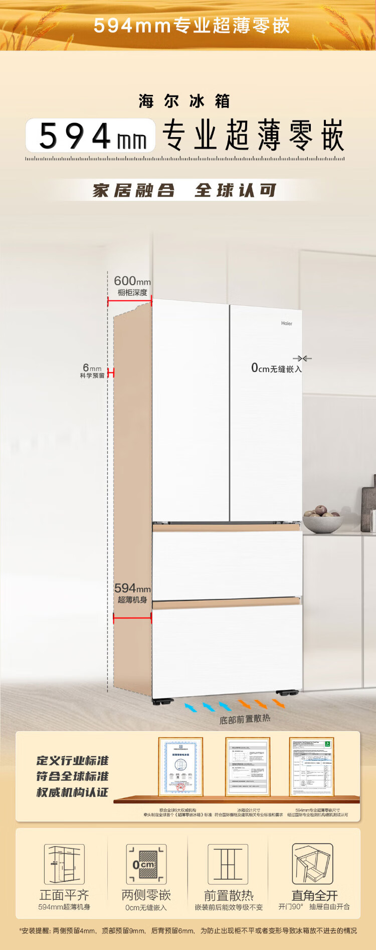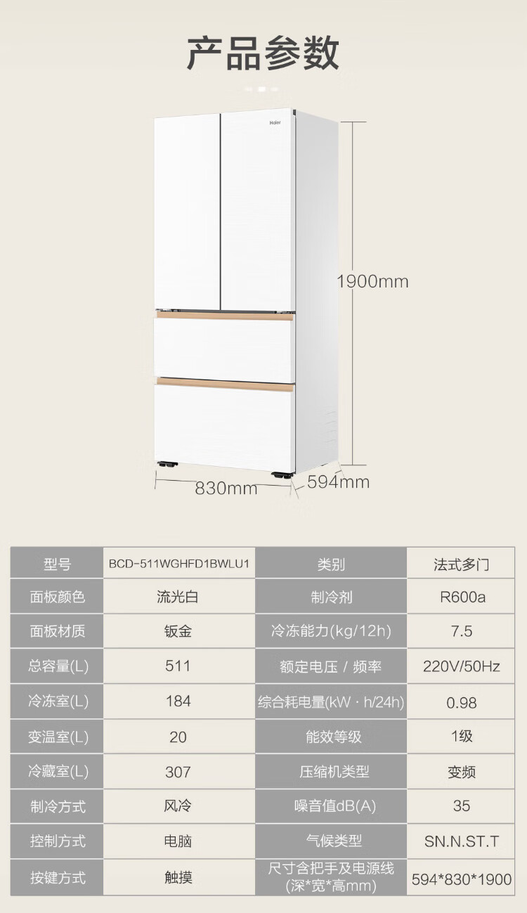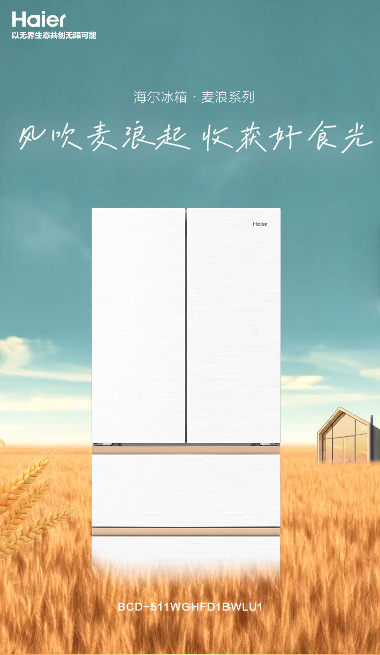 Haier Mailang series 511 liter full-space fresh-keeping ultra-thin zero-embedded French multi-door household refrigerator BCD-511WGHFD1BWLU1 20% national subsidy