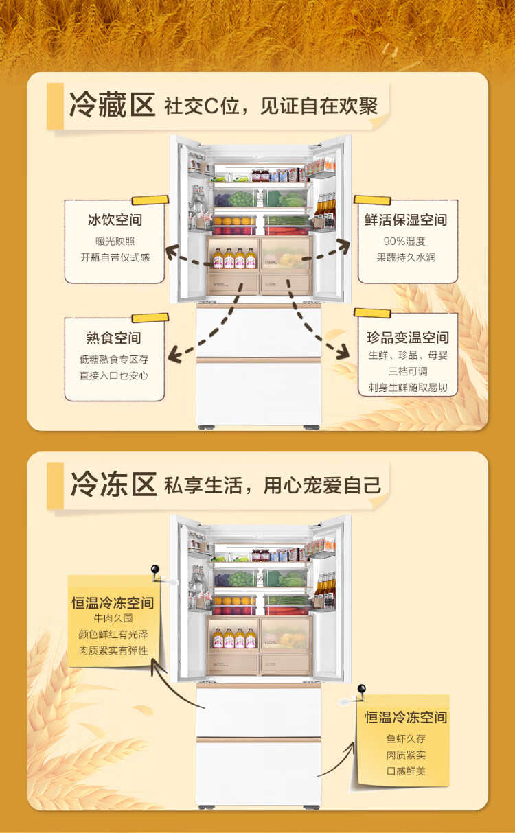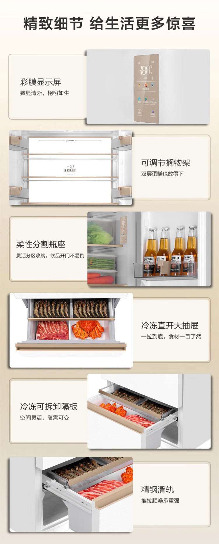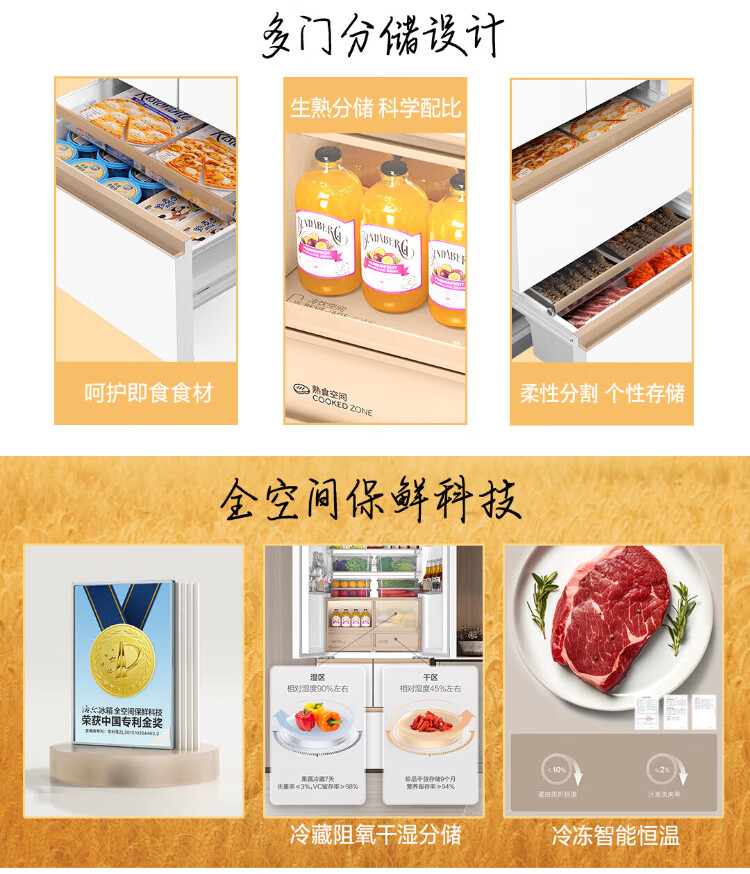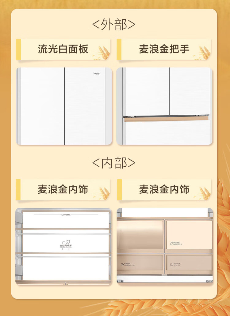 Haier Mailang series 511 liter full-space fresh-keeping ultra-thin zero-embedded French multi-door household refrigerator BCD-511WGHFD1BWLU1 20% national subsidy