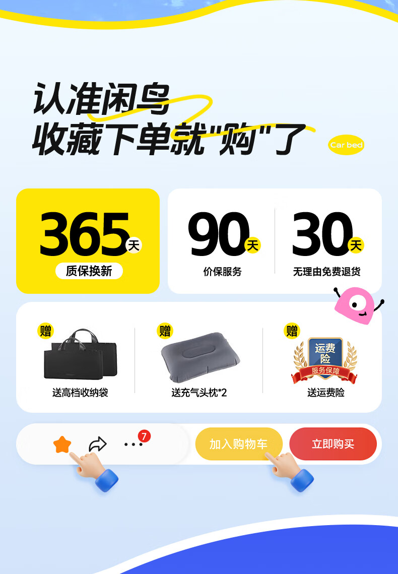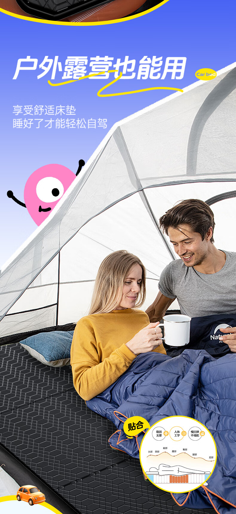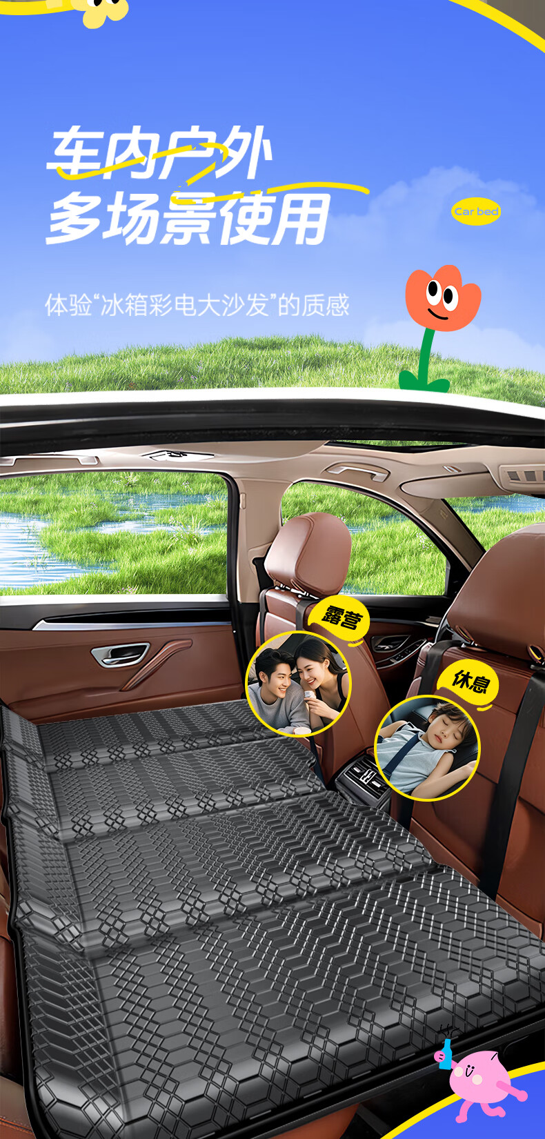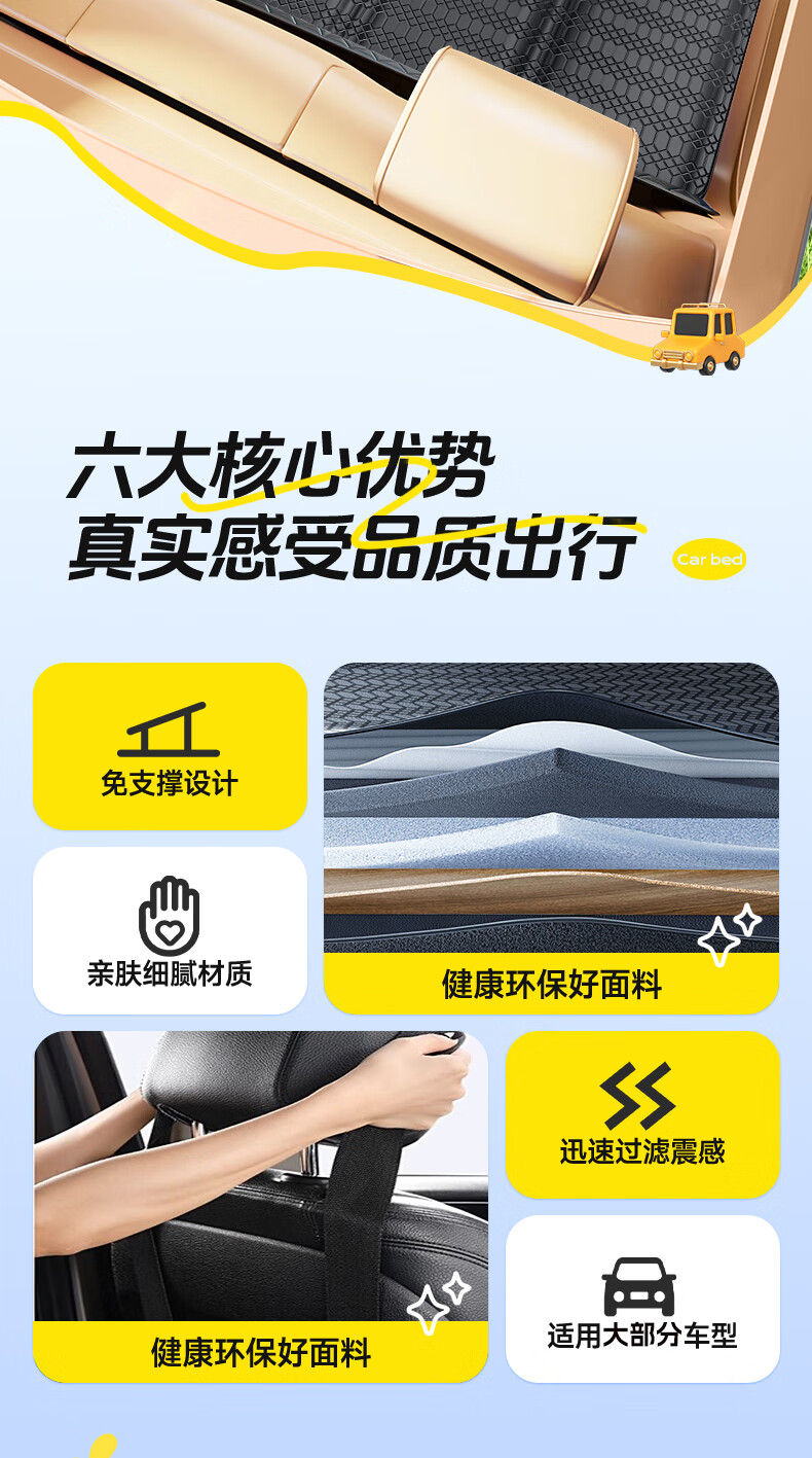 XIANNIAO car folding mattress, car rear sleeping pad, no need to install in the car, SUV self-driving back seat sleeping artifact