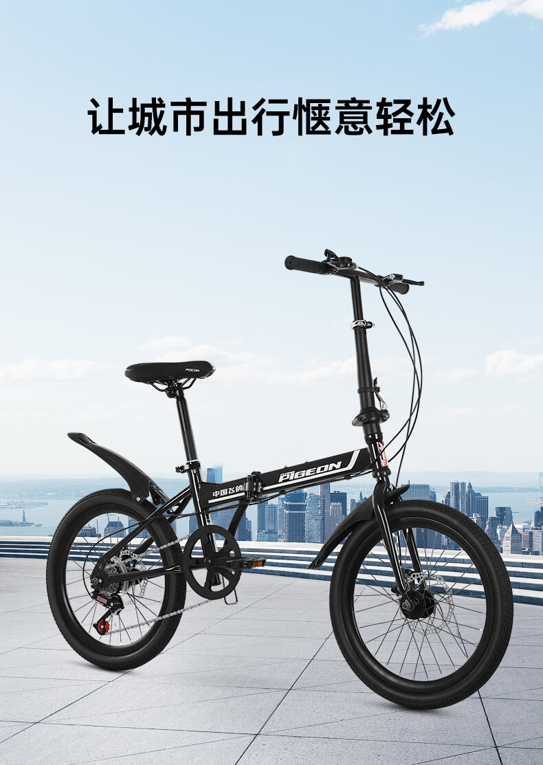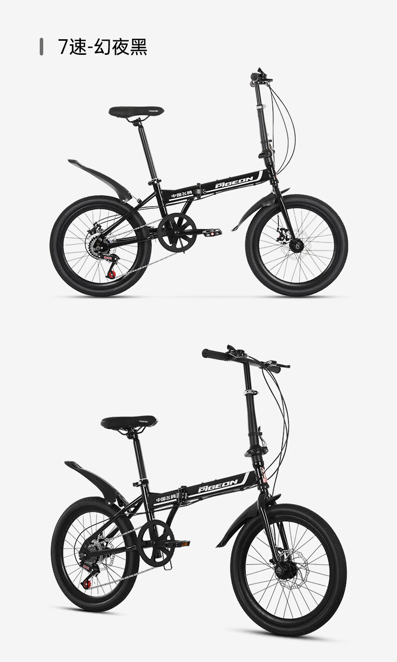 Flying Pigeon folding bicycle 20-inch single-speed men's and women's adult students, teenagers and children's urban leisure vehicle fantasy night black