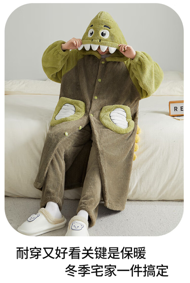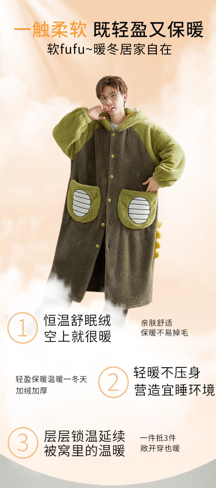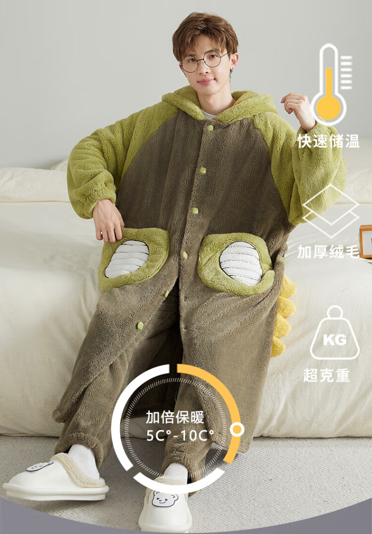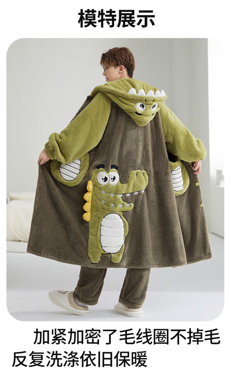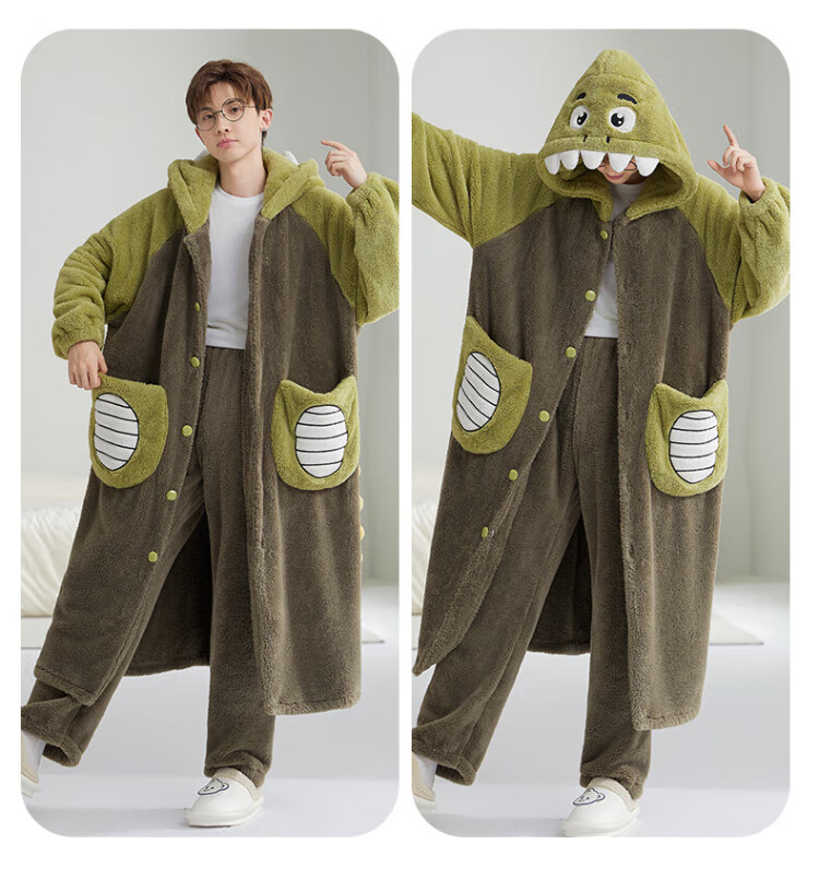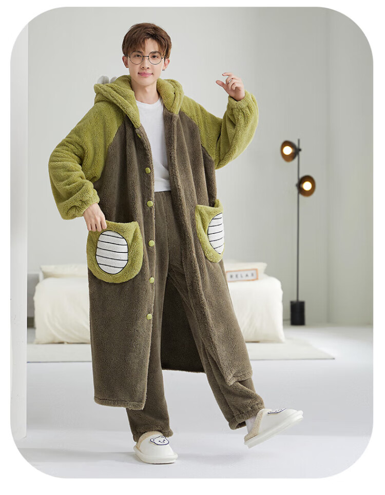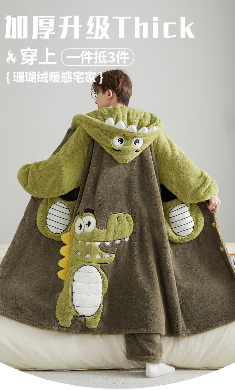 Yu Zhaolin Men's Pajamas Autumn and Winter Coral Velvet Plus Velvet Thickened Winter Youth Pajamas Men's Flannel Bathrobe Home Clothing