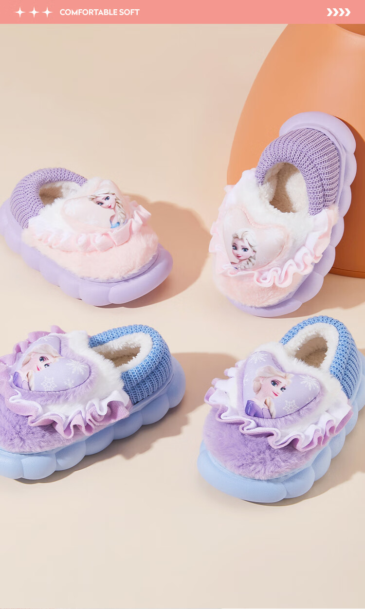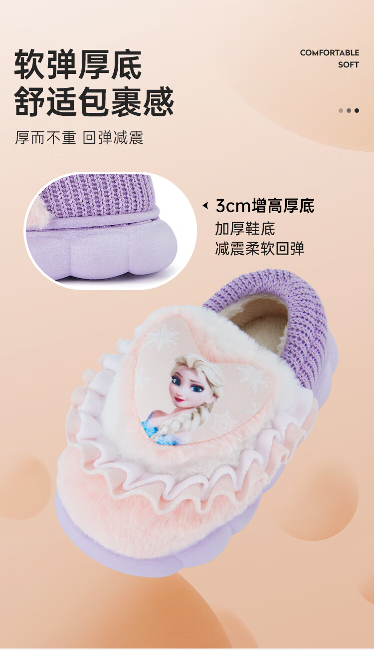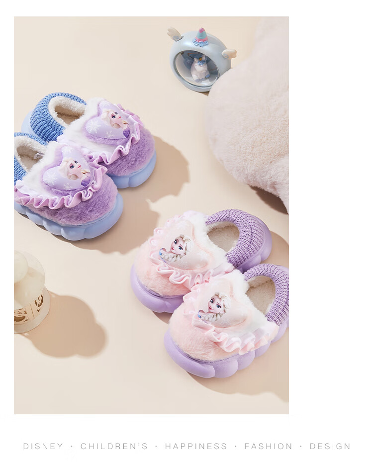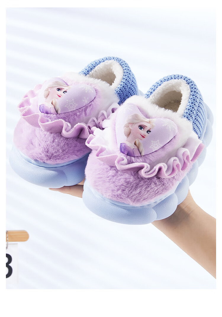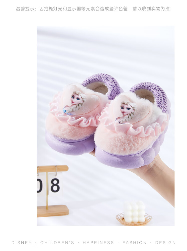 Disney Children's Cotton Slippers Bag with Girls' Wool Slippers Autumn and Winter Princess Elsa Indoor Slippers Home Shoes Orange Pink 26-27