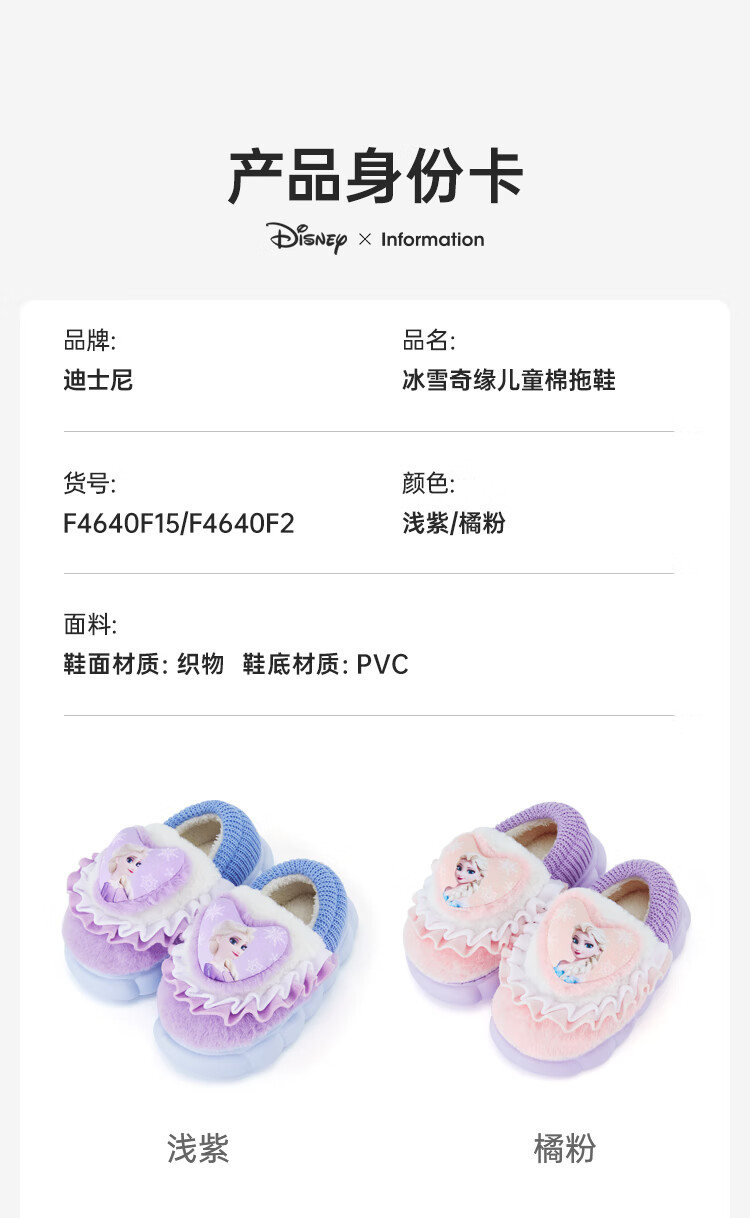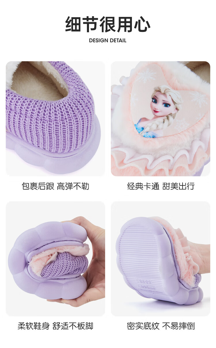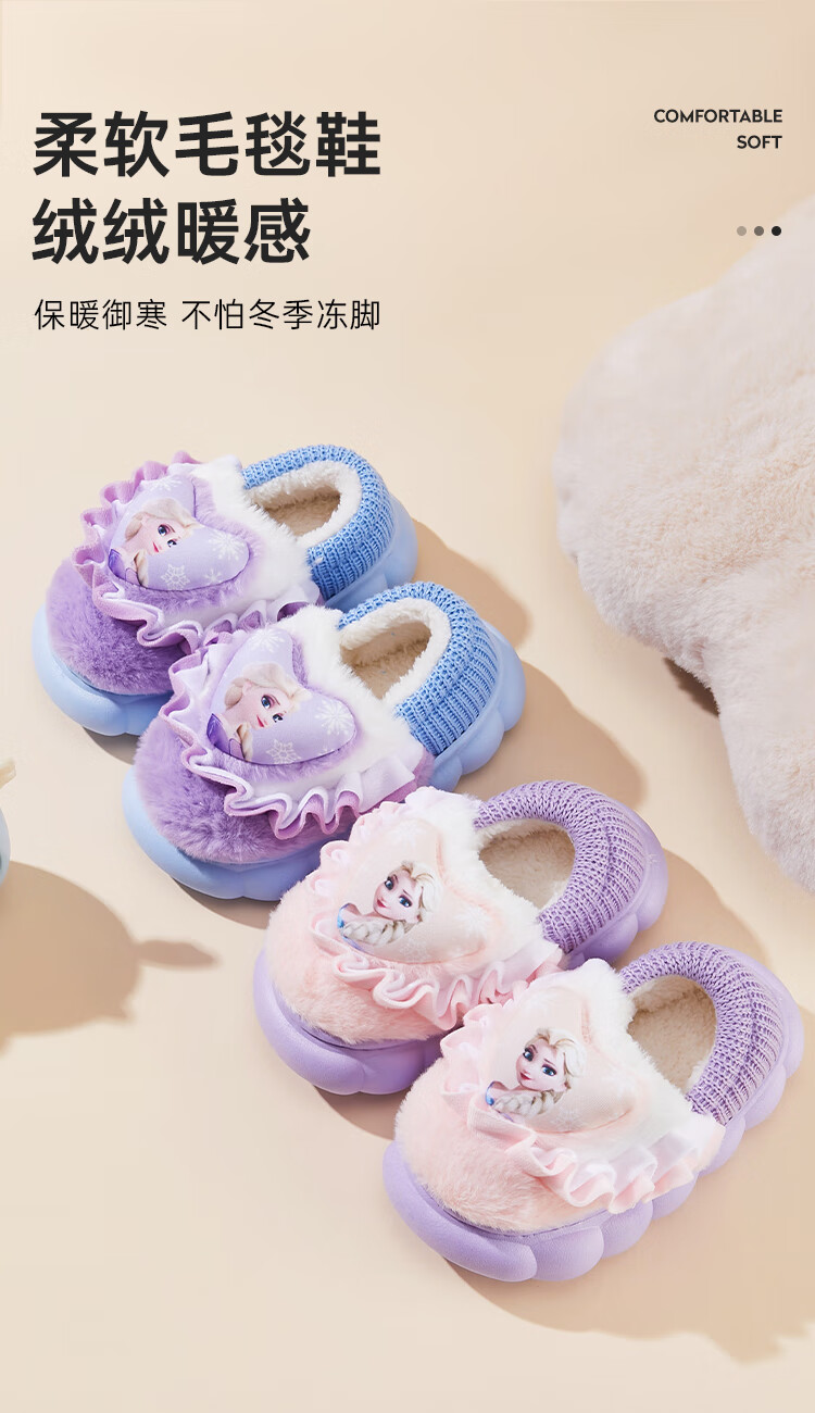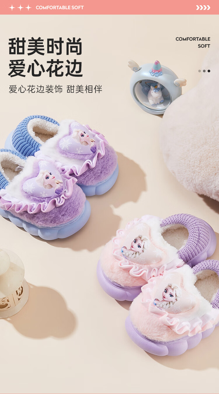 Disney Children's Cotton Slippers Bag with Girls' Wool Slippers Autumn and Winter Princess Elsa Indoor Slippers Home Shoes Orange Pink 26-27