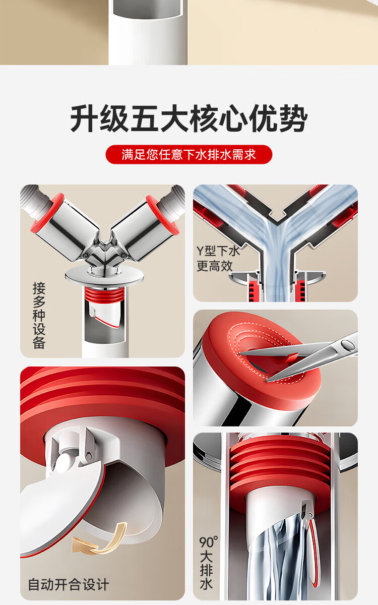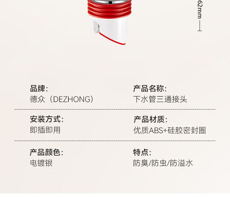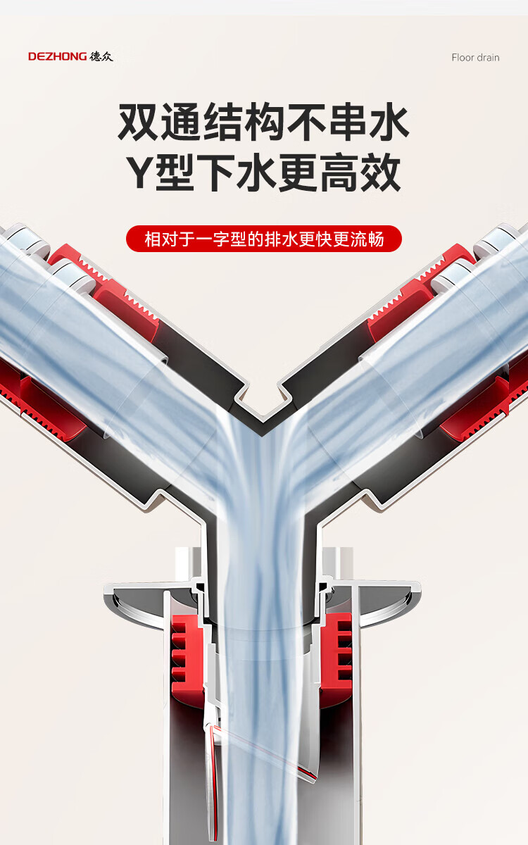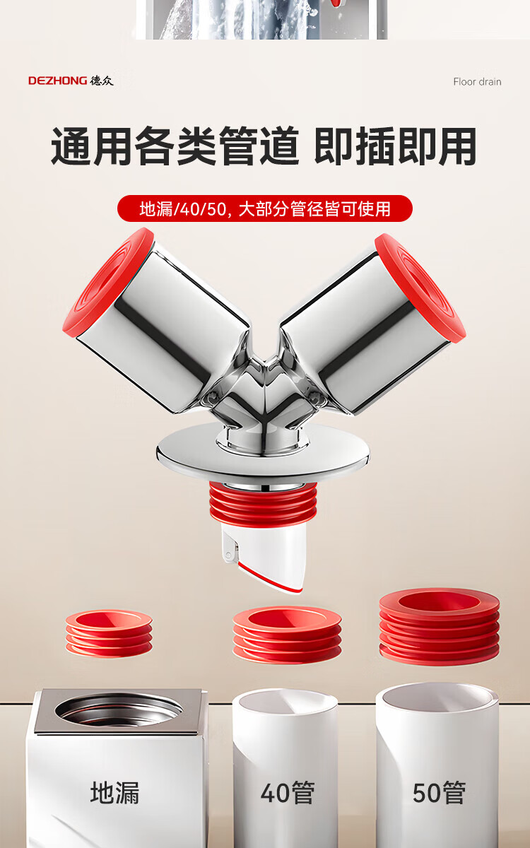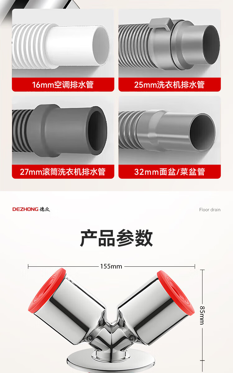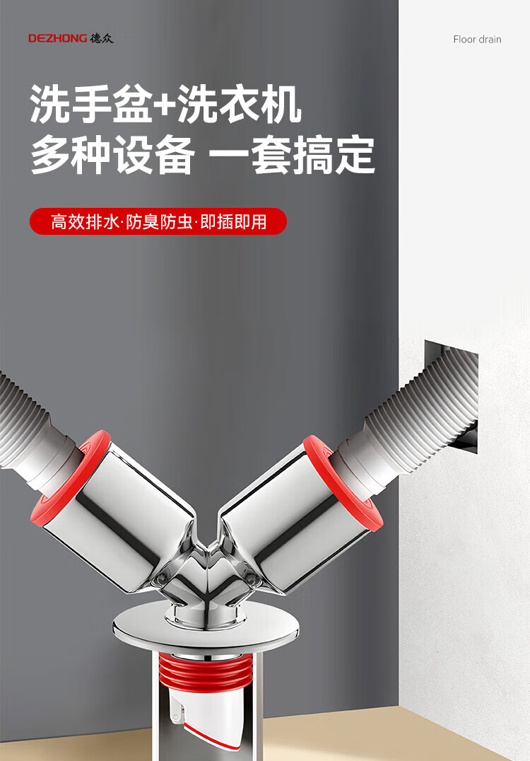 Dezhong washing machine sewer three-way floor drain joint two-in-one wash basin sewer pipe drainage three-way pipe anti-overflow artifact p201