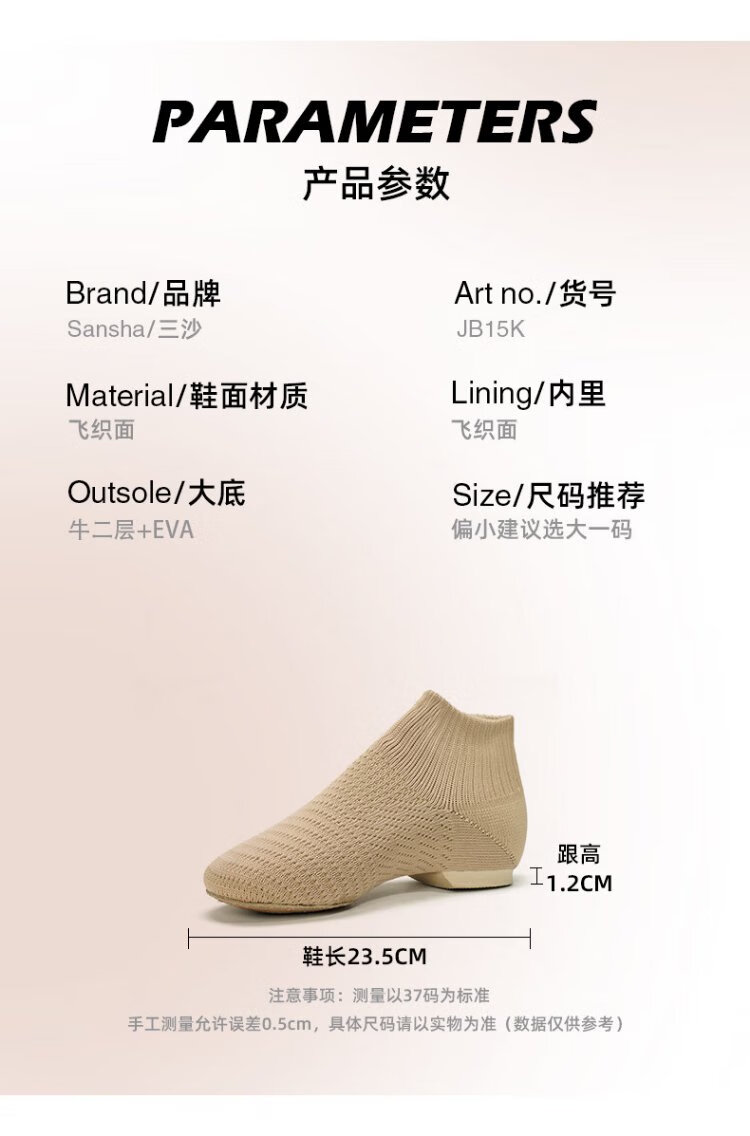 Sansha Jazz Dance Shoes Flying Textile Modern Dance Shoes Low Heel Teacher Shoes Yoga Practicing Shoes Black 40