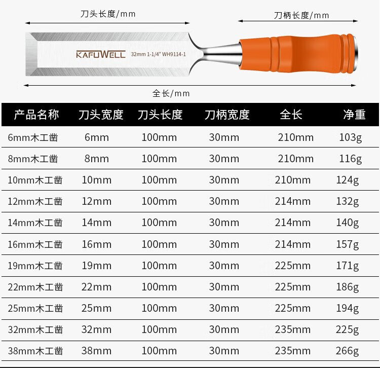 Kraftwell Woodworking Chisel Tool Flat Chisel Engraving Tail Pin Strike 6mm WH9006-1
